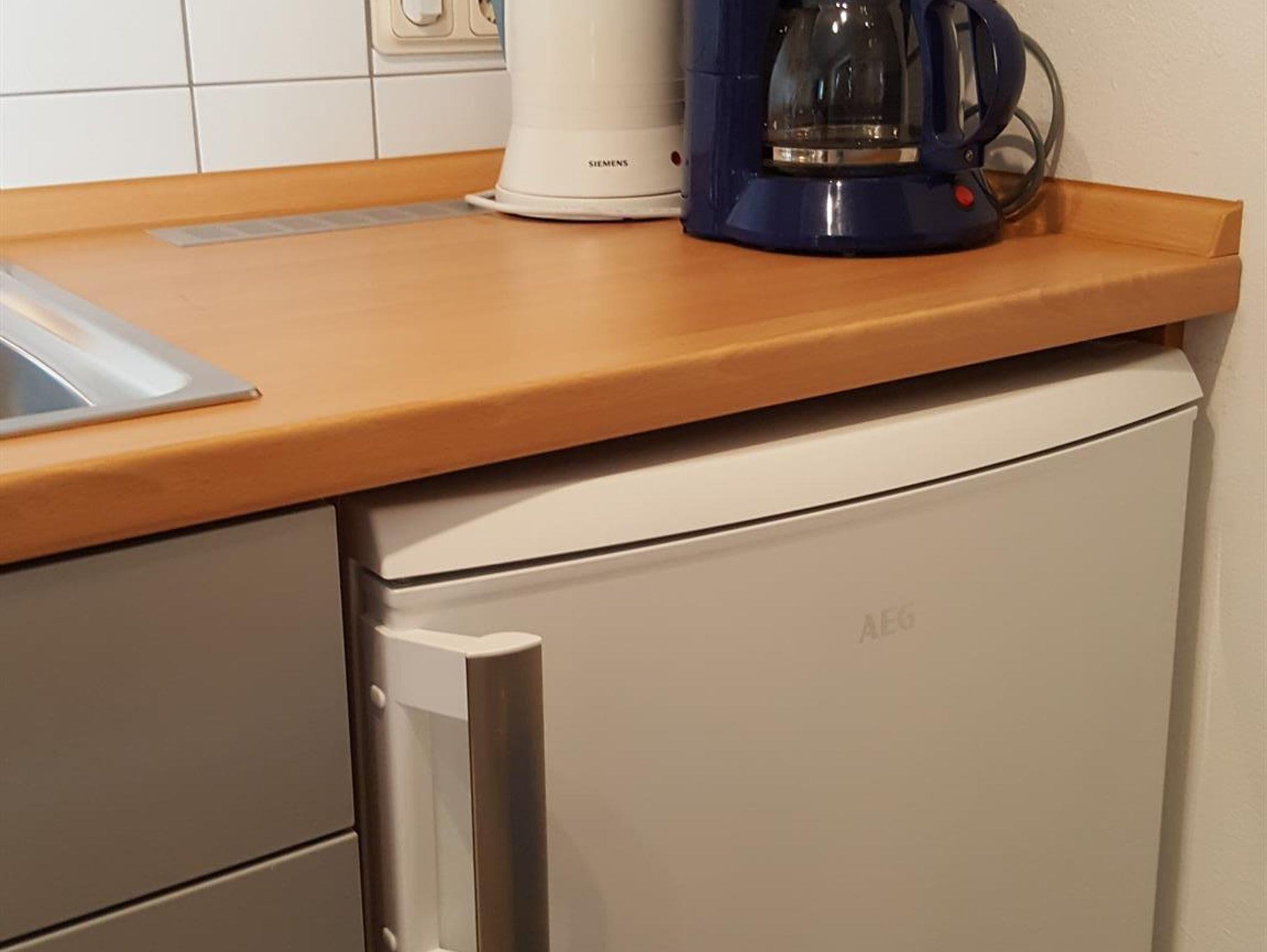 Seperater Eingang, Terrasse mit Möblierung, im Sommer mit Strandkorb, Kissen und Decken, Parkplatz, Flur mit Garderobe, Duschbad mit Waschbecken, WC und Föhn. Wohnzimmer mit Boxspring- Doppelbettcouch (1,60 m), Sat - TV und Esstisch. Schlafzimmer mit Doppelbett (1,40m), Schrank und Sessel. Die Küchenzeile ist ausgestattet mit Ceranfeld, Kühlschrank, Mikrowelle, Spülmaschine, Toaster, Kaffeeautomat, Wasserkocher, Geschirr und Wäsche. Als besonderen Service gibt es immer Tee und Kaffee vorrätig, natürlich kostenlos.