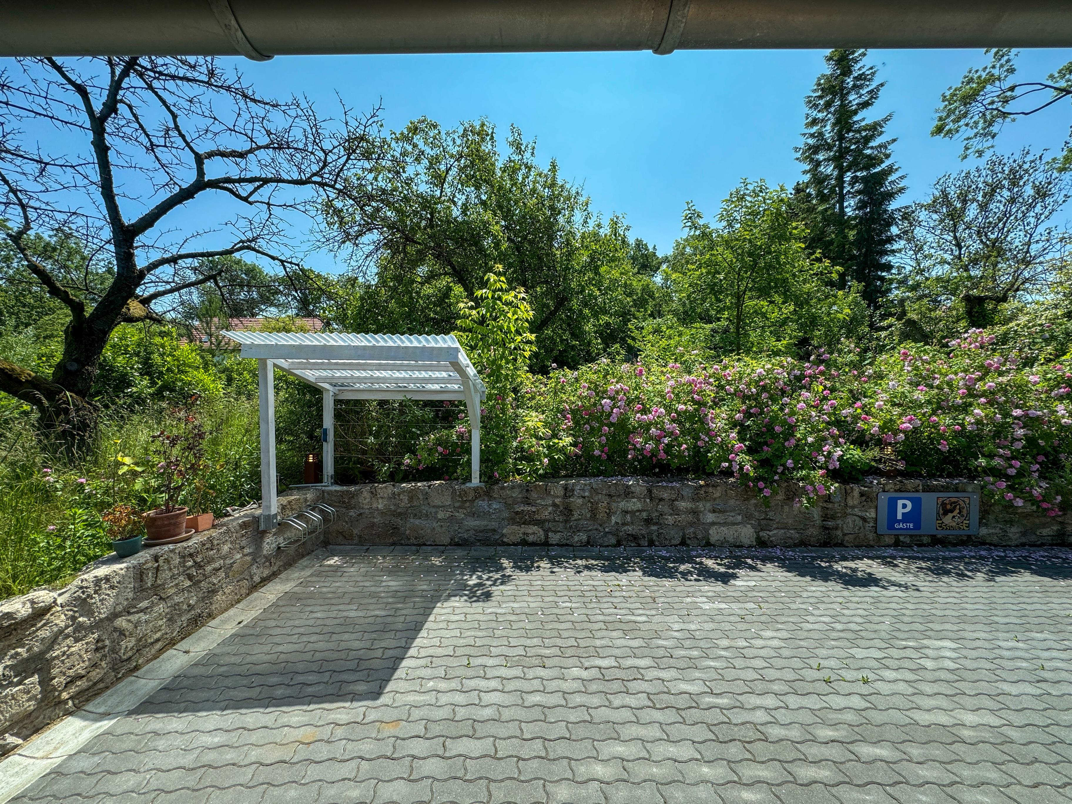 Gern können Sie Ihre Fahrräder in einem am Haus liegenden Schuppen unterbringen oder ein E-Bike bei uns mieten. Ihr Fahrzeug steht auf einem Parkplatz vor dem Haus und kann auf Wunsch an einer Wallbox geladen werden.