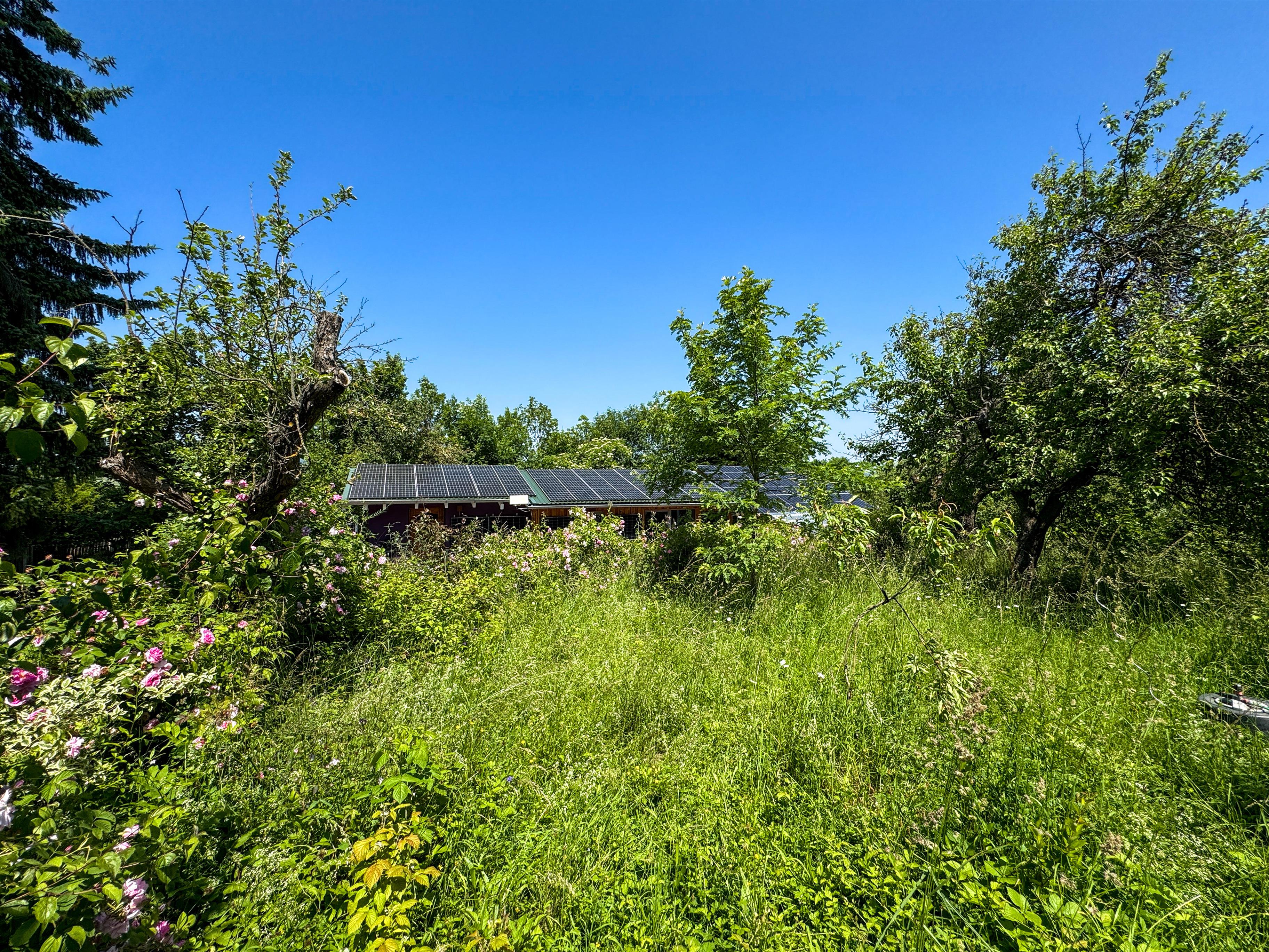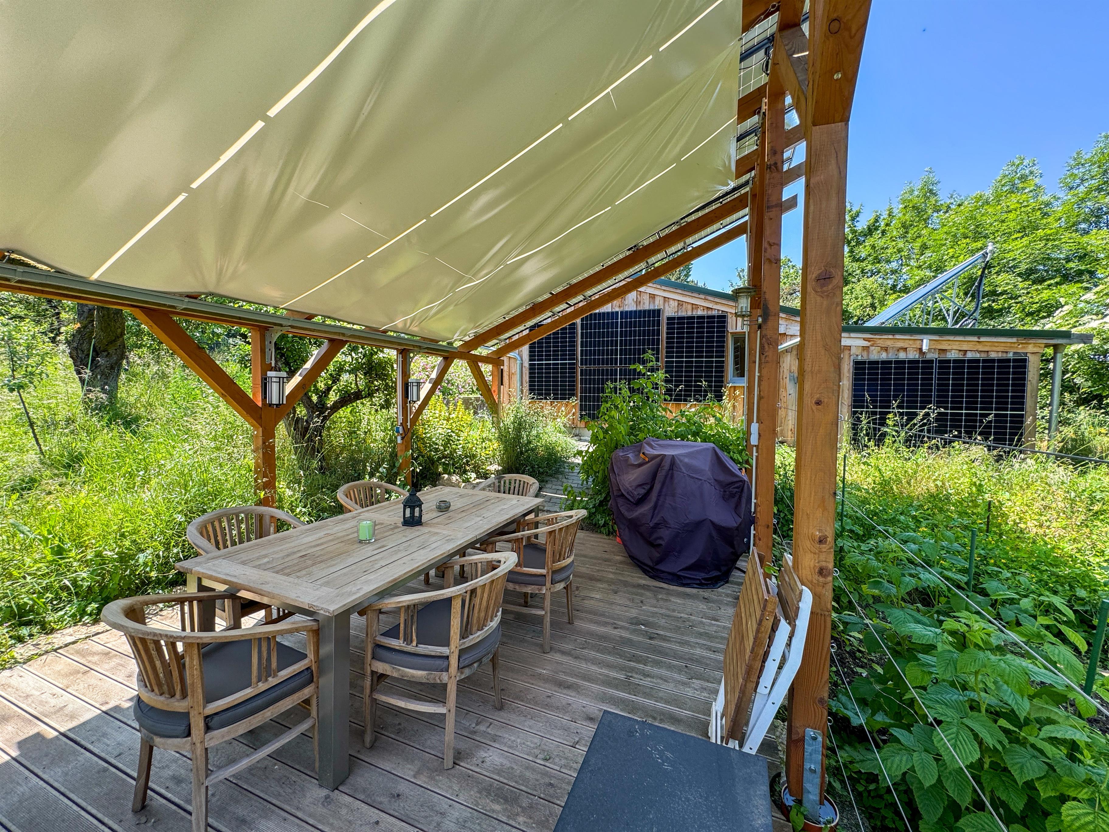 Somit erreichen wir eine Energieautarkie von 75 Prozent. Zudem nutzen wir über eine Zisterne das Regenwasser für die Bewässerung unseres Gartens.