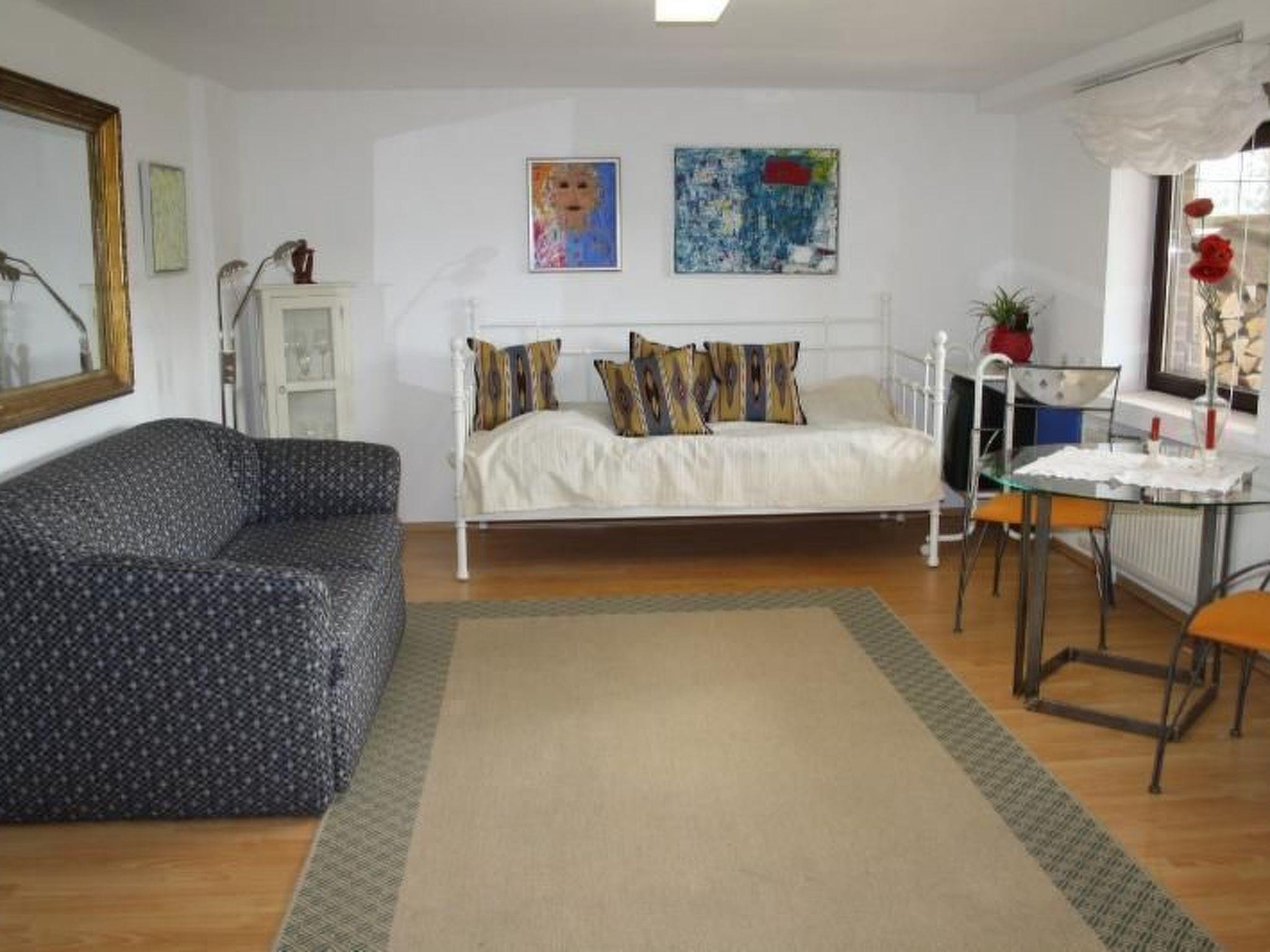 The spacious holiday flat is situated on the garden level of a private house on the outskirts of the village in a quiet location with no through traffic.