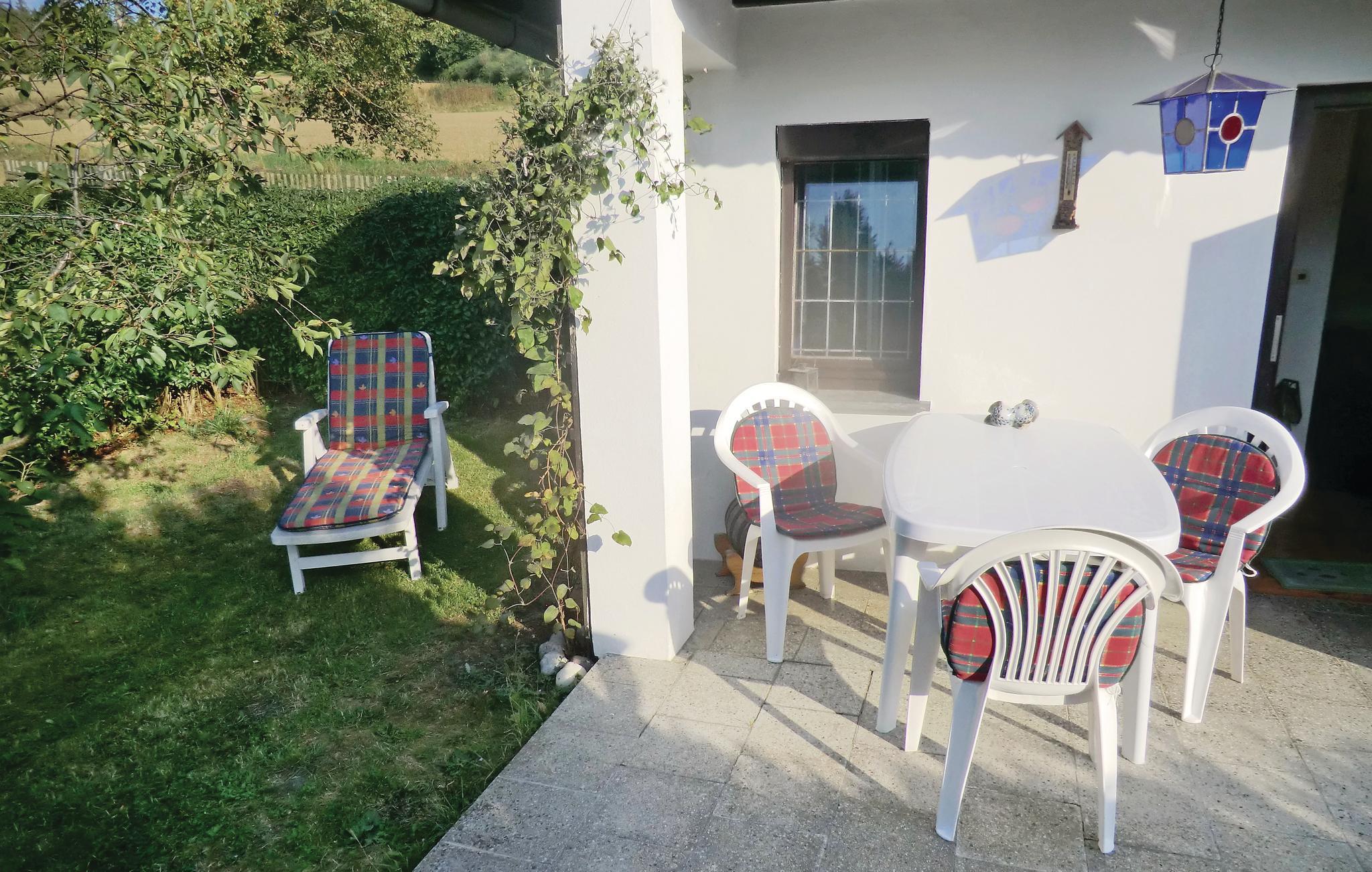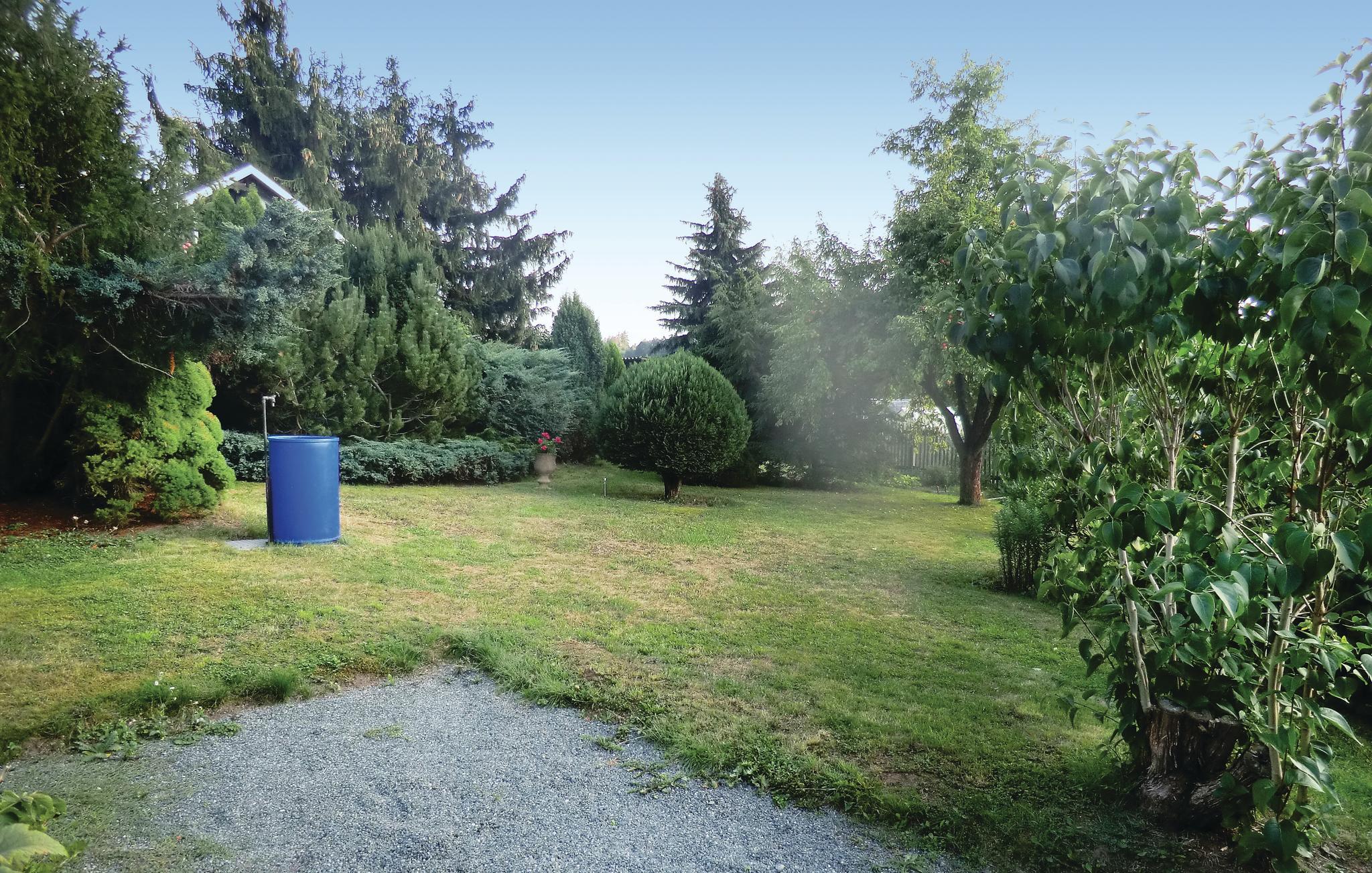 Hyggeligt feriehus i den rolige kant af en landsby, på en havegrund, hvor der også bliver dyrket frugt og grønt, som I selv har mulighed for at nyde godt af. I har en grillkamin til rådighed. Boligen er oplagt til to voksne og et barn. Skrå tagvægge i soveværelse 1. Der er ca. 5 km til fritidsmuligheder som museer, regionalmuseer, dæmningen Pirk, vidunderlige badebredde med toilet, kroer og store græsplæner at ligge i solen på.
