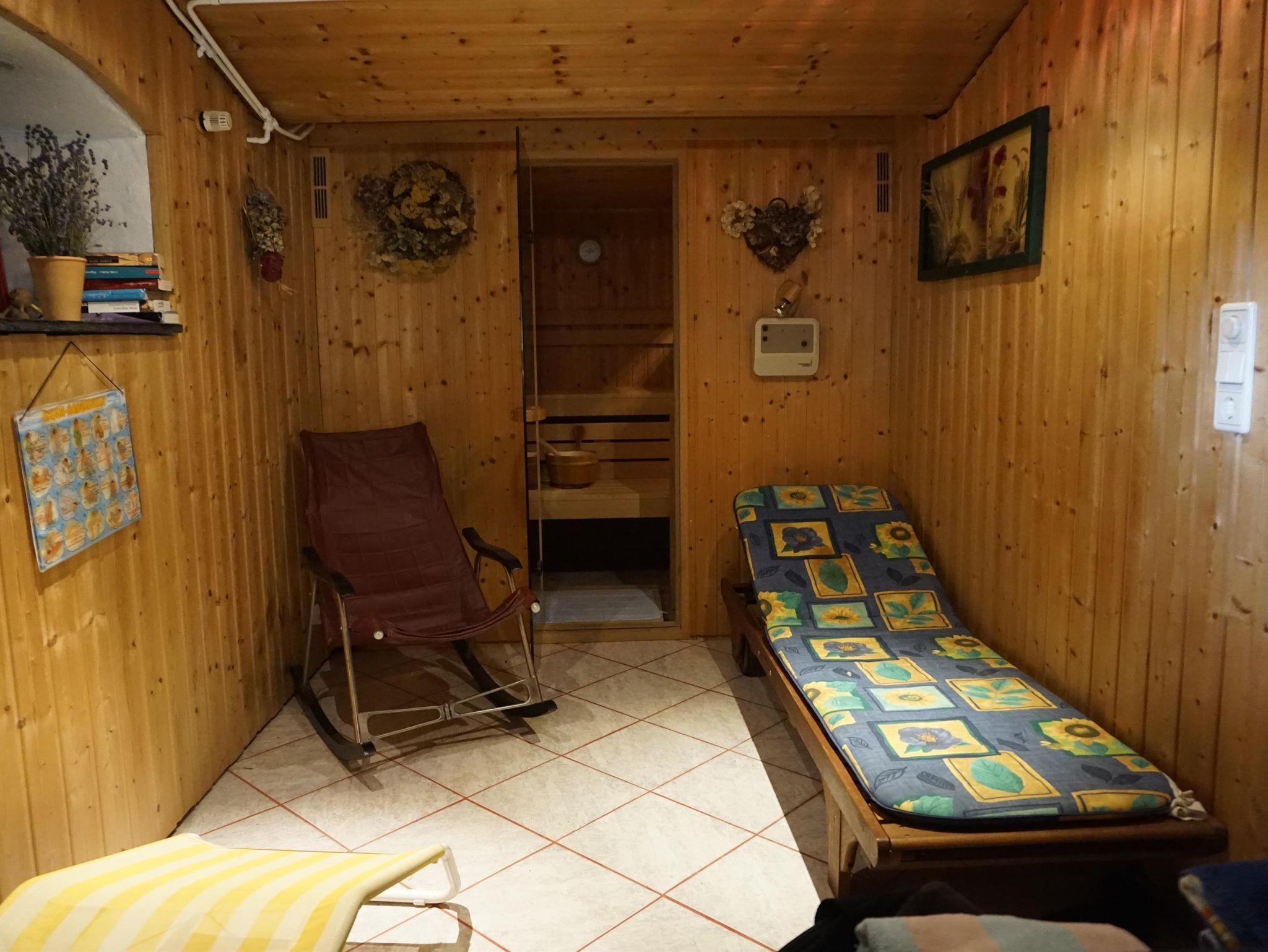 Weiterhin ist ein Tischtennisraum, Fitnessraum, eine Grillecke, Sauna, Grillkota, großer Garten mit Liegewiese und Swimmingpool vorhanden. Parkplätze stehen direkt im Hof zur Verfügung. Ein grosses Spielhaus, ein Sandkasten sowie Trampolin und viel Platz zum Spielen wird jedes Kinderherz höher schlagen lassen.
