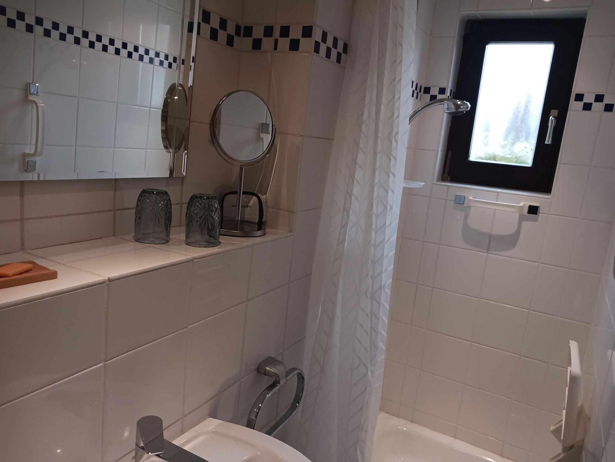 Im Badezimmer befindet sich eine Dusche/WC, Pro Person 1 Badetuch/Handtuch.