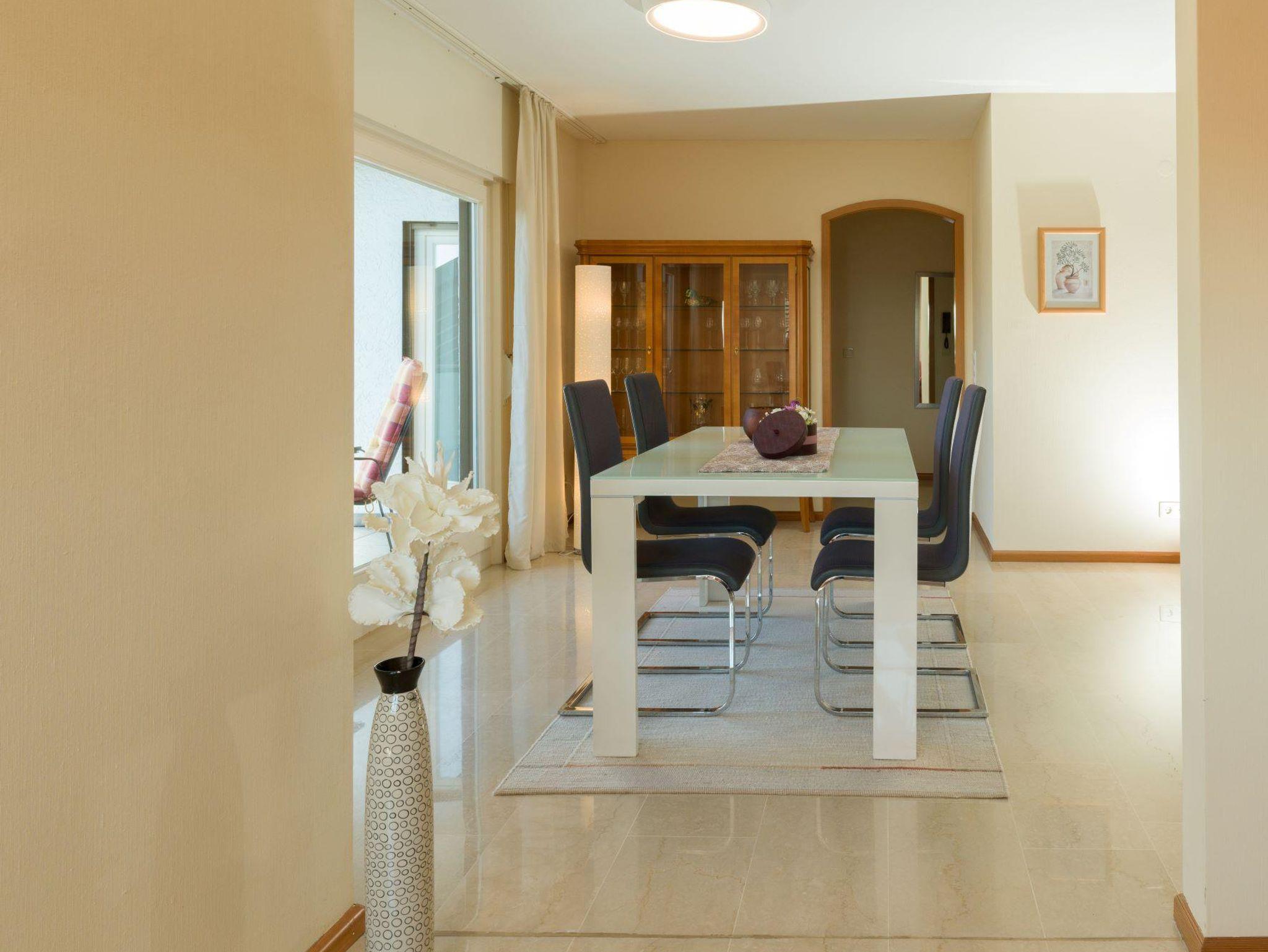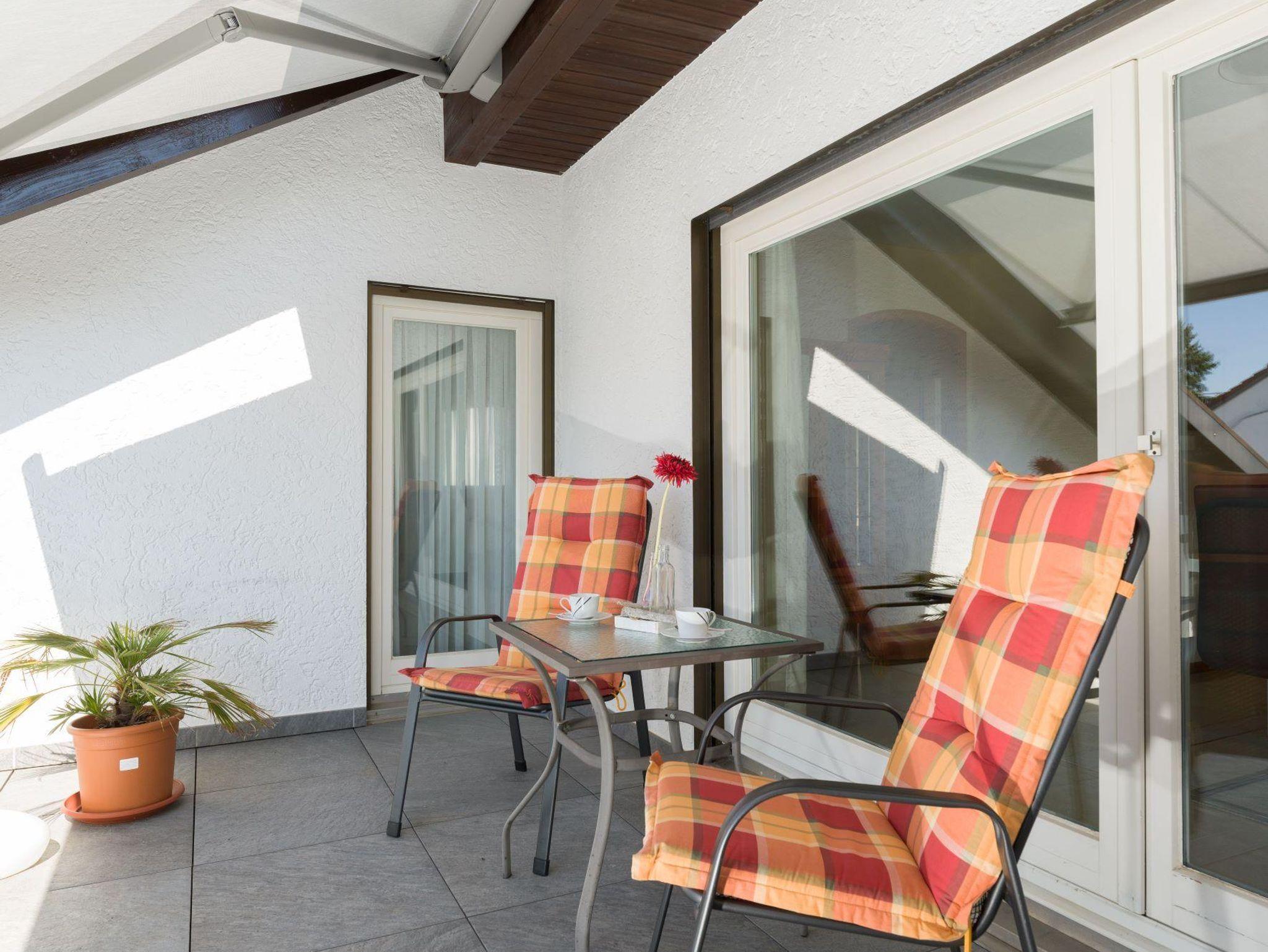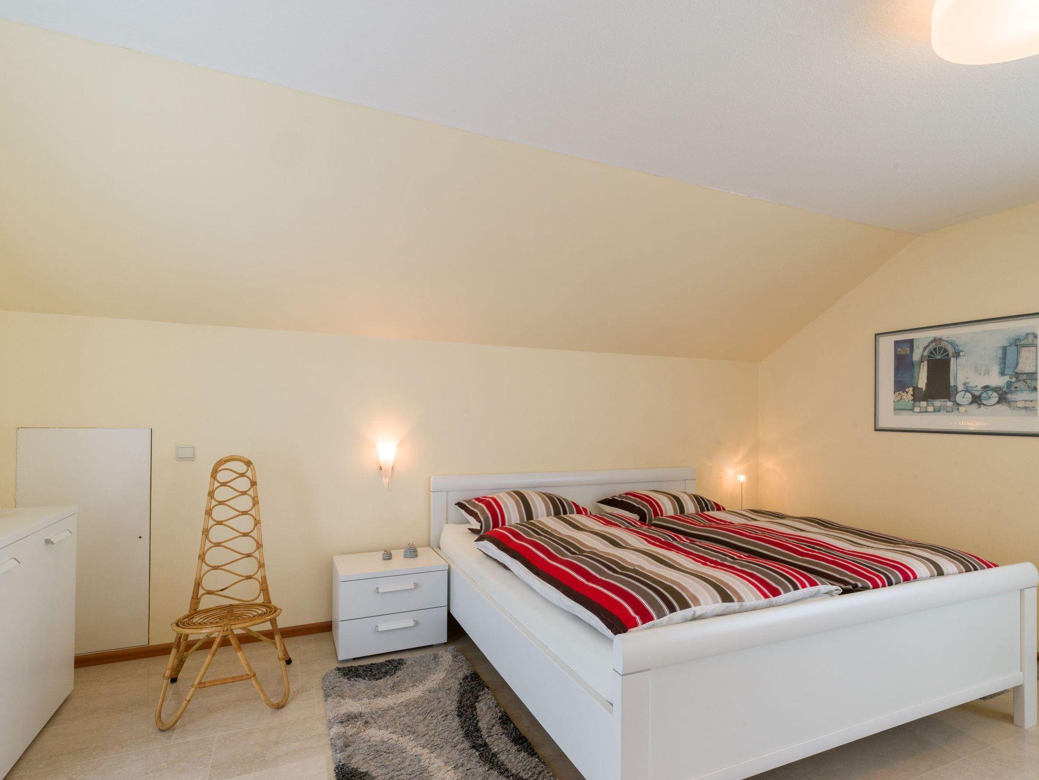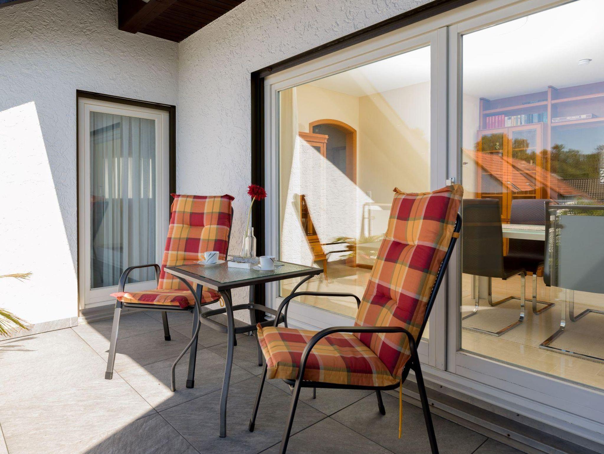 Großzügige, sonnendurchflutete DTV klassifizierte 4 Sterne Ferienwohnung auf 80 qm mit offener Küche-Ess-/Wohnbereich (TV, WLAN) und Dachterrasse bietet Ihnen das perfekte Urlaubsambiente. Ein neu möbliertes Schlafzimmer mit Doppelbett 2,00 x 2,00 m und eine Schlafcouch 1,40 m x 2,00 m (auf der eine dritte Person für 20€ pro Person/Nacht übernachten kann) garantieren erholsamen Schlaf. Neben einem Bad mit Dusche, Badewanne, Bidet und WC bietet die Ferienwohnung ein zusätzliches Gäste-WC. In der Wohnung befindet sich ein Abstellraum sowie eine großzügige Dachterrasse mit Gartenmöbeln. Die Dachterrasse ist zugänglich vom Schlaf- und Esszimmer.