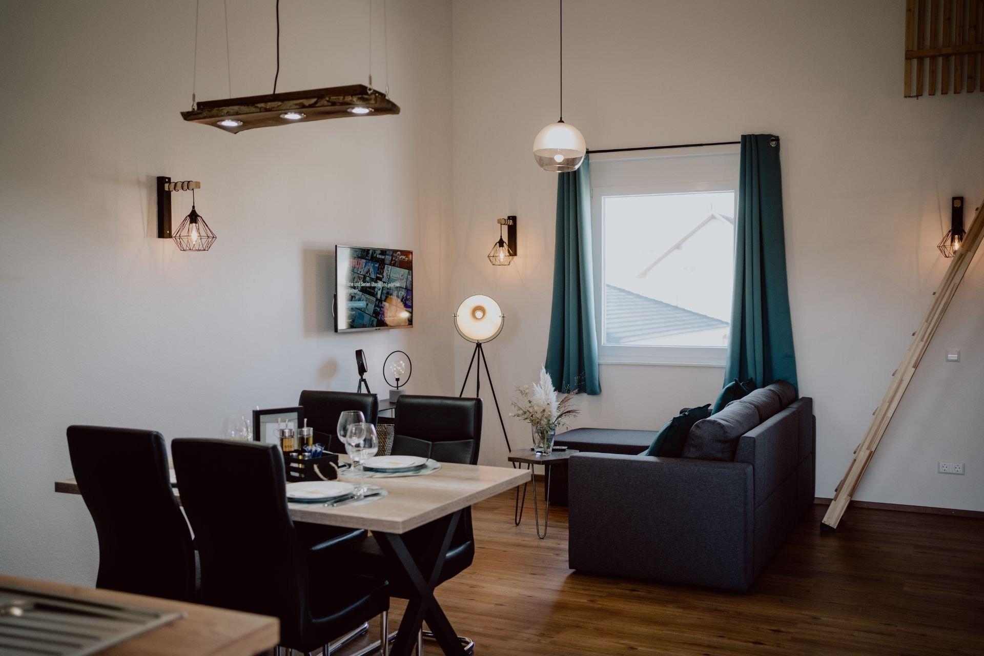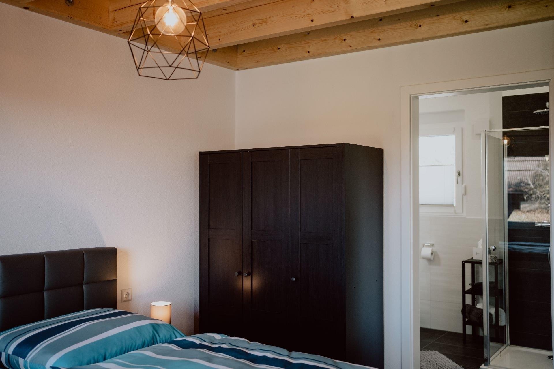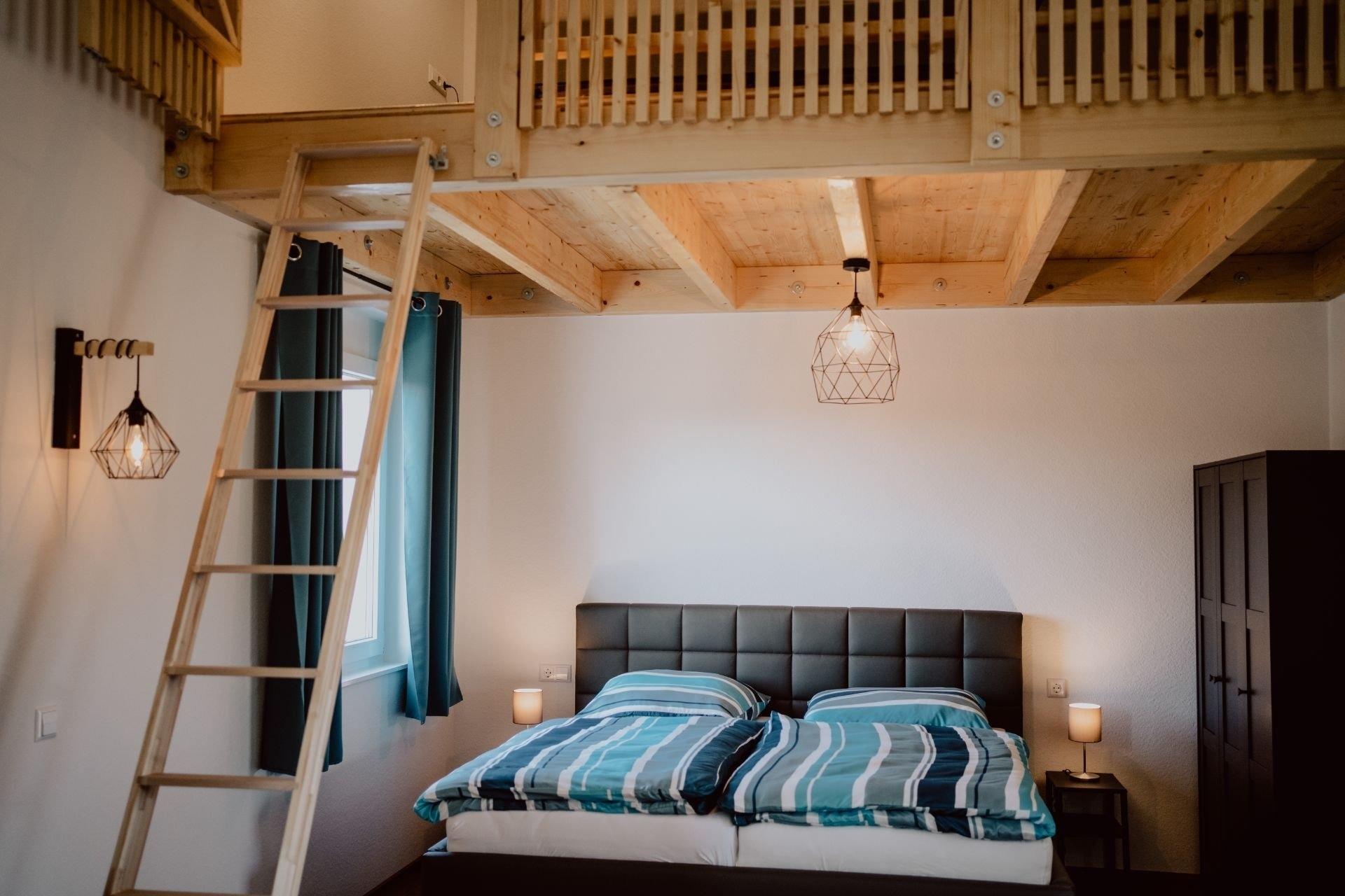 40qm, offener Wohn-Ess-und SchlafberAnkommen und Wohlfühlen in unserem neu erbauten Heim in Ortsrandlage in Weisweil am Rhein,nur 8 Fahrmin. zum Europa Park, am Rande des Kaiserstuhls und Taubergiessen.15 km zur Autobahn, Bushaltestelle nur 300m entfernt.Ca. 60 Fahrmin. zum Feldberg.Die Wohnung befindet sich im 1. Obergeschoss, neben unseren beiden anderen neu erbauten komfortablen Wohnungen. Diese Unterkunft besteht aus einem offenen Raum mit 40qm Wohnfläche, der sich in Schlaf-, Wohn- und Küchenbereich gliedert, sowie einer offenen Schlafempore mit Leiteraufgang.Küche, Kühlschrank mit Gefrierfach, Toaster, Wasserkocher, Cerankochfeld, Backofen, Fön, Schlafcouch, 2 Doppelbetten, LAN, WLAN, SAT-TV, Netflix, Waschmaschine, Trockner, Parkplatz, überdachter Balkon.