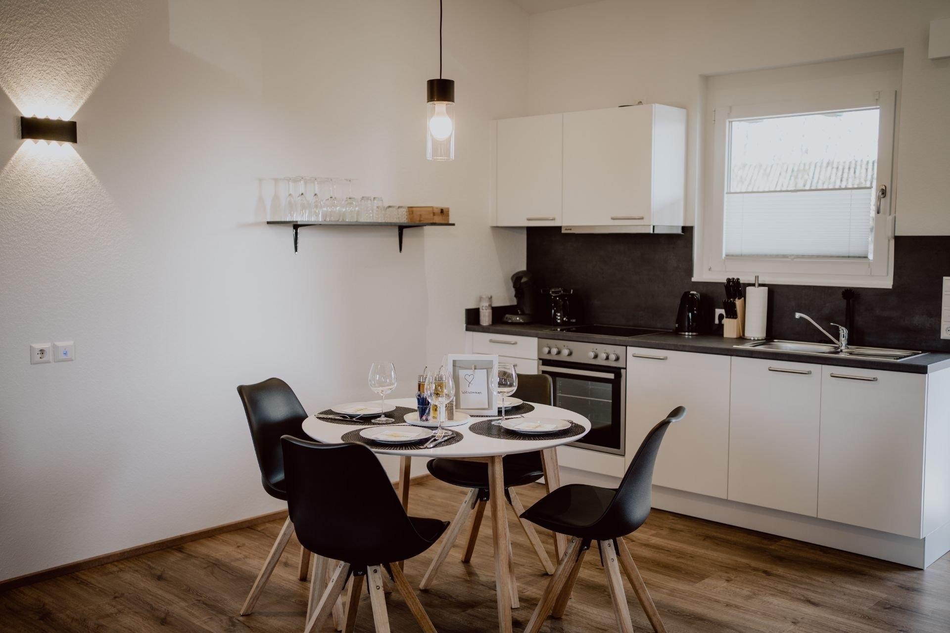 Ankommen und Wohlfühlen in unserem neu erbauten Heim in Ortsrandlage in Weisweil am Rhein,nur 8 Fahrmin. zum Europa Park, am Rande des Kaiserstuhls und Taubergiessen.15 km zur Autobahn, Bushaltestelle nur 300m entfernt.Ca. 60 Fahrmin. zum Feldberg.Die Wohnung befindet sich im 1. Obergeschoss, neben unseren beiden anderen neu erbauten komfortablen Wohnungen. Diese Unterkunft besteht aus einem offenen Raum mit 40qm Wohnfläche, der sich in Schlaf-, Wohn- und Küchenbereich gliedert.40qm, offener Wohn-Ess-und Schlafbereich,Küche, Kühlschrank mit Gefrierfach, Toaster, Wasserkocher, Cerankochfeld, Backofen, Fön, Schlafcouch, 1 Doppelbett, LAN, WLAN, SAT-TV, Netflix, Waschmaschine, Trockner, Parkplatz, überdachter Balkon.