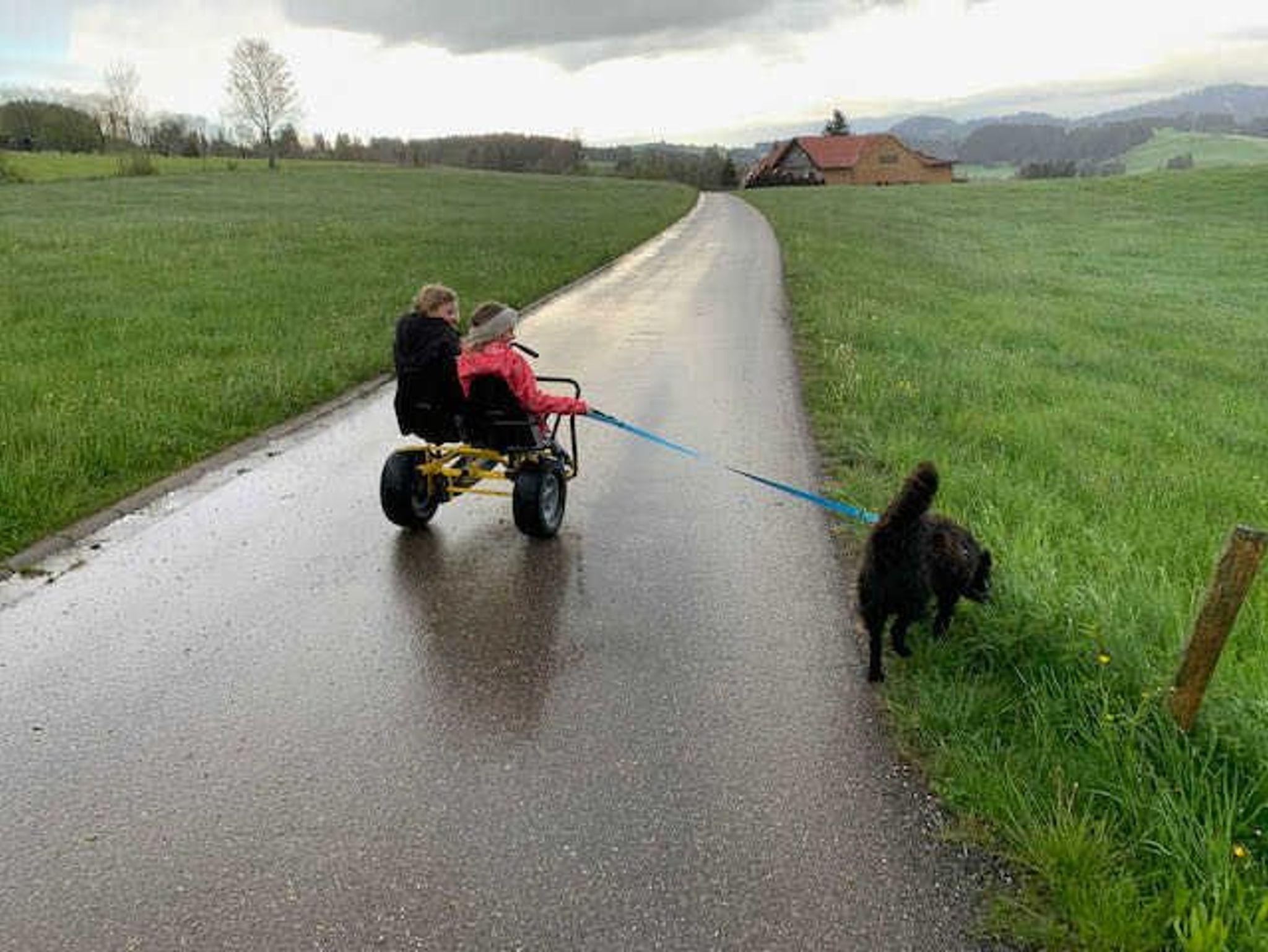 Schlitten, Schneeschuhe und ein großes Kettcar sind auf Anfrage gegen eine kleine Gebühr bei uns auszuleihen. Auch Fahrräder können sie bei uns gegen Gebühr ausleihen: zwei neue Trekking-E-Bikes für je 25€ pro Tag, Zwei ältere Mountainbikes und zwei Kinder-Mountainbikes für je 15€ pro Tag
