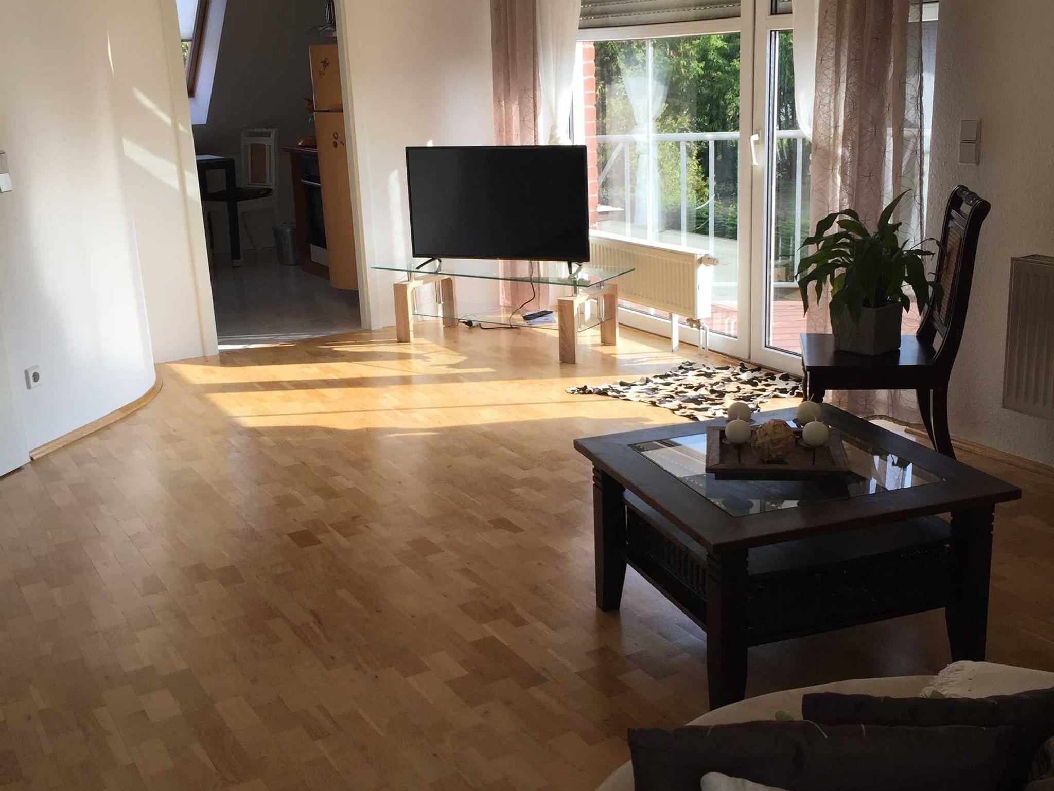 Beide Ferienwohnungen liegen in der oberen Etage des Hauses und sind über einen Treppeneingang zu erreichen. In der Ferienwohnung 1 befindet sich ein Bad mit Wanne, eine voll eingerichtete Küche mit Kühlschrank, Herd, Spüle mit Geschirrspüler, Mikrowelle und Kaffeemaschiene sowie einem Tisch mit 4 Stühlen. Ein Wohnzimmer mit Schlafcouch, einem Einzelbett sowie ein Flachbildschirm. Vom Wohnzimmer aus können sie den Balkon nutzen. Über eine Wendeltreppe erreichen Sie das Schlafzimmer mit 2 Einzelbetten bei Bedarf können 2 Einzelbetten zu einem Doppelbett zusammengeschoben werden.Das Zimmer verfügt ebenfalls über einen Flachbildschirm. Die Wohnung ist für3- 4 Personen geeignet. Die Ferienwohnung 2 bietet ein Bad mit Wanne. Das Schlafzimmer ist über eine Wendeltreppe erreichbar. Hier befinden sich 3 Einzelbetten ein Kleiderschrank sowie ein Flachbildschirm.Die Betten können bei Bedarf zu einem Doppelbett zusammengeschoben werden. Im unteren Bereich befindet sich das Wohnzimmer mit einer Couch sowie einem Einzelbett und einem Flachbildschirm. Neben dem Wohnzimmer befindet sich eine voll eingerichtete Küche mit Herd, Kühlschrank, Spüle mit Geschirrspüler, Mikrowelle und Kaffeemaschiene.Die Ferienwohnung 2 ist für 3-4 Personen geeignet. Hier können sie ebenfalls einen Balkon nutzen. Wenn Sie beide Ferienwohnungen zusammen mieten können Sie 6- 8 Personen konfortabel unterbringen.
