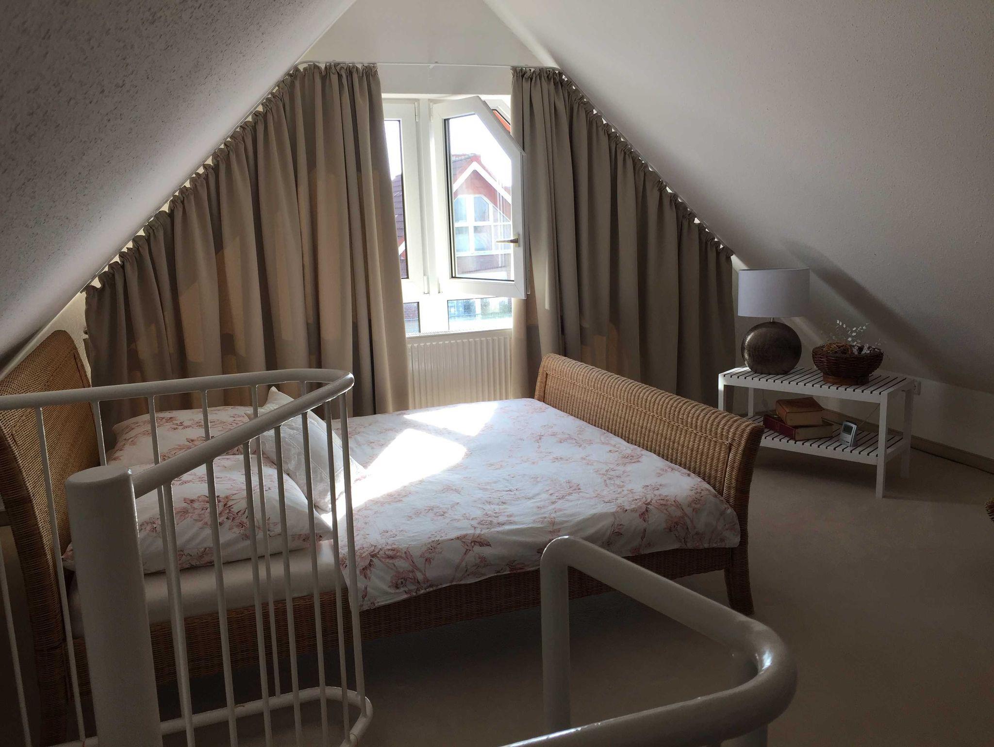 Die Ferienwohnung liegt in der oberen Etage des Hauses und ist über einen separaten Treppeneingang zu erreichen. In der einen Ferienwohnung befindet sich ein Bad mit Wanne, eine Küche mit einem Tisch und Stühlen, sowie ein Wohnzimmer mit Flachbildschirm und Balkon, ein Schlafzimmer mit Doppelbett, welches über eine Wendeltreppe erreichbar ist. Die Wohnung wurde renoviert und ist auf dem neusten Stand hergerichtet.