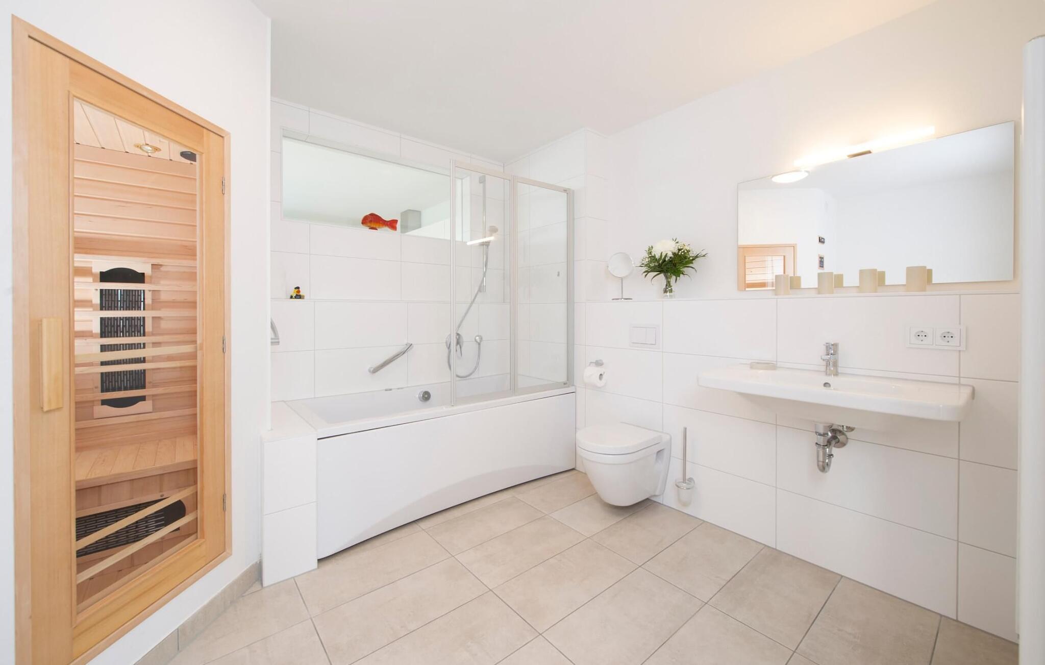 Bølgerne danser her. Hvor østersøfjorden Slien løber ud i Østersøen, omgivet af vand og med fri udsigt til havneindløbet og sejl- og sportsbådshavnen i Østersøresortet Olpenitz, ligger ferieejendommen Wellentanz og lever op til sit navn. . Kun få meter fra Weidefelds sandstrand og havnepromenaden imponerer denne ejendom med sin centrale beliggenhed, fantastiske udsigt over vandet og topfaciliteter. I kan nyde morgen- og aftensolen på to terrasser. Det grønne område omkring huset indbyder til solbadning, leg og afslapning. Og længes I efter wellness, kan I se frem til et privat wellnessområde. Infrarød varmekabine med hi-fi lydsystem og LED farvelysterapi samt afslapningsboblebad inviterer jer til at slappe af efter en gåtur på stranden. Fantastisk udsigt åbner op fra opholdsstuen og på den tilstødende terrasse med udsigt over lystbådehavnen. Havnebiografen sørger for underholdning under en hyggelig grillaften eller en romantisk middag med levende lys ved solnedgang. På ferien er der tid til kreativ madlavning, det fuldt udstyrede køkken-alrum lader intet tilbage at ønske. Morgenmad i morgensolen på østterrassen, ren feriefølelse. WiFi og Smart TV med Telekom Home Entertainment-program sørger også for indendørs underholdning. De to soveværelser med udgang til den østvendte terrasse er ligeledes indrettet til høj standard og nænsomt møbleret. Og vågner I tidligt og veludhvilet på ferien, kan I se billedskønne solopgange på den tilstødende terrasse. Der er en ekstra soveplads på den komfortable sovesofa i stuen. Gulvvarme, spabad og sauna lover komfort i hver sæson. Og på den hyggelige sofa bag panoramavinduets front giver det nordiske vejr en helt særlig hygge i den mørke årstid. Der er privat parkeringsplads og cykelskur foran huset. Ferielejligheden er en lejlighed i stueetagen. Bemærk venligst: OstseeResort Olpenitz er meget populært, og der bygges fortsat i parken. Ikke desto mindre kan I se frem til en 5-stjernet standard og et førsteklasses ophold. Byggeaktiviteterne kommer ikke til at forstyrre jer på ferien, og derfor gives der ikke yderligere afslag i prisen.