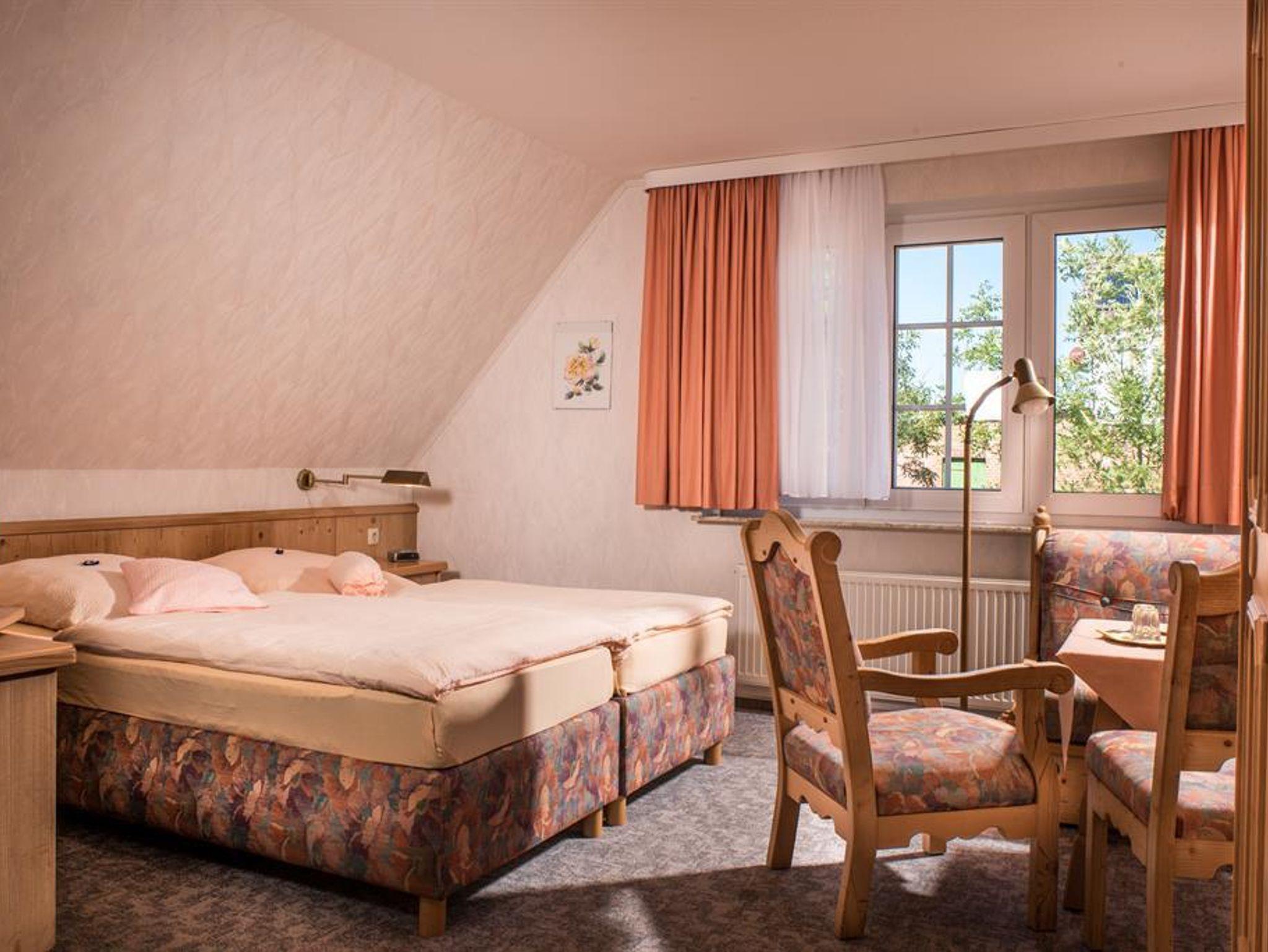 In unserem Doppelzimmer 3 für 1-2 Personen erwartet Sie ein Doppelbett mit TV, viel Stauraum, eine kleine Sitzgruppe, sowie ein Duschbad mit WC.