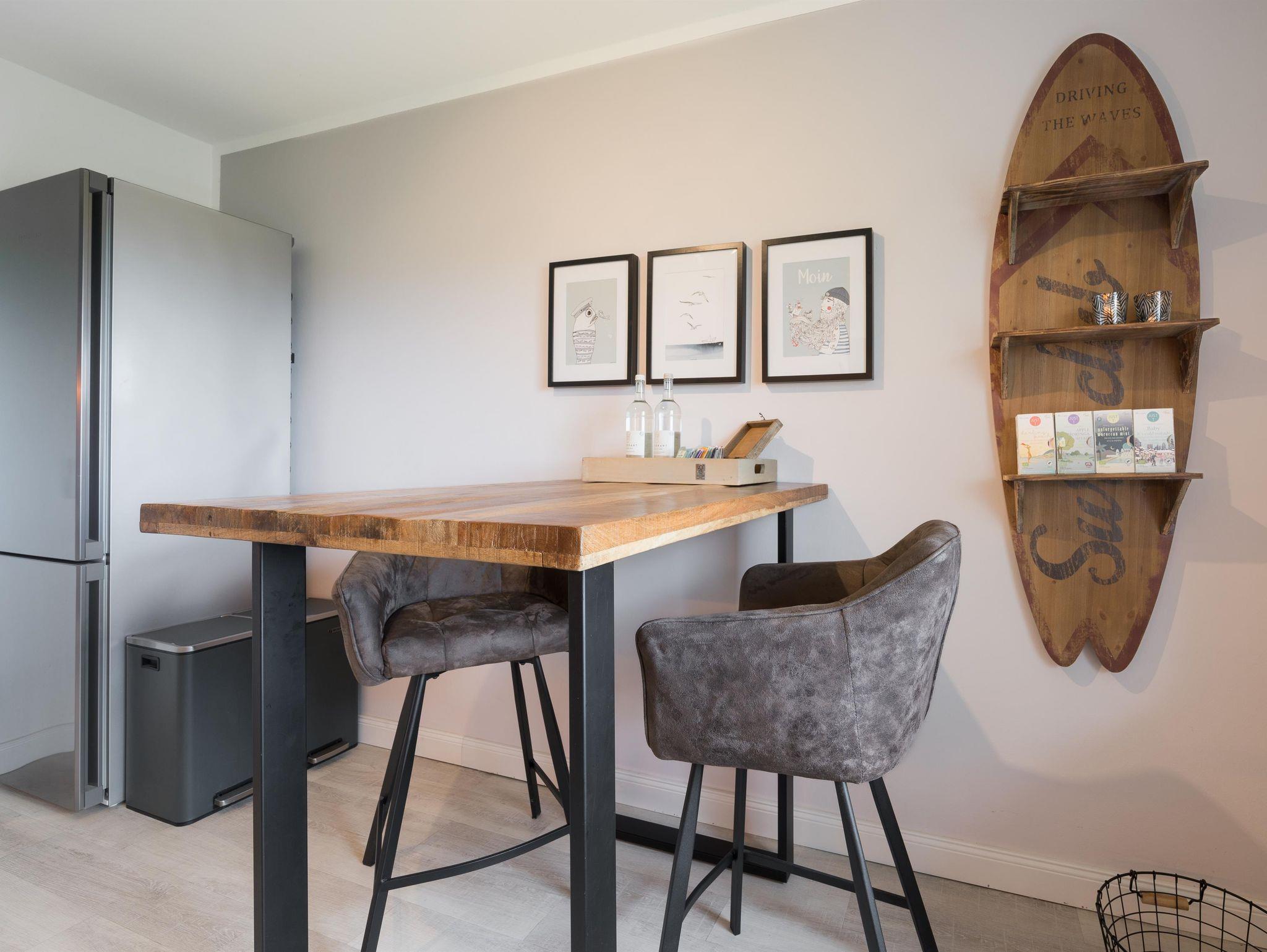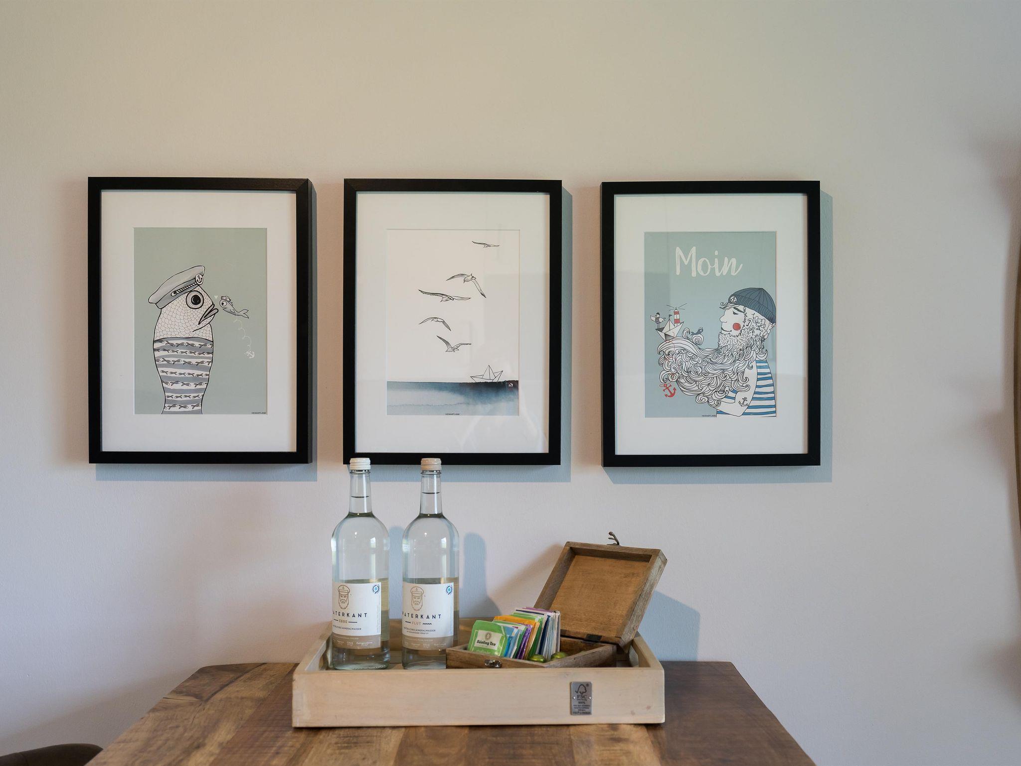 Die Ferienwohnung Wellenreiter im Erdgeschoss lädt mit einem gemütlichen Kamin und einem moderen Saunaraum mit Rainshower-Dusche und Ausgang zur Terrasse ein. Es gibt eigene Terrassenbereiche für jede Wohnung, außerdem Strandkörbe für die oberen Wohnungen. Ein Bike- und Surf Port ist gerade für Sie fertiggestellt. Hier können Sie Bretter unterstellen, Neos aufhängen, Fahrräder in der Laube verschliessen und bei unbeständigem Wetter geschützt relaxen. WLAN ist im ganzen Haus leider teilweise mit starken Schwankungen verfügbar. Wichtig für die Kids: Direkt gegenüber befinden sich Bolz- und Spielplatz! Und in wenigen Minuten ist eine schöne Badestelle am Meer in Vollerwiek zu erreichen.