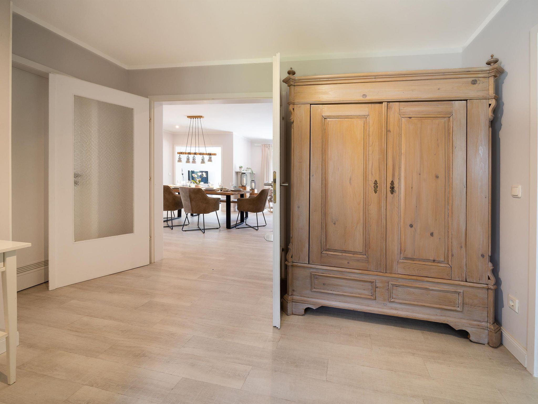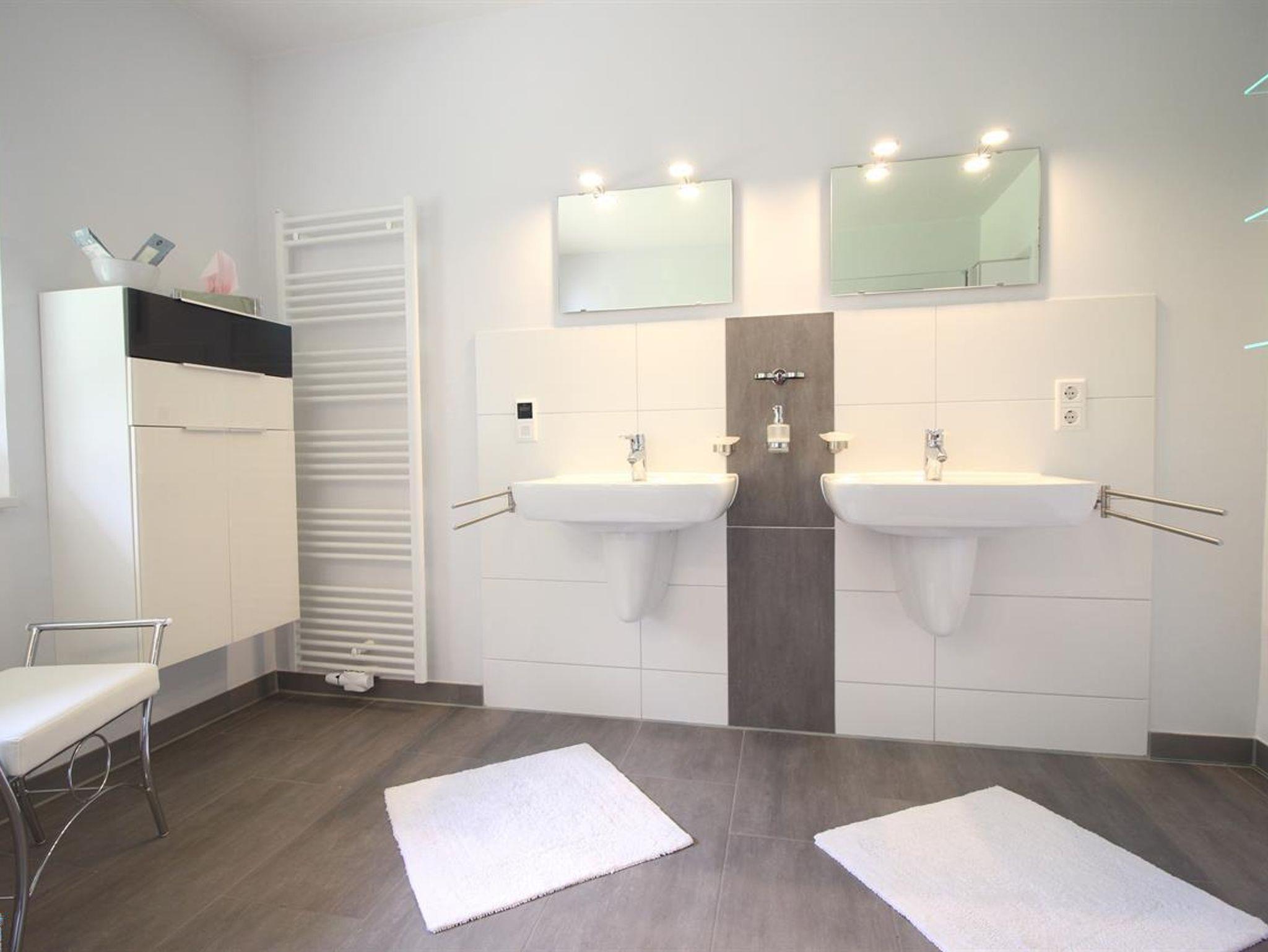 Das helle Badezimmer hat eine Fußbodenheizung, eine begehbare Dusche, Bidet und zwei Waschbecken, das Gäste-Duschbad mit Toilette hat ein Einzelwaschbecken. Verbringen Sie die ungemütlicheren Tage des Jahres doch in der eigenen Sauna. Zwei Ruheliege sowie eine Rain-Showerdusche sind vorhanden. Im loungeartigen, gemütlichen Esszimmer mit Kamin und kleiner Bibliothek finden alle Platz. Die voll ausgestattete separate Küche lädt mit dem zusätzlichen Essbereich, Geschirrspüler, Kühl-und Gefrierschrank, sowie Mikrowelle und großer Arbeitsfläche zum gemeinsamen Kochen ein. Im Wohnzimmer befinden sich eine Sitzgruppe, Fernseher, DVD und Stereoanlage.