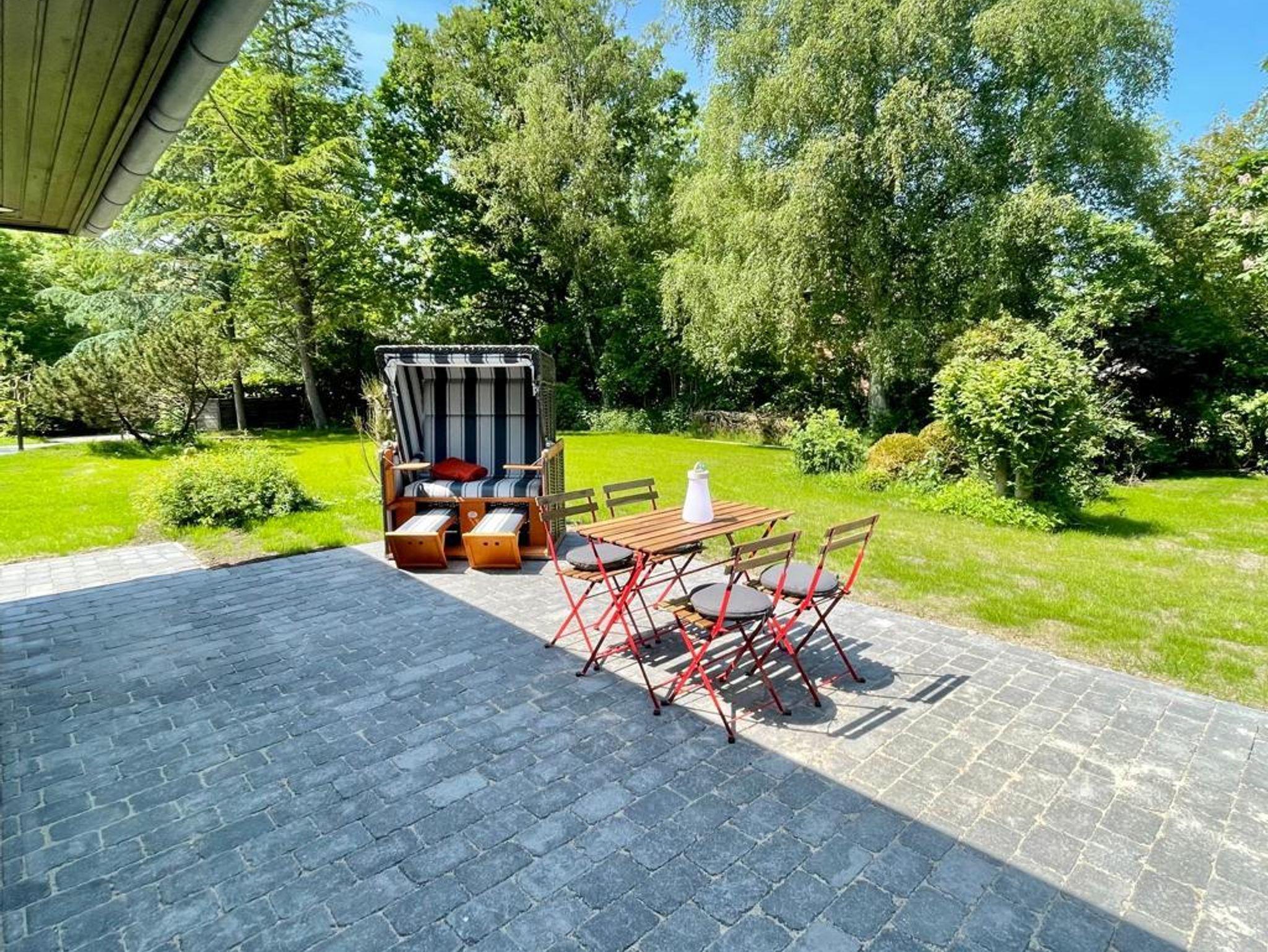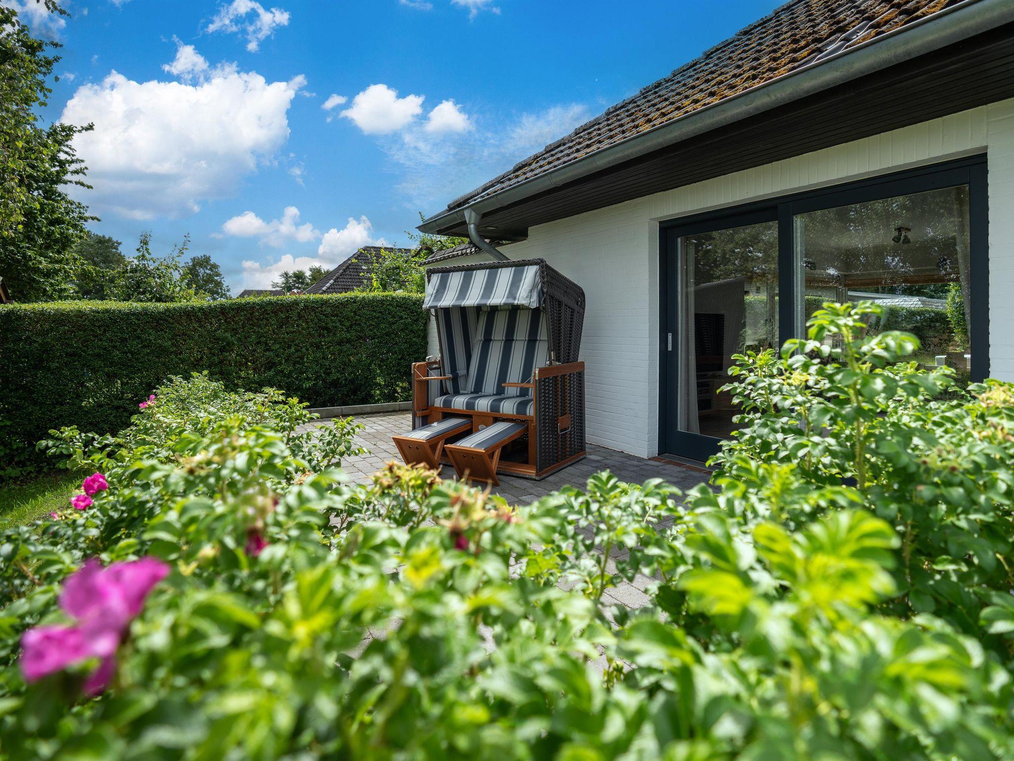 Die Wohnung verfügt über 2 Schlafzimmer. Davon ein Schlafzimmer mit Doppelbett und ein Schlafzimmer mit zwei Einzelbetten. Das Badezimmer mit integriertem Radio hat eine Dusche mit Falttüren, Toilette, Waschmaschine, sowie ein großes Waschbecken mit Unterschrank und Ablage. In der separaten Küche mit Geschirrspüler, flüsterleisem Kühlschrank und Mikrowelle lässt es sich gut Kochen. Der große Essbereich bietet Platz für sechs Personen. Im hellen Wohnbereich stehen ein Sofakomination aus 3-er und 2-er Sofa, sowie ein Sessel mit gemütlicher Leseecke. Ein SAT-TV, Fernseher sowie ein Fachbildschirm ist ebenfalls vorhanden. Ein Pkw-Stellplatz ist für Sie vorhanden. Der Garten mit der ca. 1900qm großen Fläche und einer zur Wohnung gehörenden Terasse und Strandkorb mit Gemeinschafts-Gartengrill stehen zum Sonnen und Entspannen zur Verfügung.