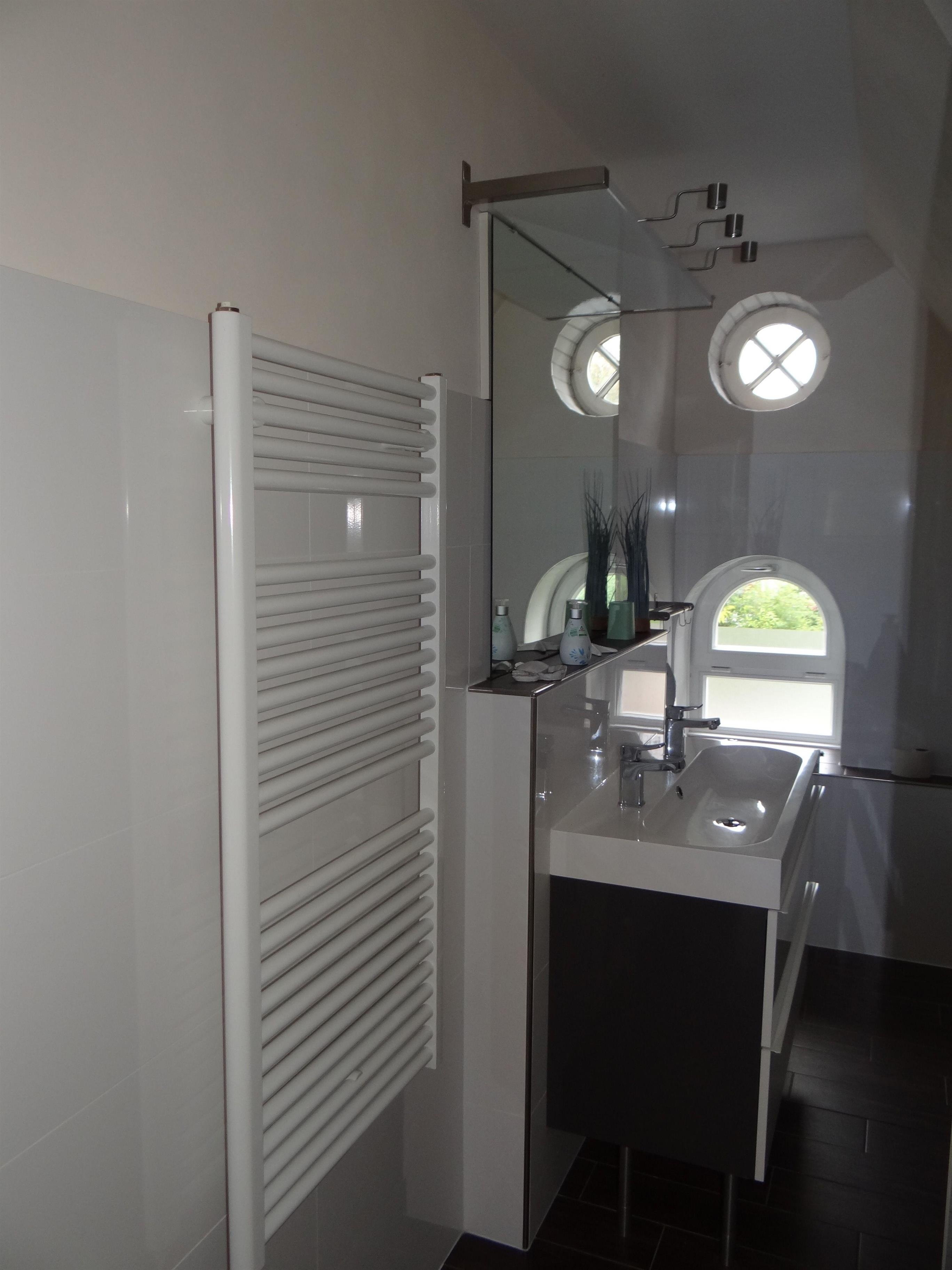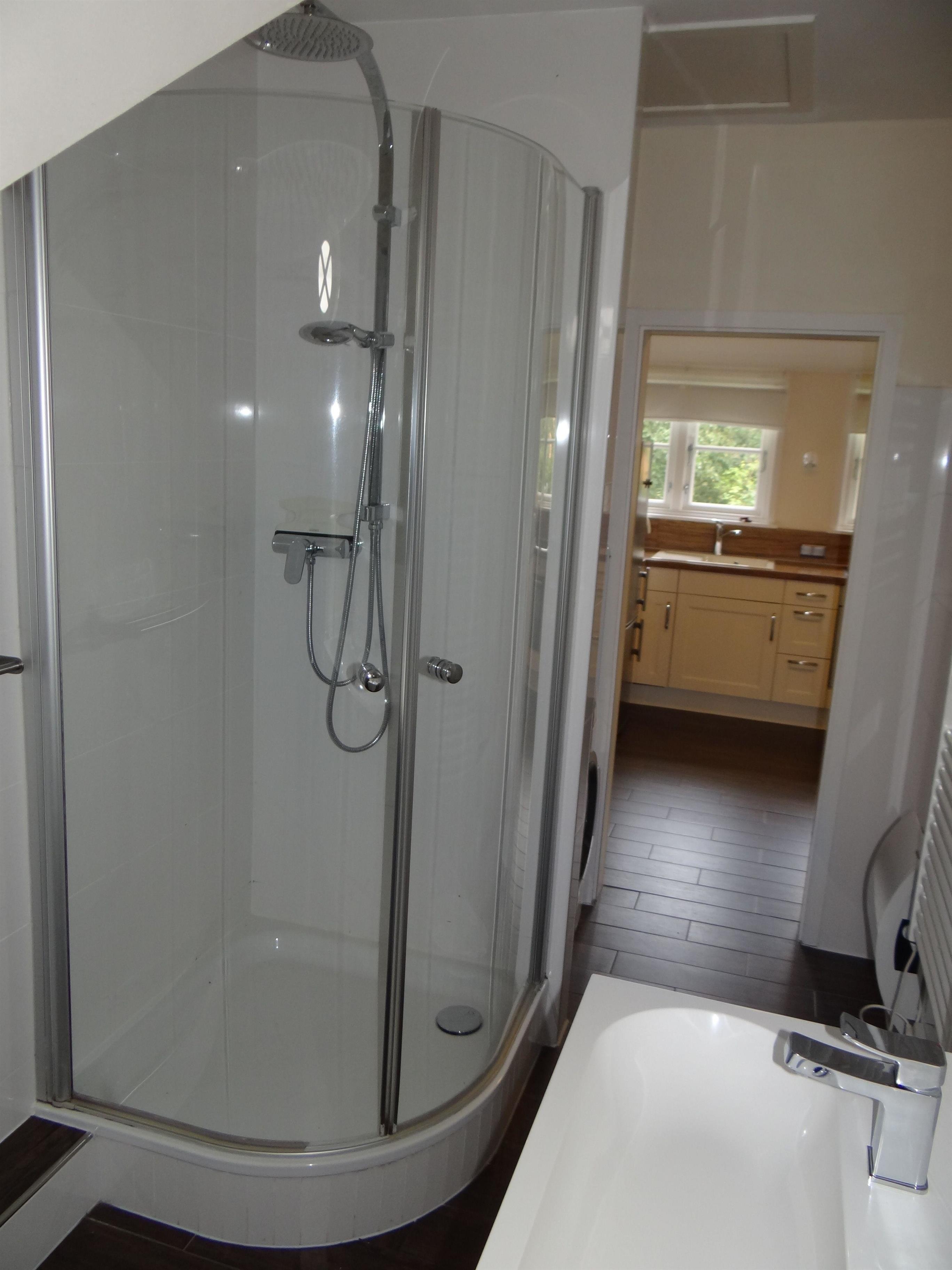Badezimmer mit Dusche, WC, Waschmaschine und Trockner
