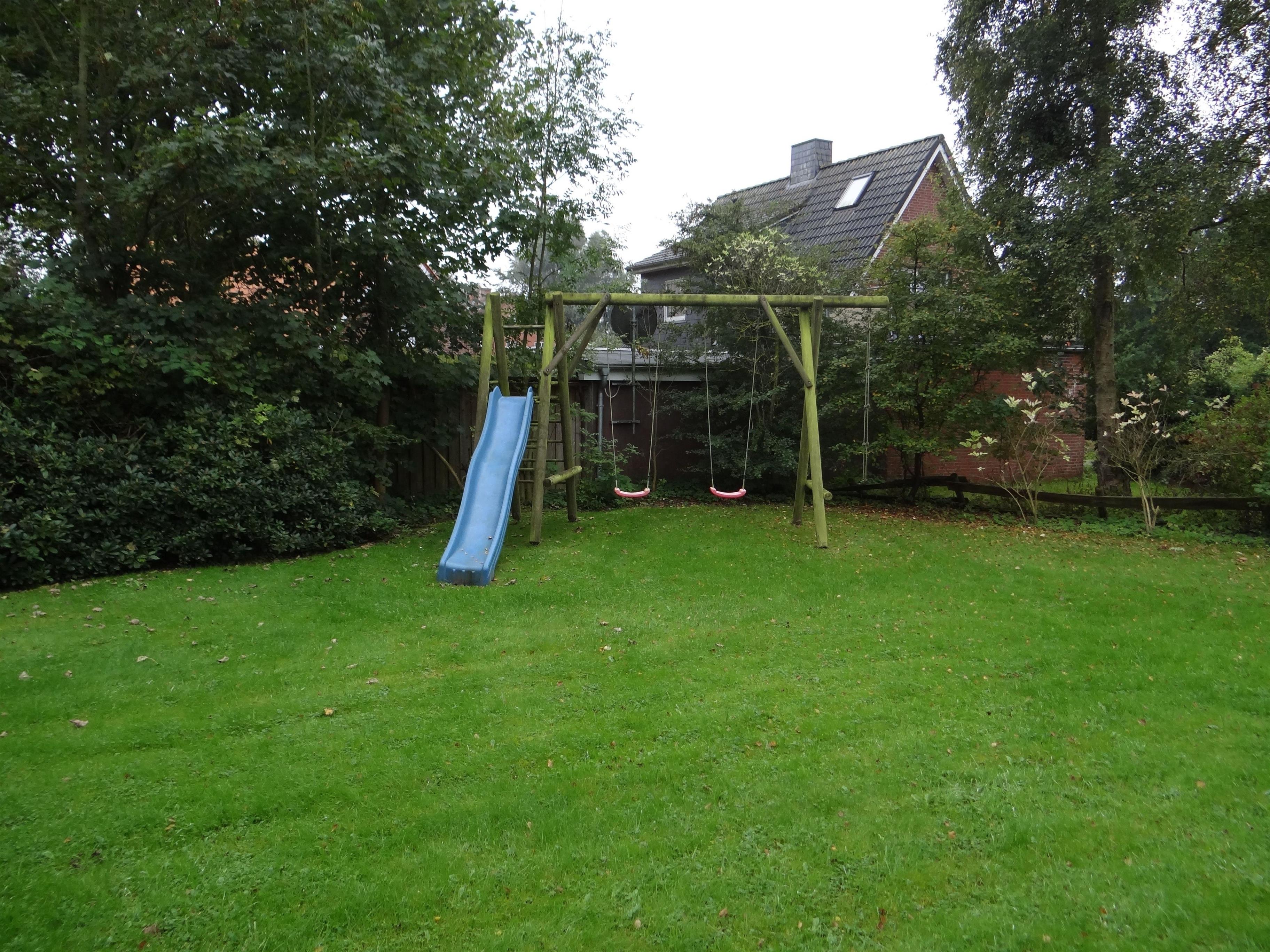 -Garten mit Schaukel und Rutsche