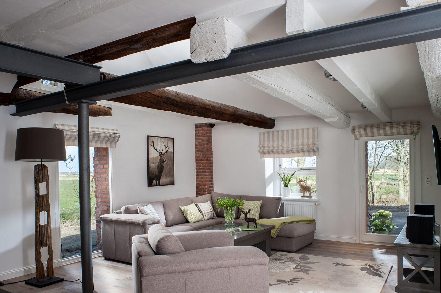 Der liebevoll restaurierte Haubarg Tetenshof bietet modernen Komfort mit besonderer Liebe zum Detail. Die 104 qm große Wohnung ist im charmanten Landhaus-Stil gestaltet. Der großzügige Wohn- und Essbereich lädt zu gemütlichen Stunden mit Freunden und Familie ein.