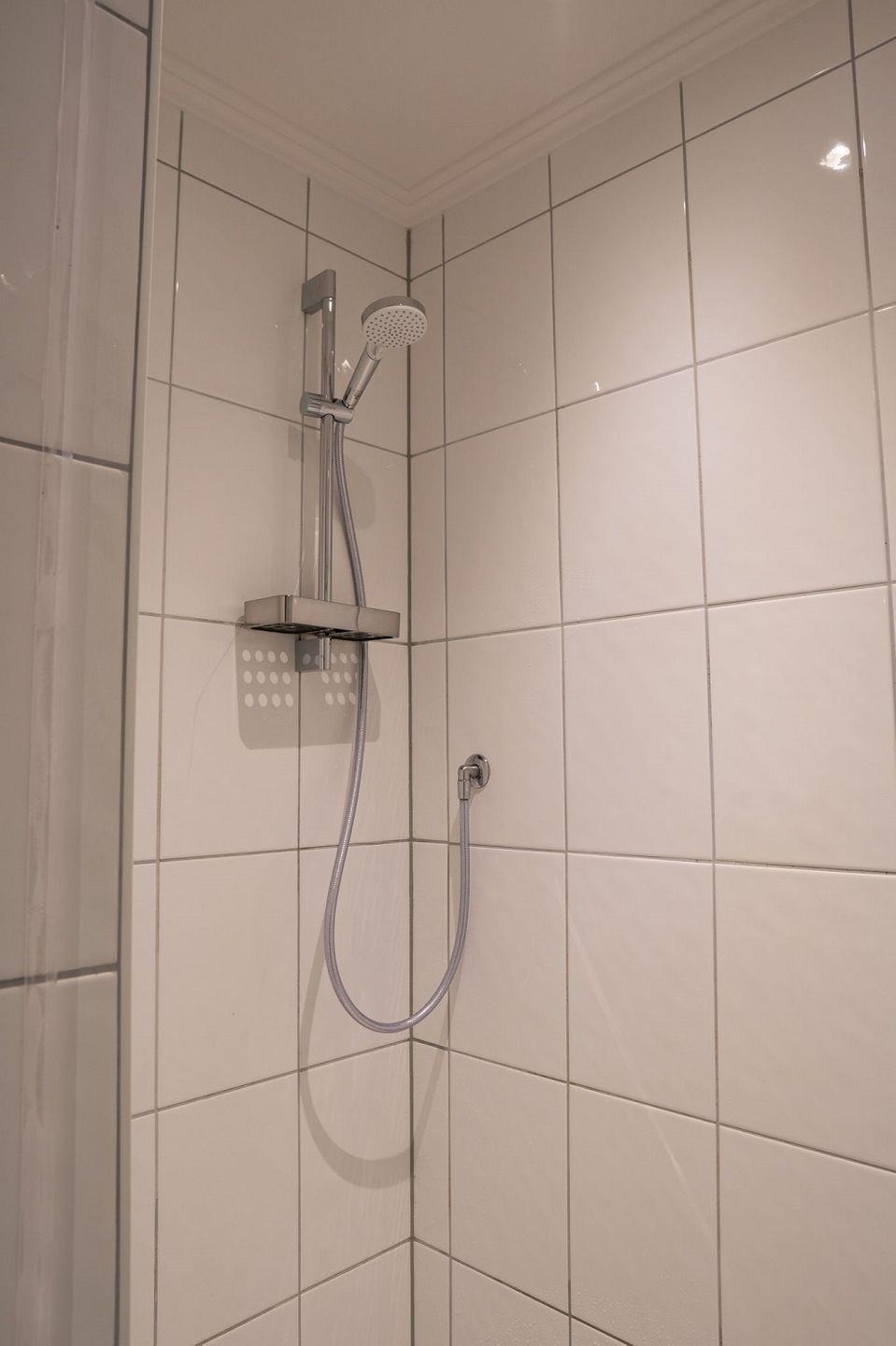 Das zweite Badezimmer befindet sich im Erdgeschoss und hat eine geräumige Dusche.