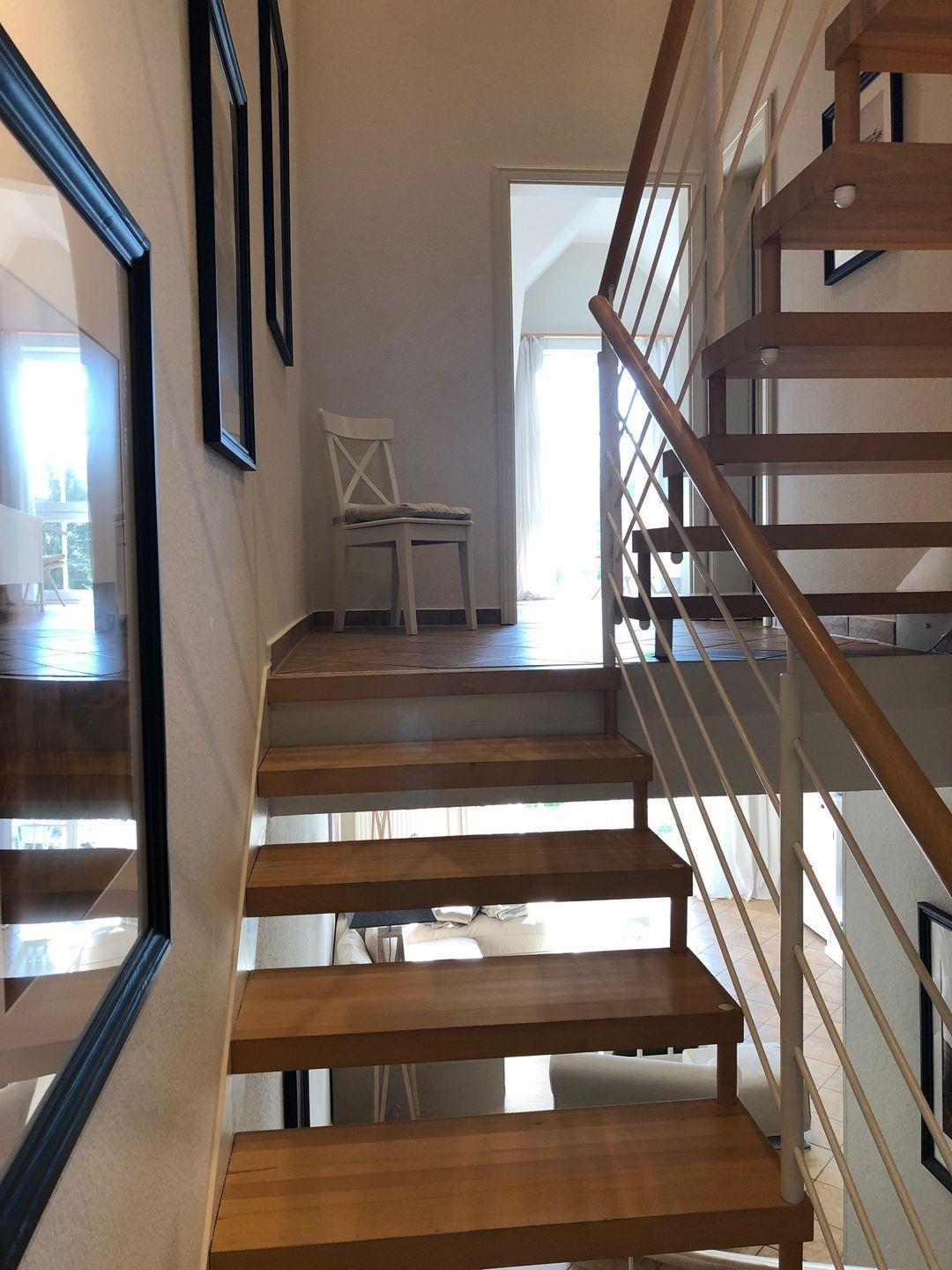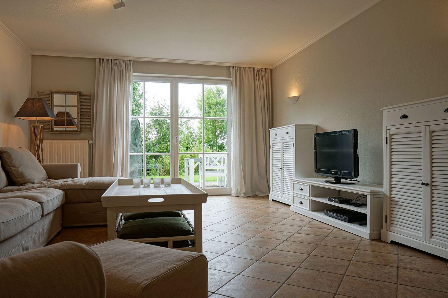 Die Wohnung liegt in ruhiger Lage, hat eine eigene nach Süd-Westen ausgerichtete Gartenterrasse. Ein Kinderspielplatz liegt nur 5 min. zu Fuß entfernt. Die nächste bewachte Badestelle am Meer ist nur 1 km entfernt.