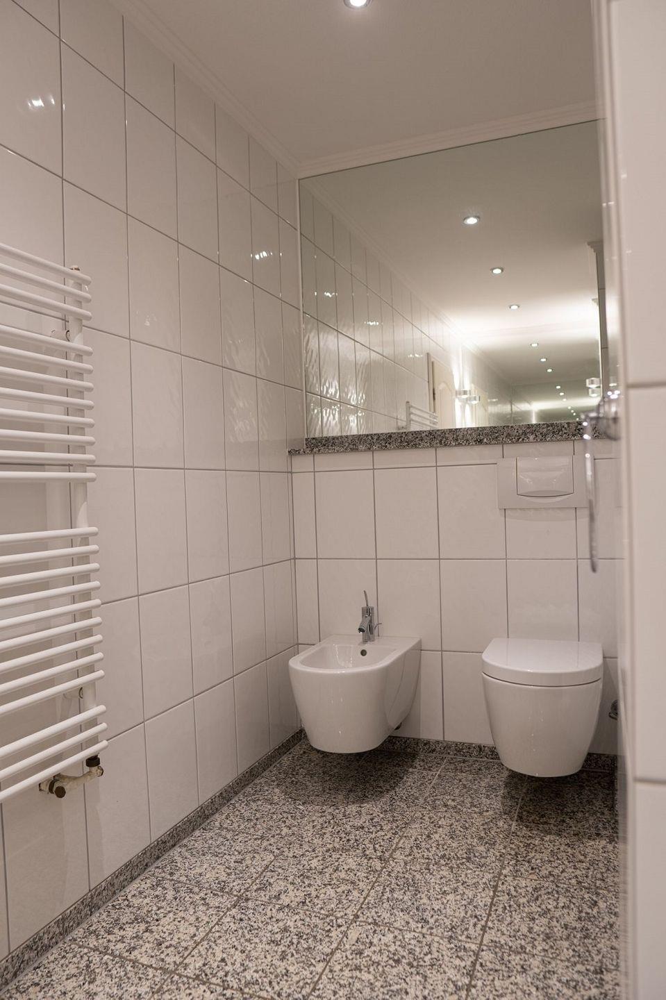 2 Badezimmer: eines liegt direkt am Schlafzimmer an der oberen Etage, verfügt über Badewanne, einer dort integrierten Dusche.
