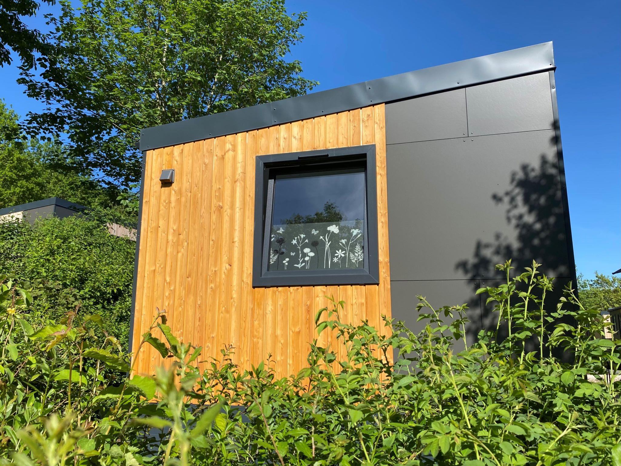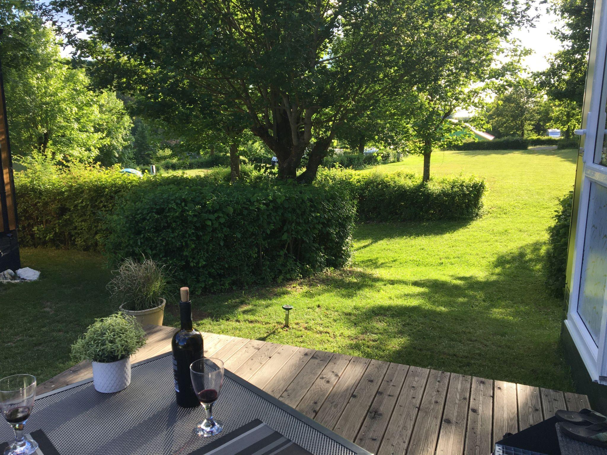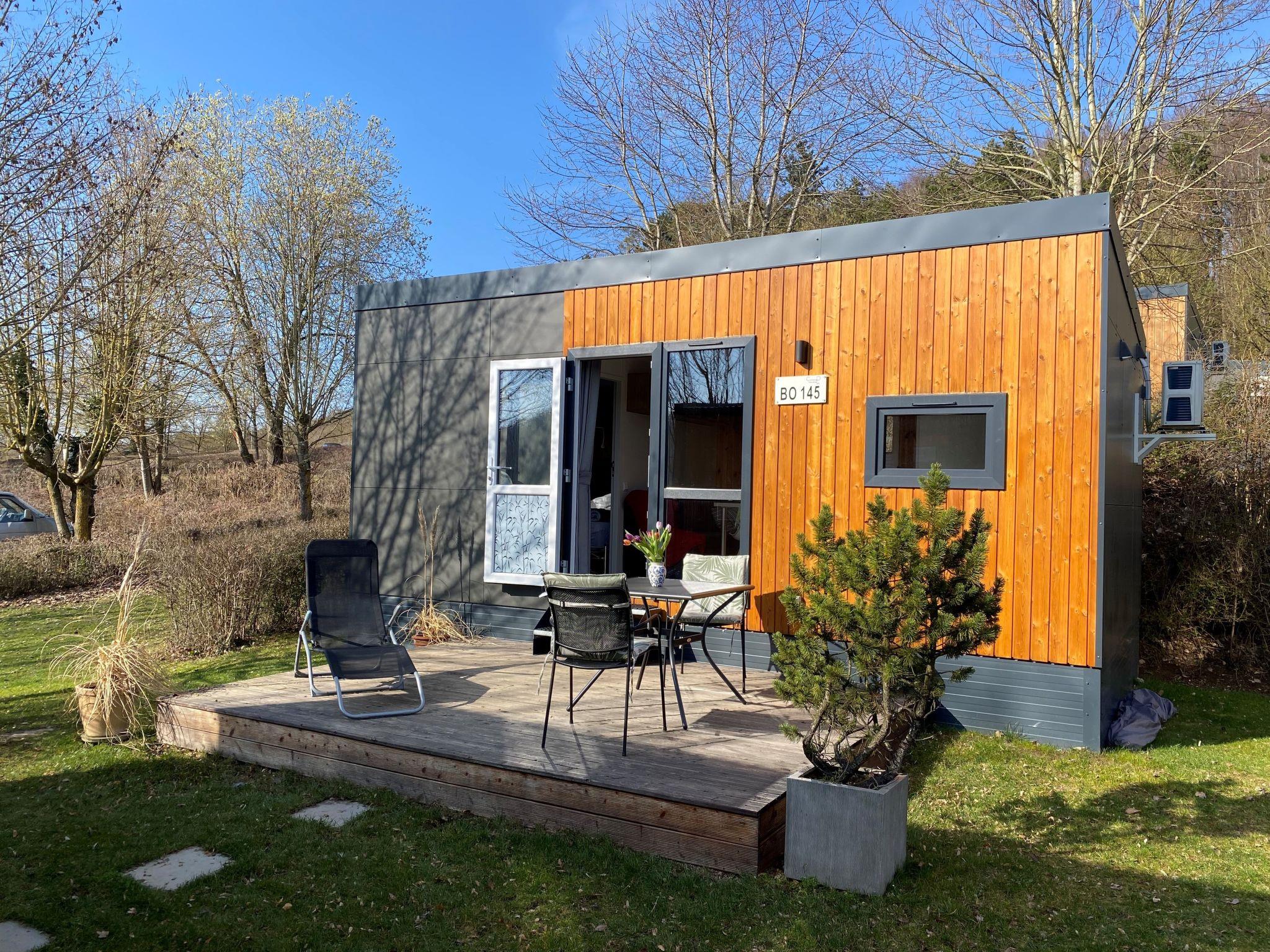 "Tiny Haus Waldsee Lodge", 2-room mobile home 24 m2. Object suitable for 2 adults + 2 children. Cosy furnishings: living/sleeping room with 1 double sofabed and satellite TV. Exit to the terrace. 1 room with 1 french bed (140 cm, length 200 cm). Open kitchen (2 induction hot plates, toaster, kettle, electric coffee machine). Shower/WC. Electric heating, air-conditioning. Terrace furniture, barbecue. ATTENTION: The Wi-Fi connection may be limited depending on capacity.