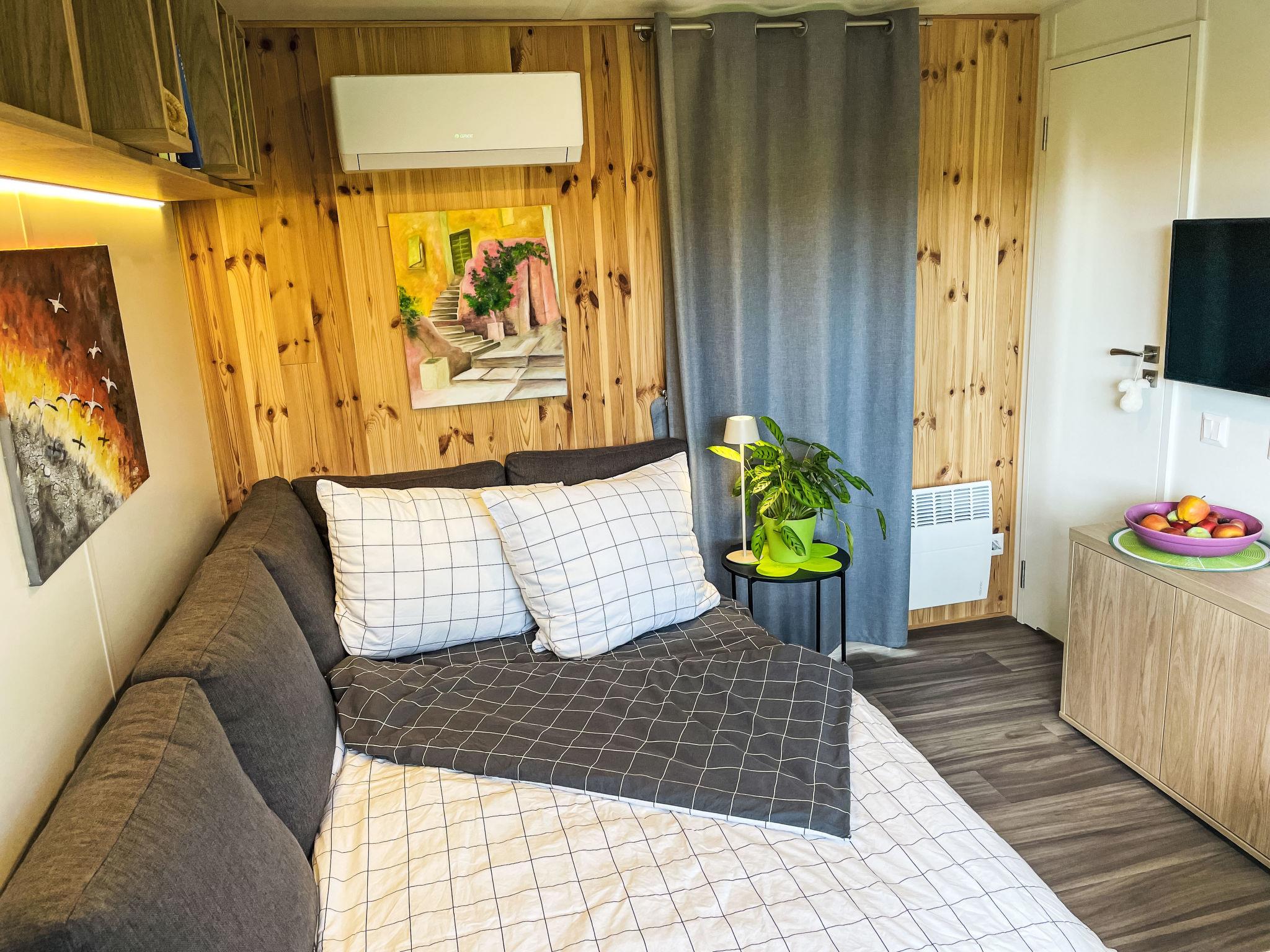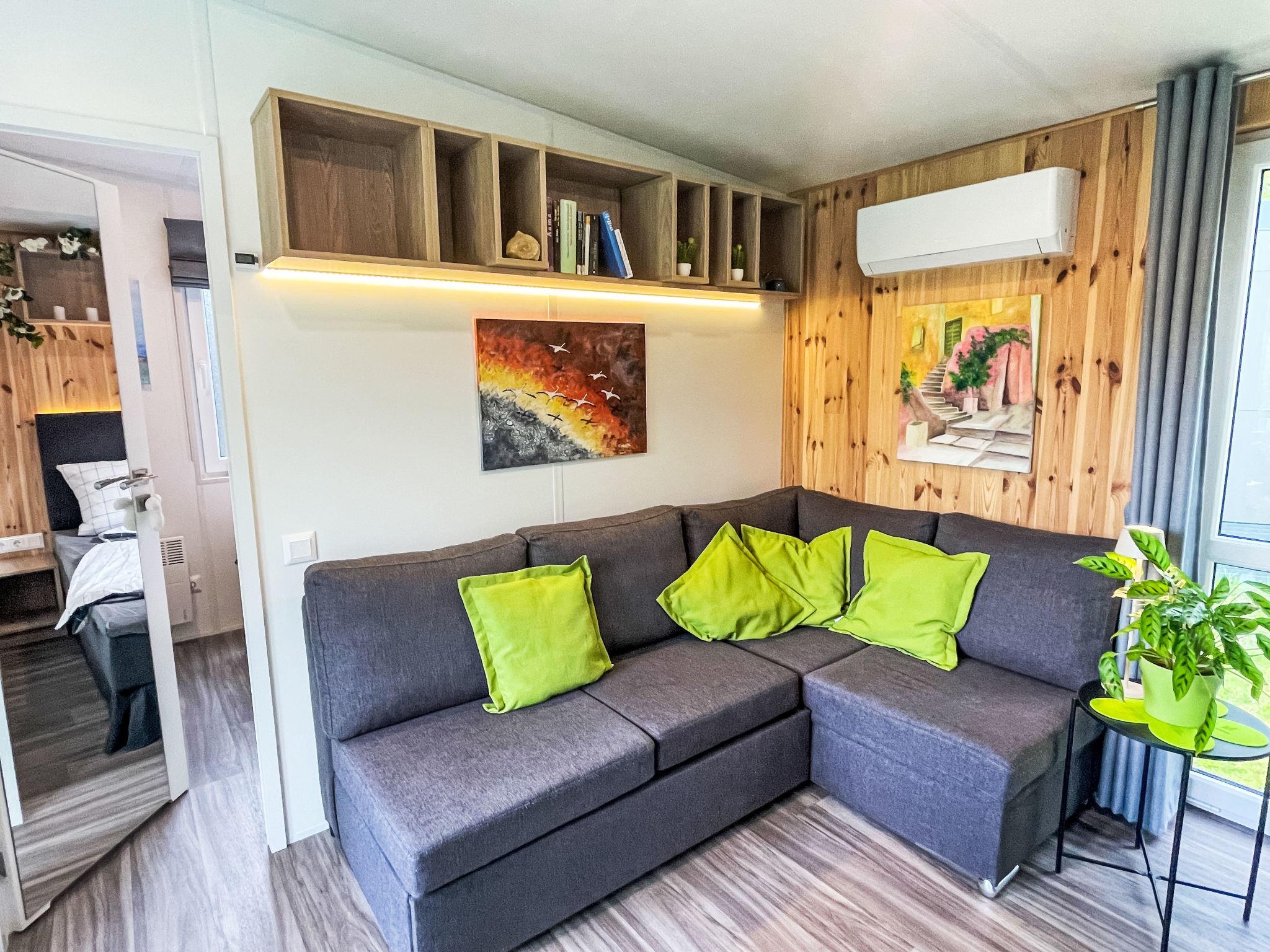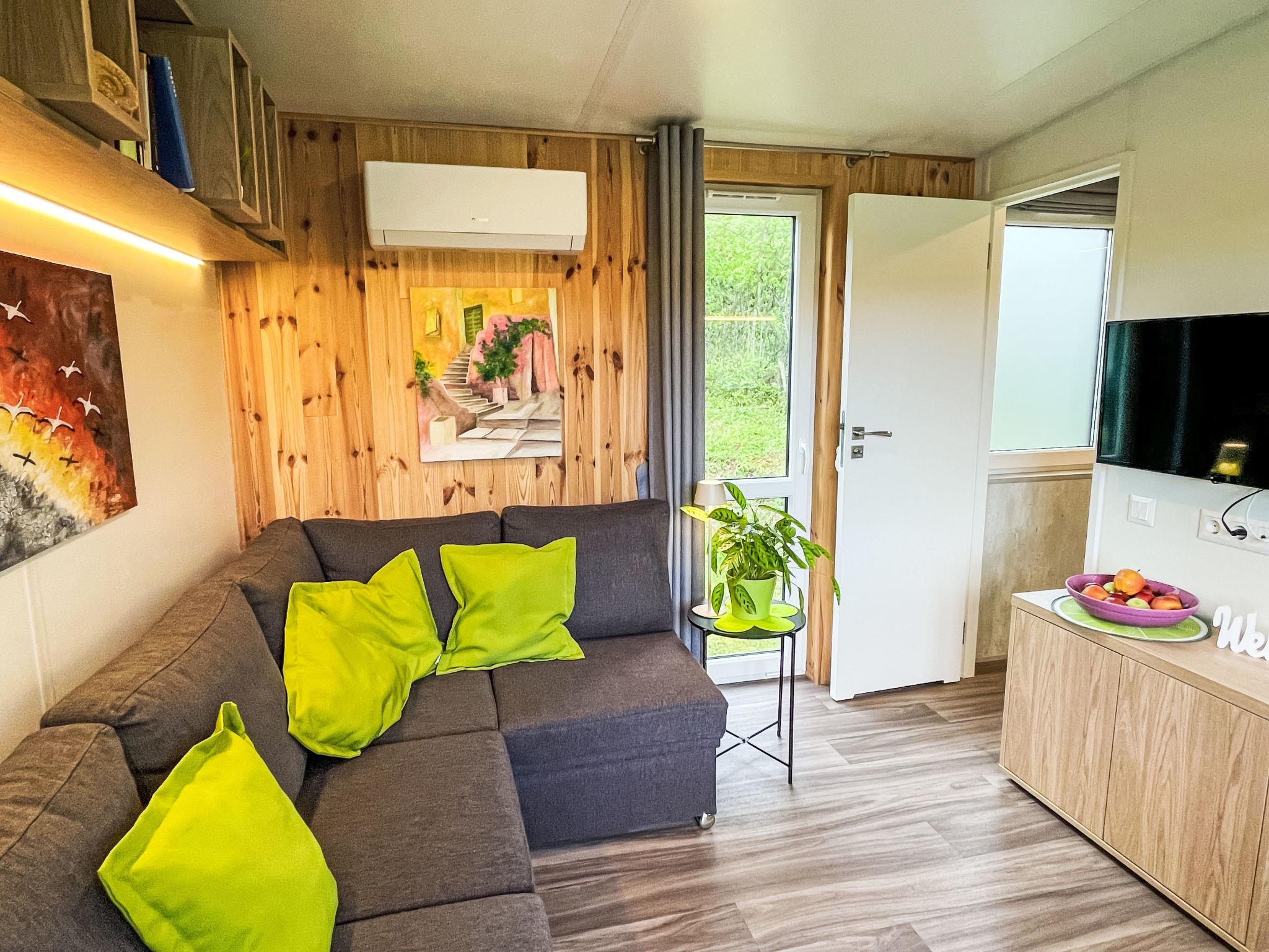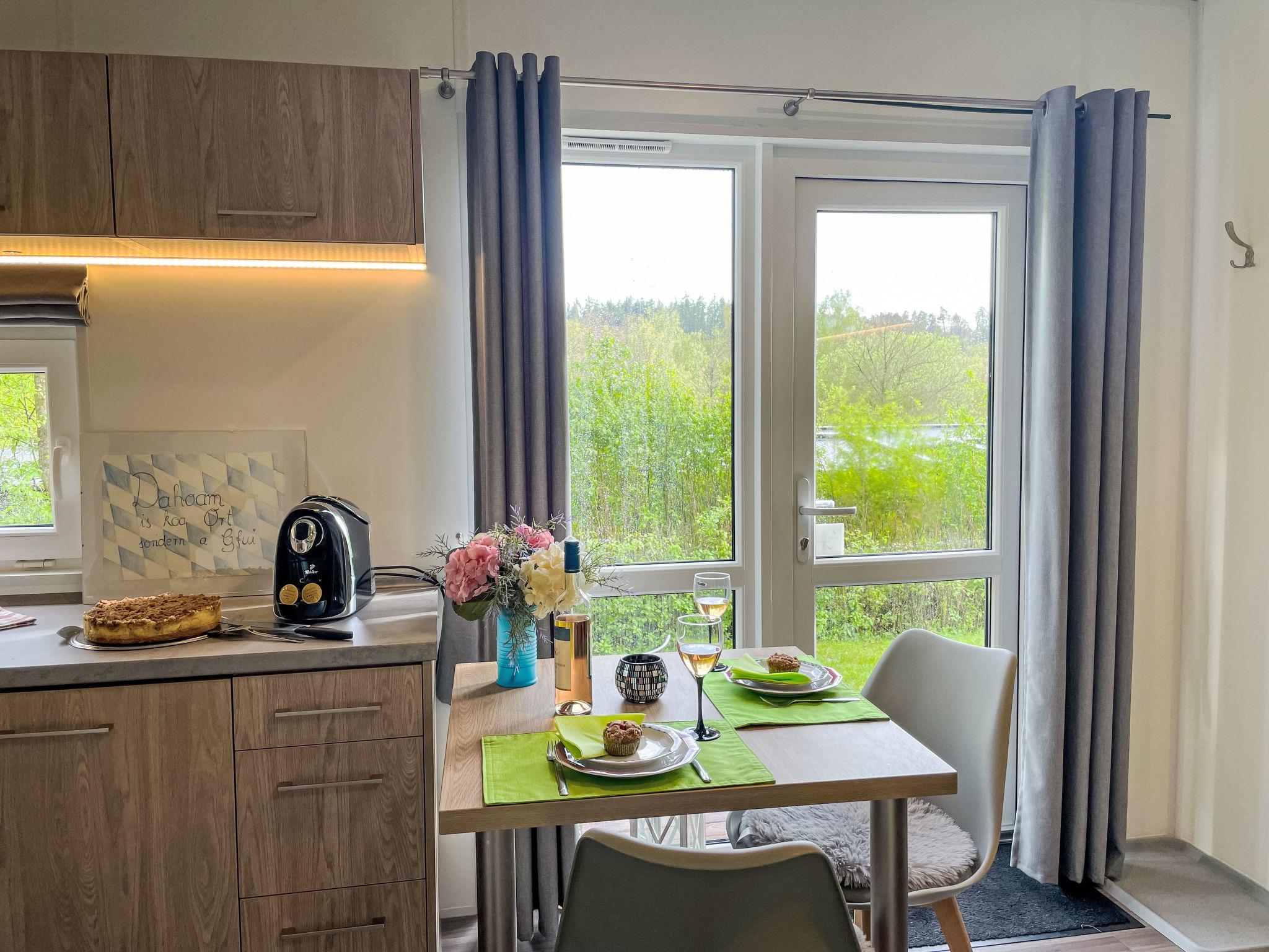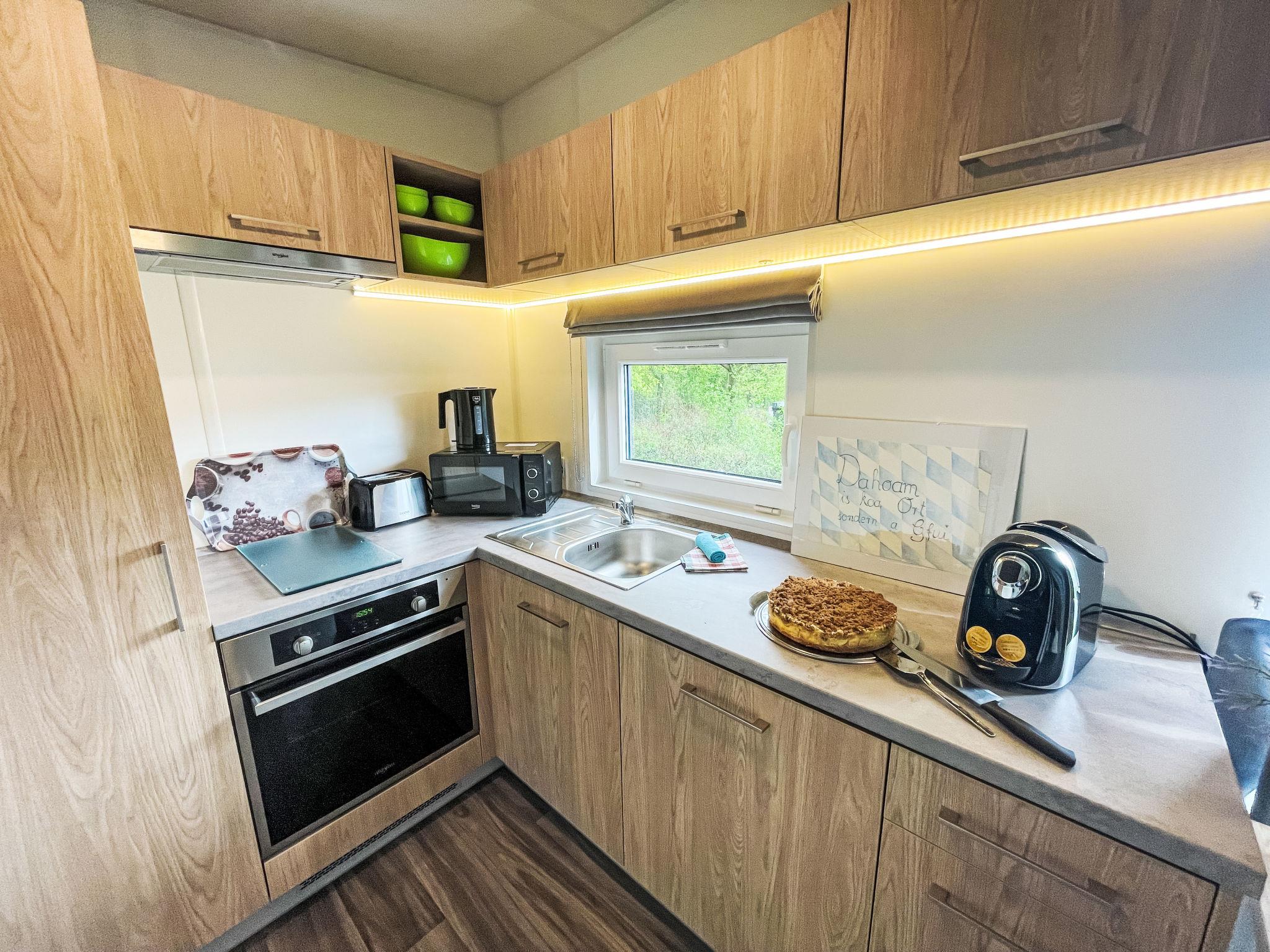 "Tiny Haus Dahoam", 2-room mobile home 25 m2, on the ground floor. Object suitable for 2 adults + 2 children. Cosy furnishings: living/sleeping room with 1 double sofabed and satellite TV. Exit to the terrace. 1 room with 1 french bed (140 cm, length 200 cm). Open kitchen (oven, 2 induction hot plates, toaster, kettle, microwave). Shower/WC. Electric heating, air-conditioning. Terrace. Terrace furniture. Please note: non-smoking house. Maximum 1 pet/ dog allowed. Smoke alarm. ATTENTION: The Wi-Fi connection may be limited depending on capacity.