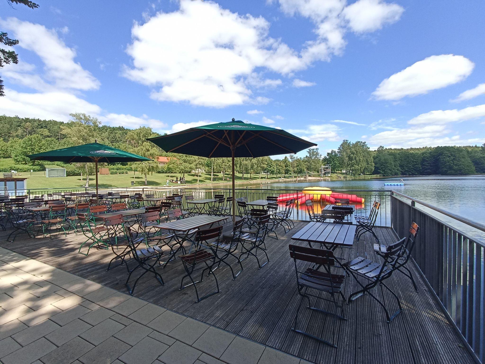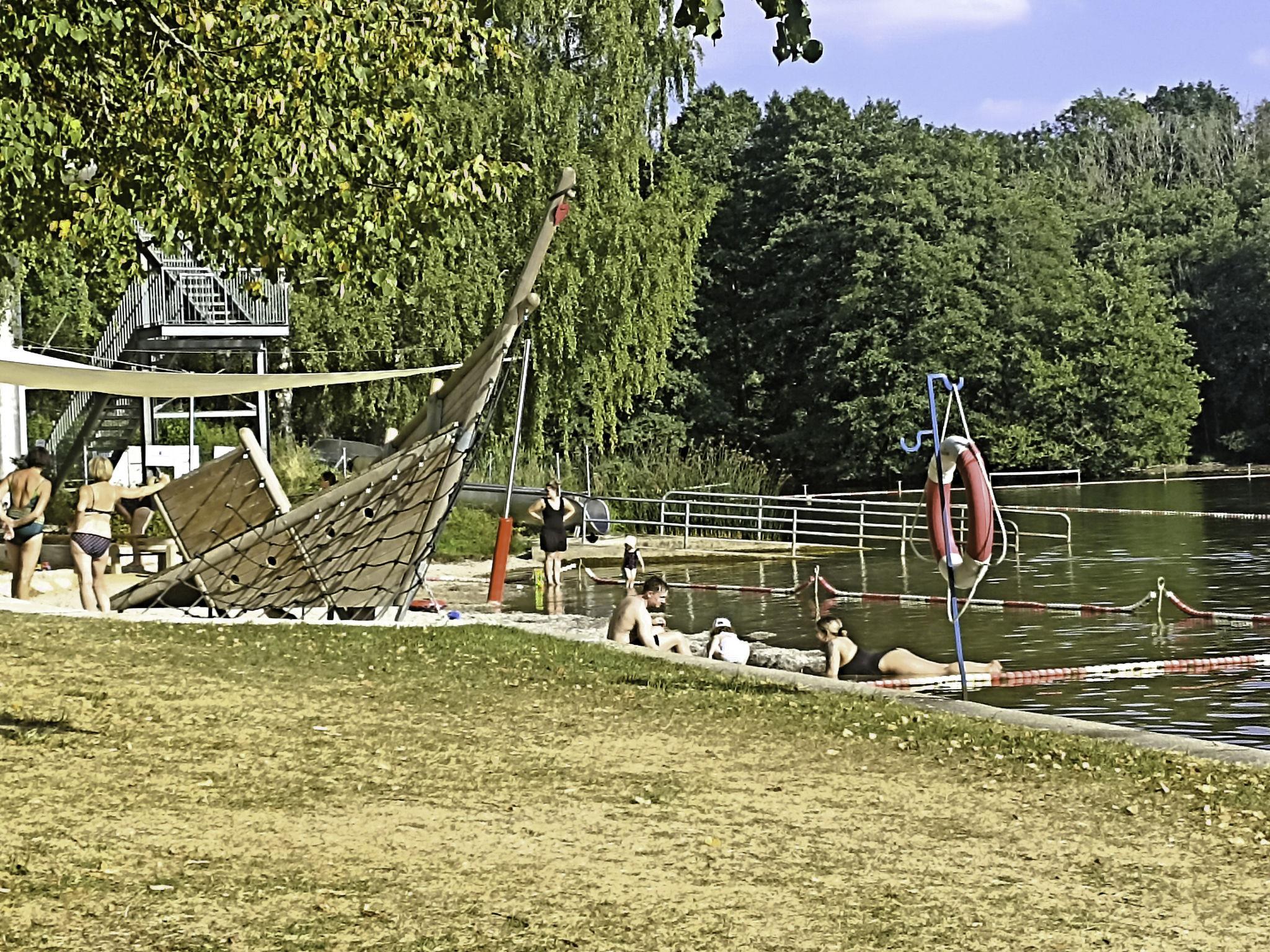 Resort "Campingpark Wemding". 50 houses in the resort. Outside the resort, 2 km from the centre of Wemding, 50 m from the lake. For shared use: slide, outdoor shower, beach volleyball, children's playground, bathing place. In the complex: WiFi, kiosk. 400 m long motor access to the house. Central parking spaces. Supermarket 2 km, restaurant 2 km, bus stop "Johannisgraben-Wemding" 2.2 km, railway station "Nördlingen" 20 km, thermal baths "Treuchtlingen" 21 km. Tennis 1 km, minigolf 50 m, riding stable 1 km, ice rink 500 m. Nearby attractions: Nördlingen / Rieskrater-Museum 19 km, Dinkelsbühl 43 km, Legoland Günzburg 80 km, Playmobil-FunPark bei Nürnberg 100 km, Augsburg 70 km, München 130 km. Well-known lakes can easily be reached: Altmühlsee 35 km, Brombachsee 40 km. Please note: suitable for families. Residence with electric gates. Access to the house only possible between 7 am and 10 pm. Dogs are not allowed on the beach and sunbathing lawn. Kiosk only open from mid may to mid september.