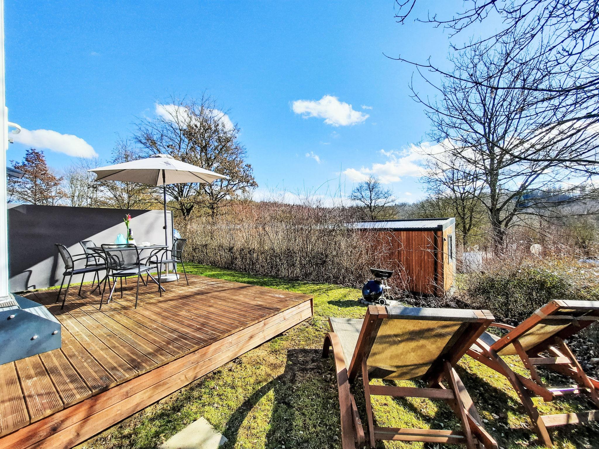 "Tiny Haus Seeperle", 2-room mobile home 25 m2. Object suitable for 2 adults + 2 children. Cosy furnishings: living/sleeping room with 1 double sofabed and satellite TV. Exit to the terrace. 1 room with 1 french bed (140 cm, length 200 cm). Open kitchen (oven, 2 induction hot plates, toaster, kettle, microwave, electric coffee machine). Shower/WC. Electric heating, air-conditioning. Terrace furniture, barbecue. Facilities: hair dryer. Parking at the house. Maximum 1 pet/ dog allowed. ATTENTION: The WiFi connection may be limited depending on capacity. Private parking space near the house, approx. 30 m.