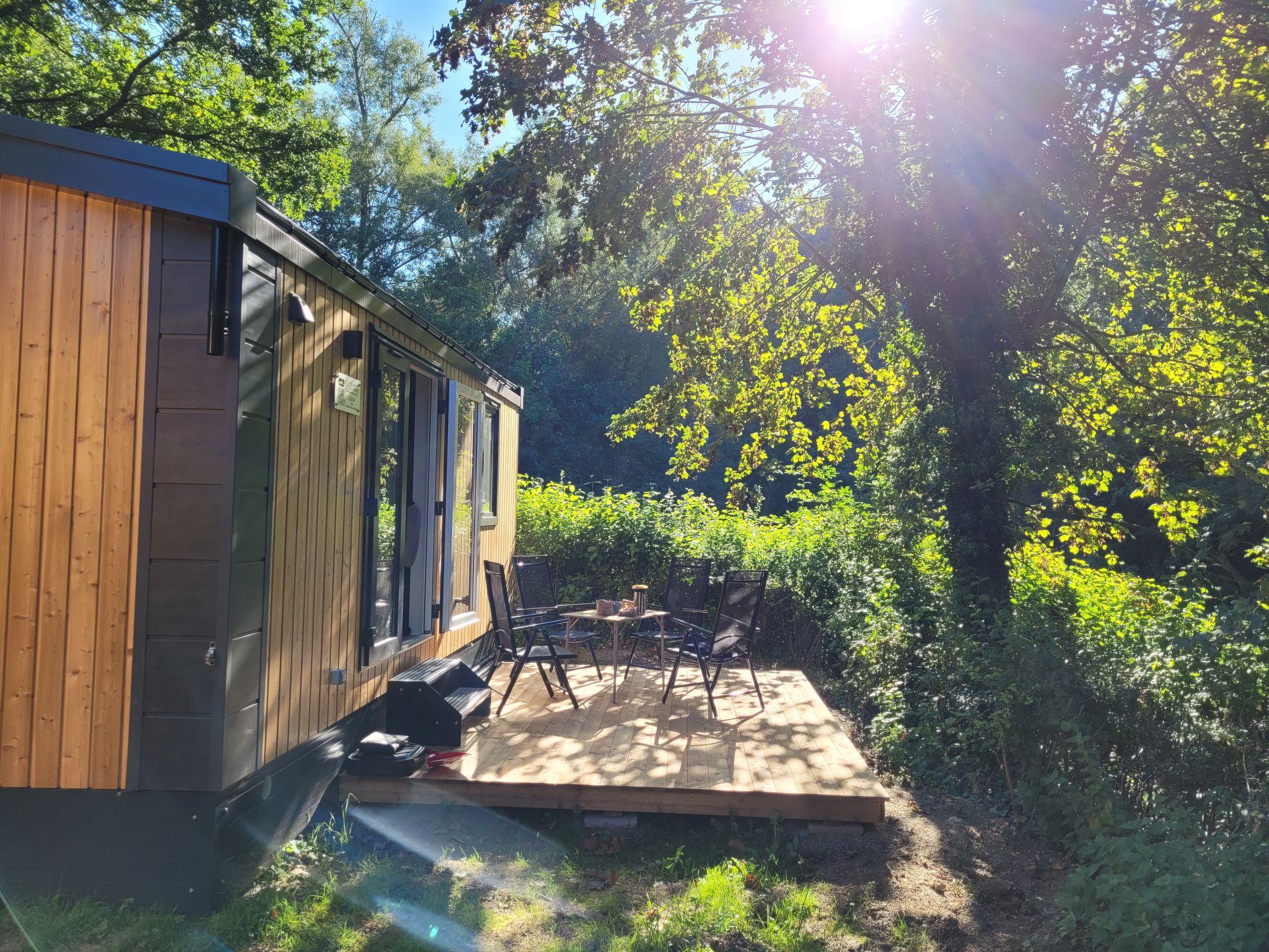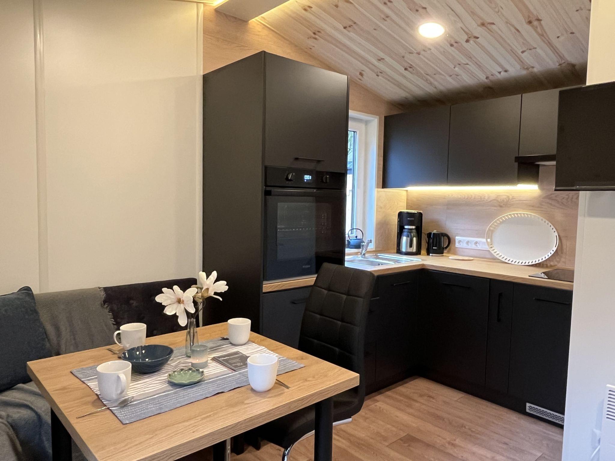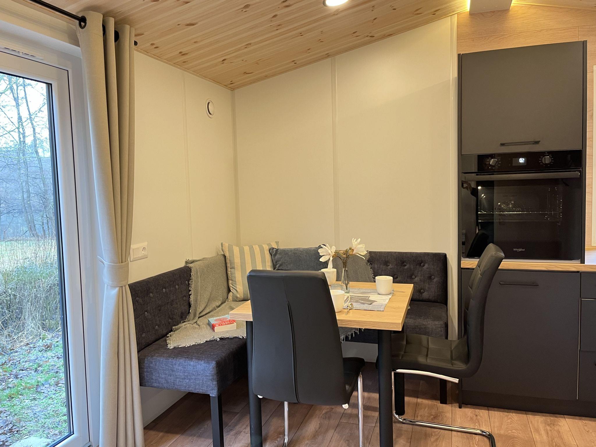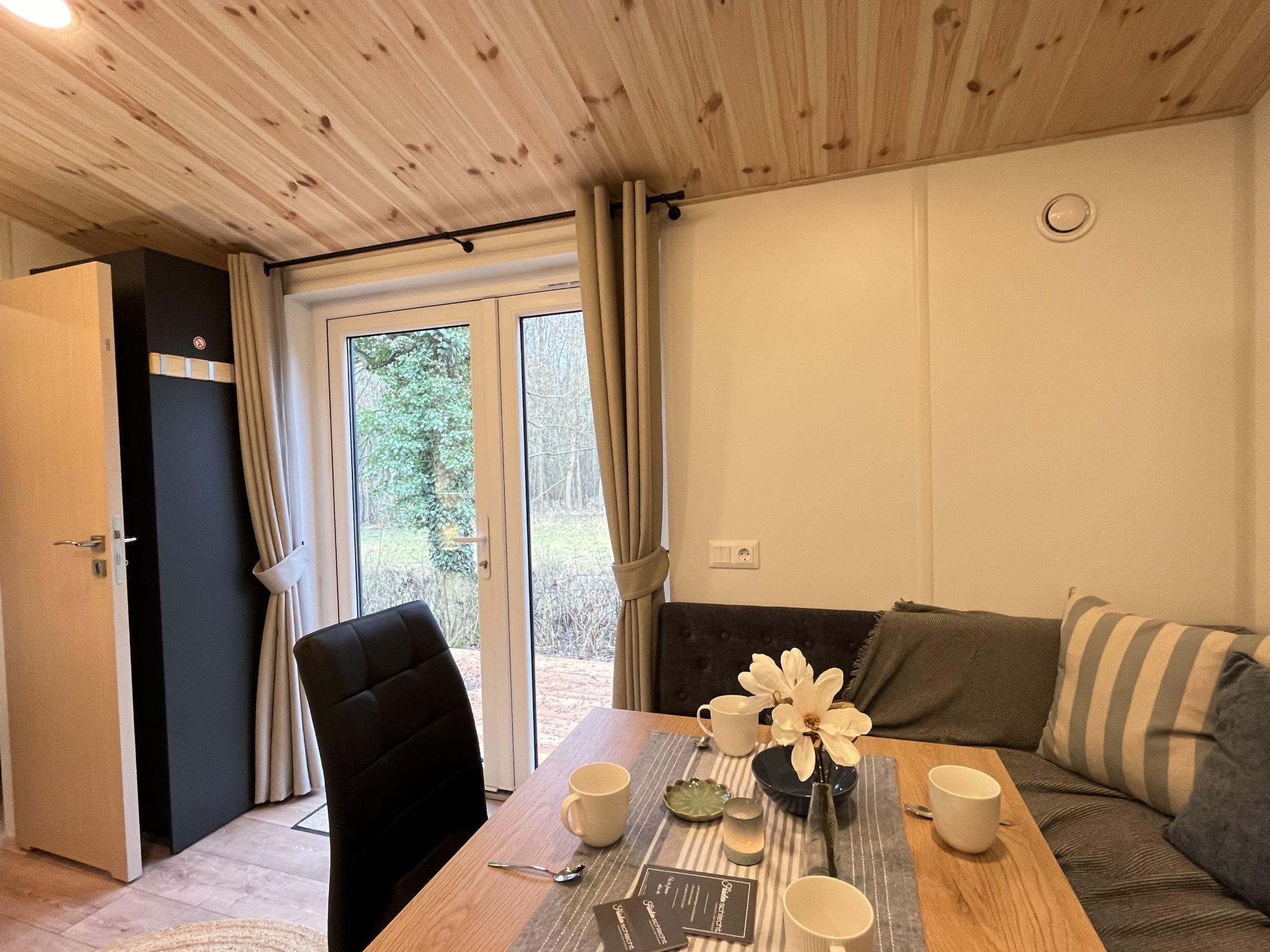 "Tiny Haus Soul & Forest", 3-room mobile home 29 m2. Cosy furnishings: living/dining room with satellite TV (flat screen). Exit to the terrace. 1 room with 1 double bed (140 cm, length 200 cm). 1 room with 2 beds (80 cm, length 200 cm). Kitchenette (oven, dishwasher, 2 induction hot plates, kettle, electric coffee machine). Shower/WC. Terrace. Terrace furniture, electric barbecue (portable). Facilities: Internet (WiFi, free). Please note: non-smokers only. Smoke alarm, fire extinguisher. The house is located right next to DE8834.200.4. Note: The WiFi connection may be limited depending on capacity.