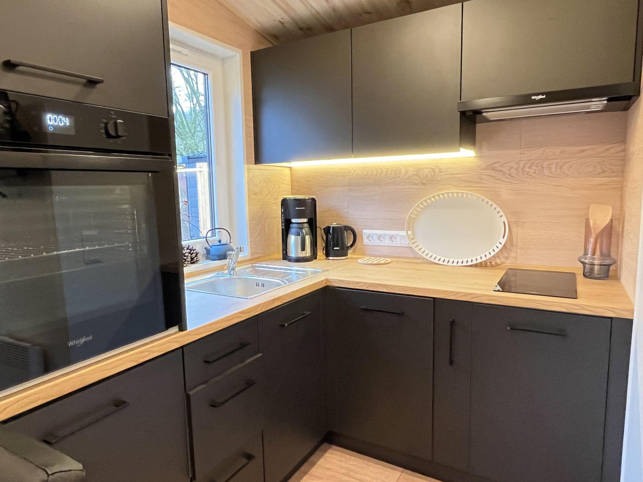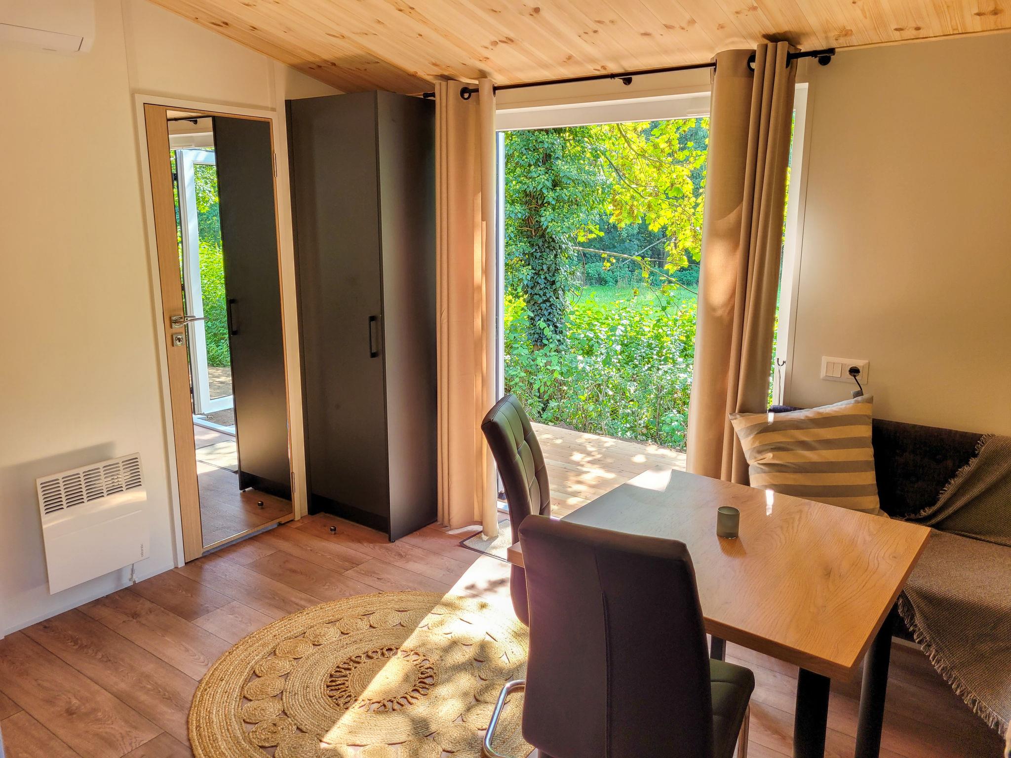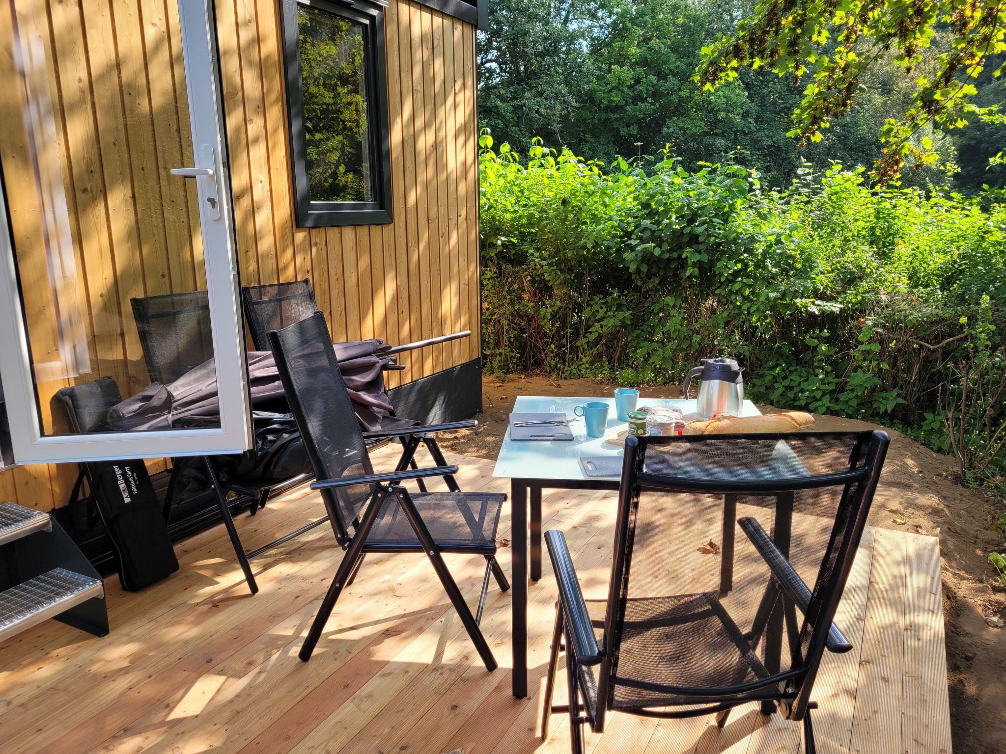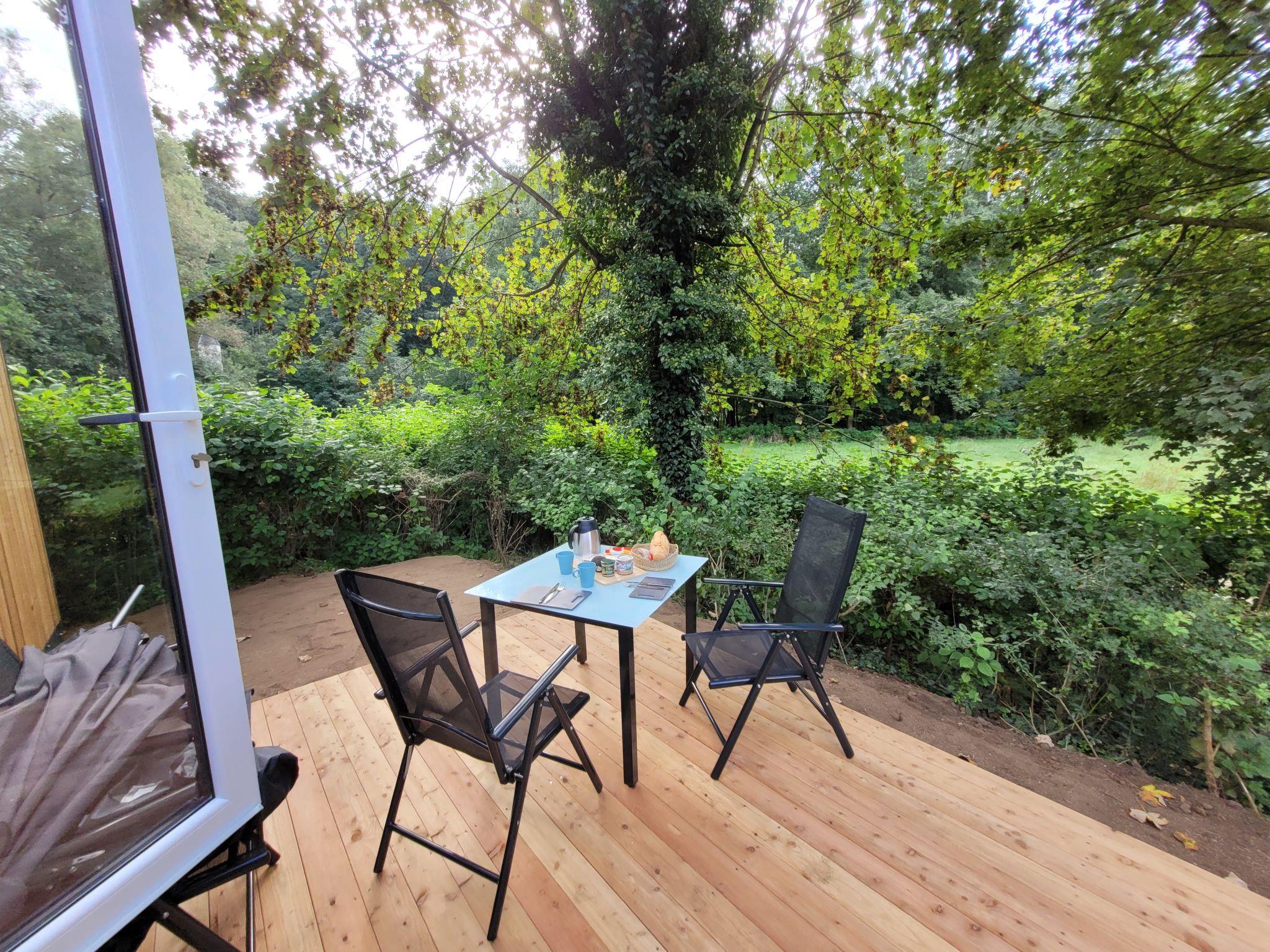 "Tiny Haus Soul & Forest", 3-room mobile home 29 m2. Cosy furnishings: living/dining room with satellite TV (flat screen). Exit to the terrace. 1 room with 1 double bed (140 cm, length 200 cm). 1 room with 2 beds (80 cm, length 200 cm). Kitchenette (oven, dishwasher, 2 induction hot plates, kettle, electric coffee machine). Shower/WC. Terrace. Terrace furniture, electric barbecue (portable). Facilities: Internet (WiFi, free). Please note: non-smokers only. Smoke alarm, fire extinguisher. The house is located right next to DE8834.200.4. Note: The WiFi connection may be limited depending on capacity.