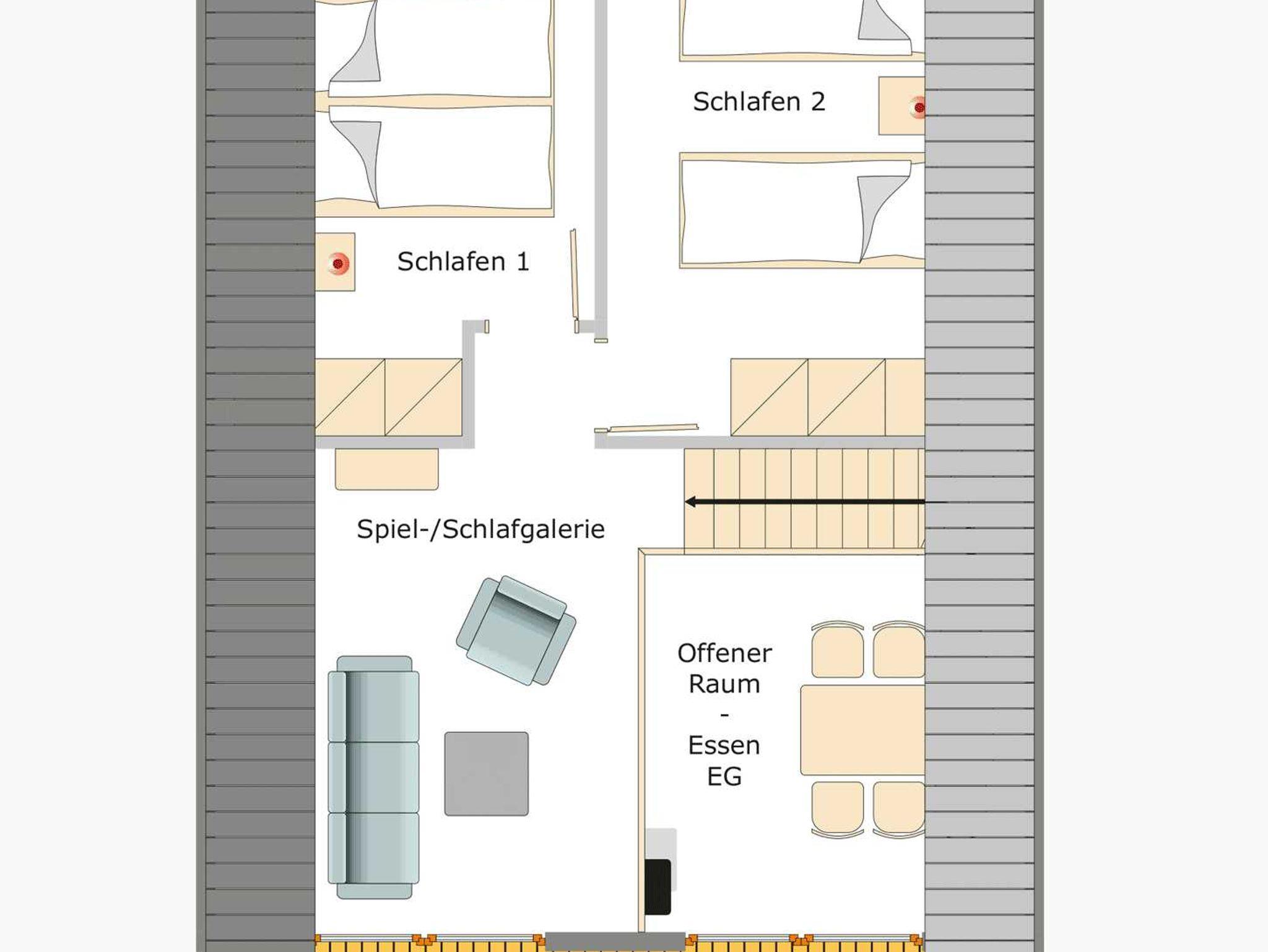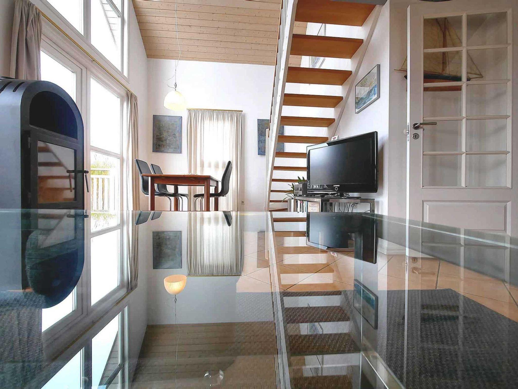 Die Besonderheit dieses Ferienhaus-Typs Pirat ist die Lage direkt am Hafen mit Wasserterrasse, die man durch den Wohnraum erreicht. Mit 70 m² auf zwei Ebenen finden 4 Personen reichlich Platz.