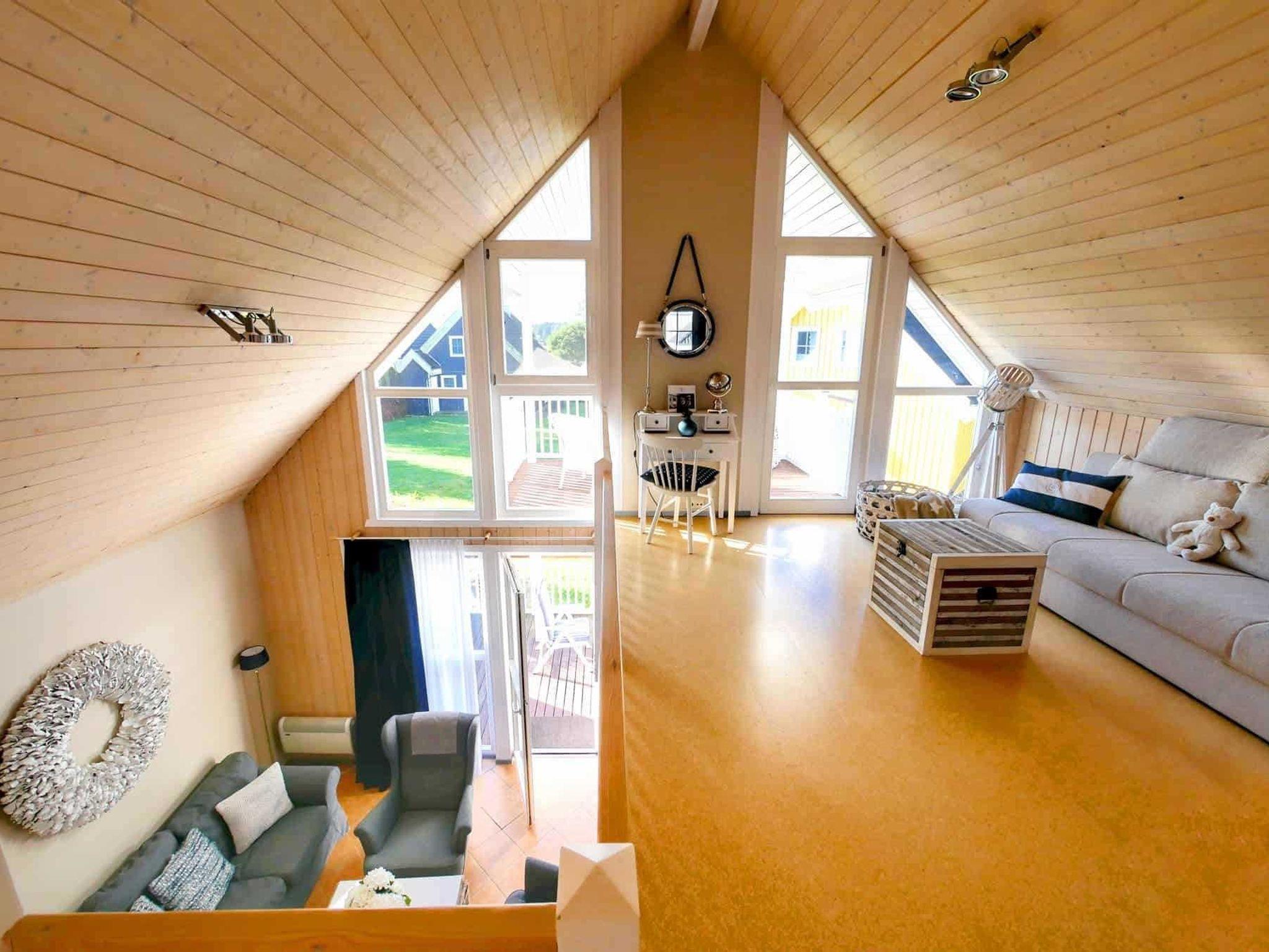 Auf einer Halbinsel im Hafen liegen diese Doppelhaus-Typen mit 98 m² Wohnfläche für 6 Personen auf zwei Ebenen. Mit 3 Schlafzimmern, einer offenen Galerie mit gemütlicher Sitzecke und 2 Bädern bietet dieses Haus viel Platz und Flexibilität. Große Fenster und eine offene Raumgestaltung sorgen für ein helles und großzügiges Wohngefühl. Die Terrasse führt direkt auf das Gartengrundstück und von der Galerie aus haben Sie einen direkten Zugang zum Balkon.