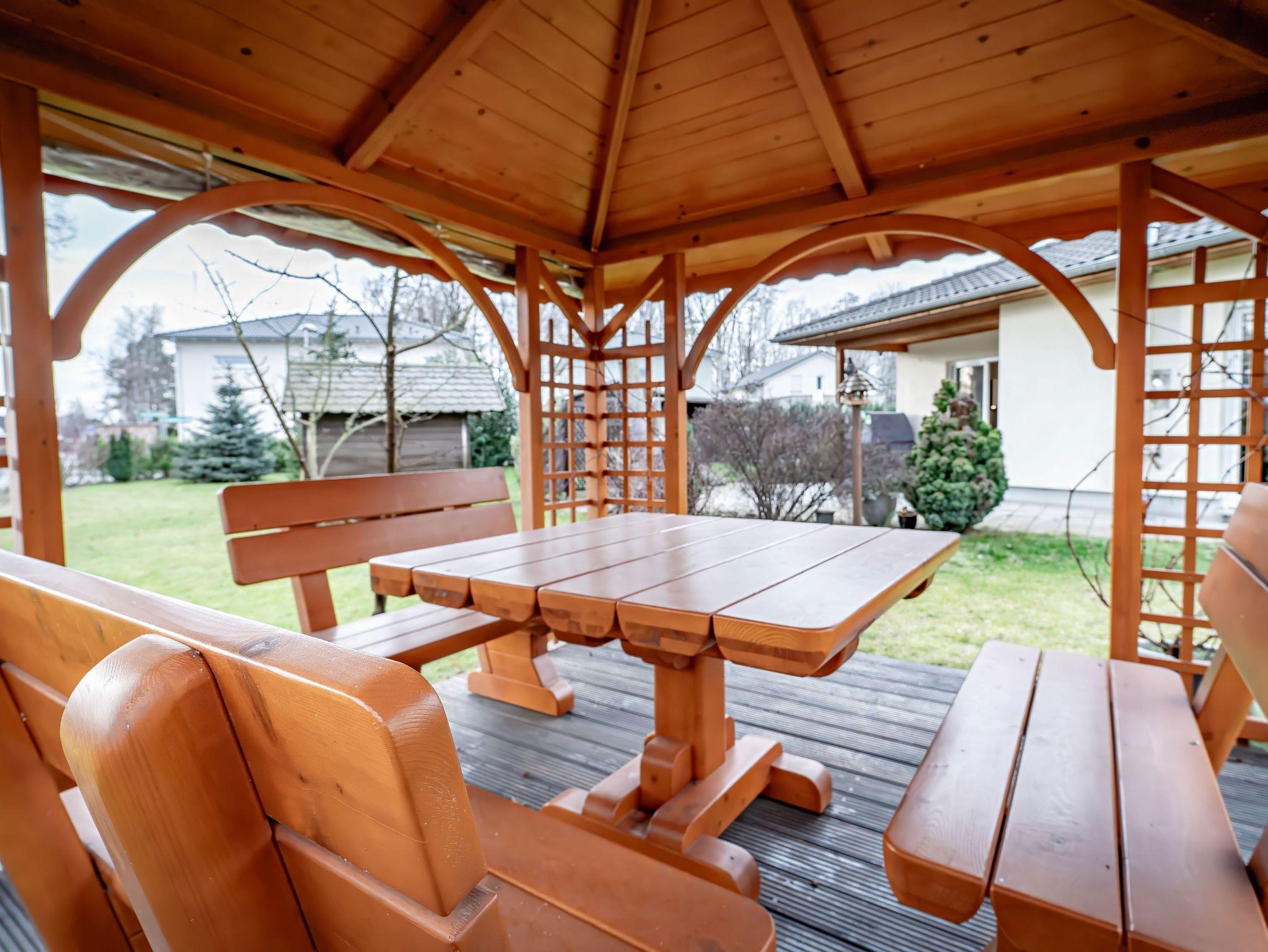 • Überdachter Holz-Pavillon im Garten für gesellige Stunden