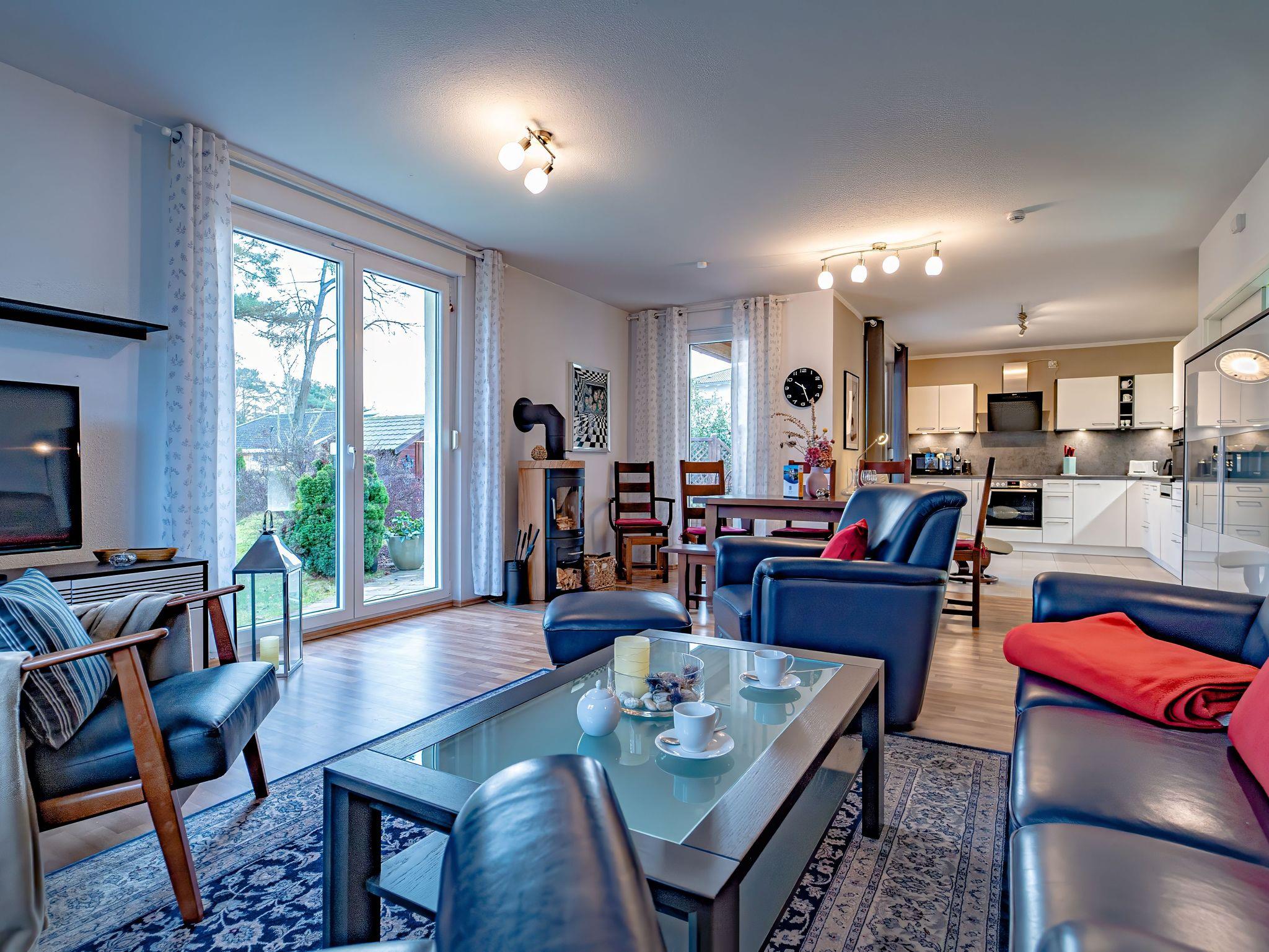 • Wohnzimmer mit Sitzgarnitur und Couchtisch und Essbereich