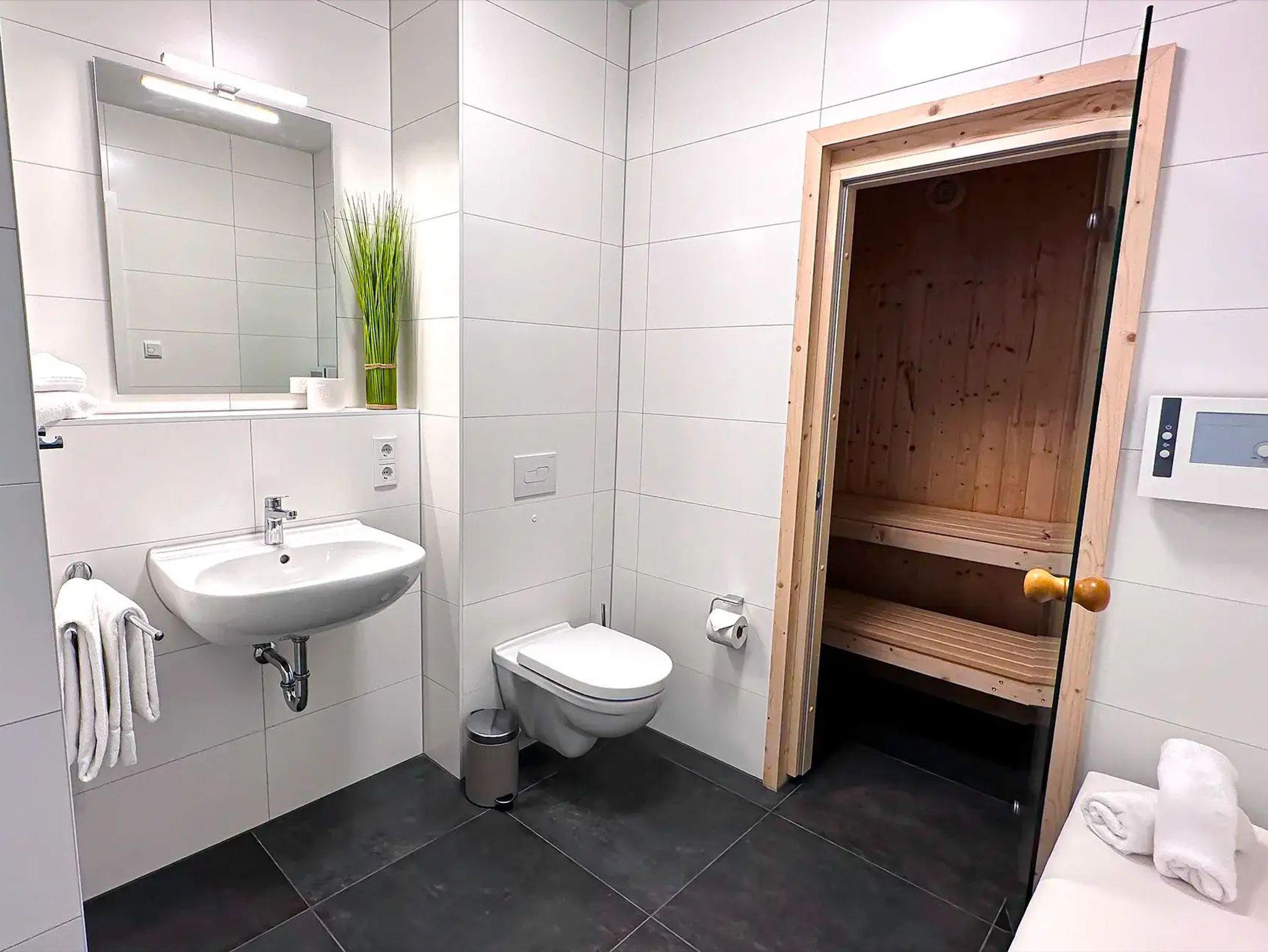 • Bad mit Sauna, Dusche und WC