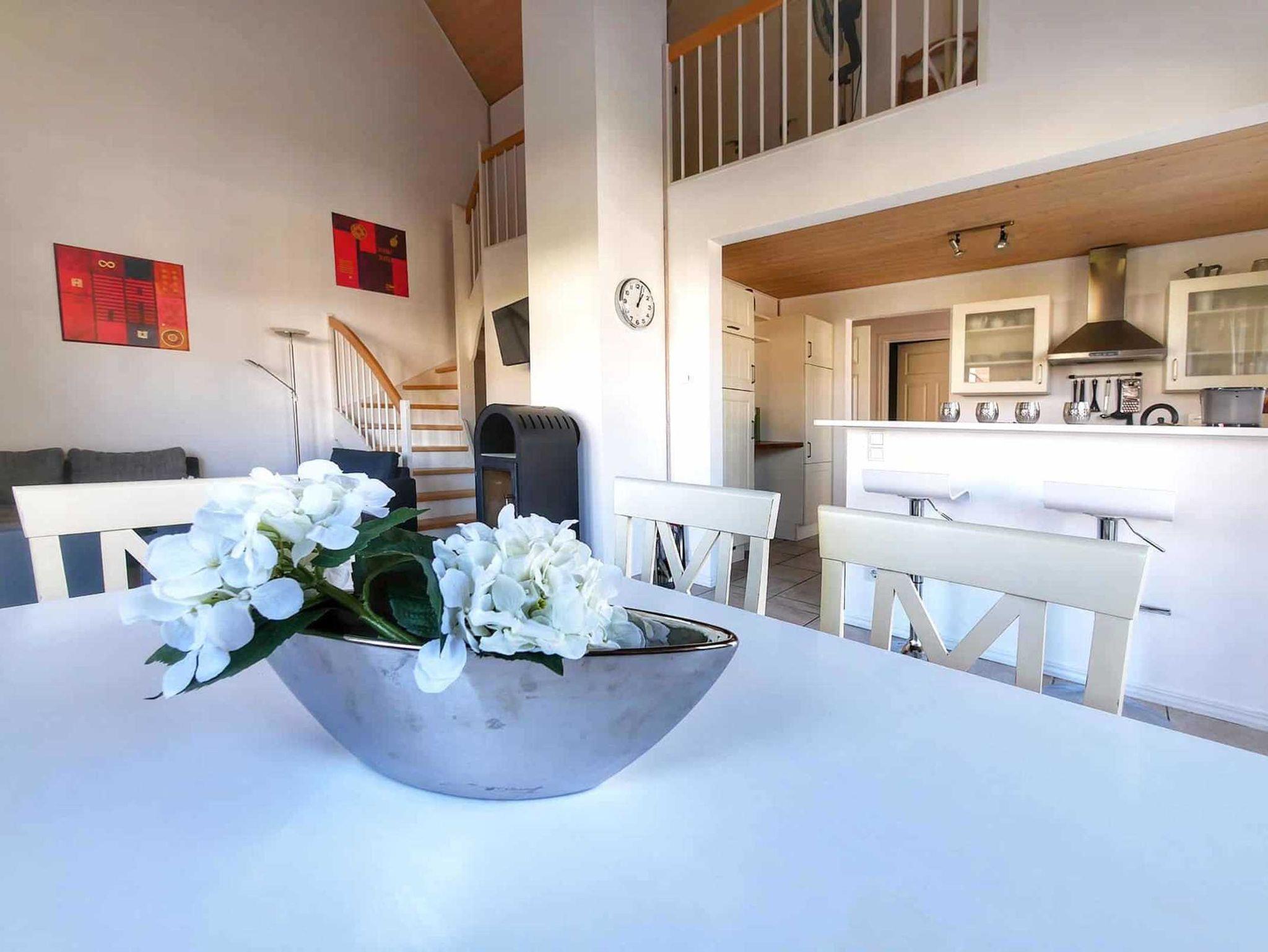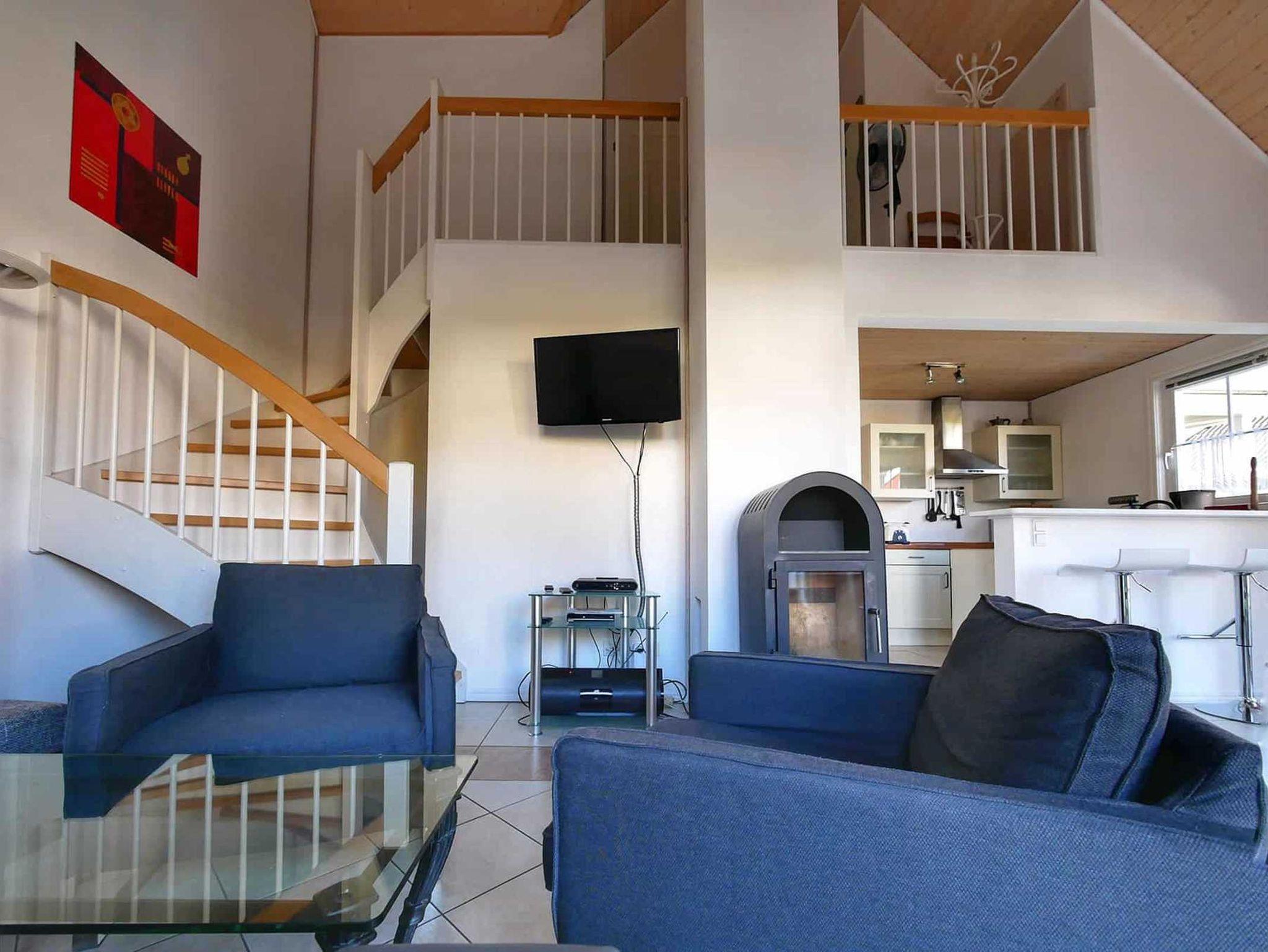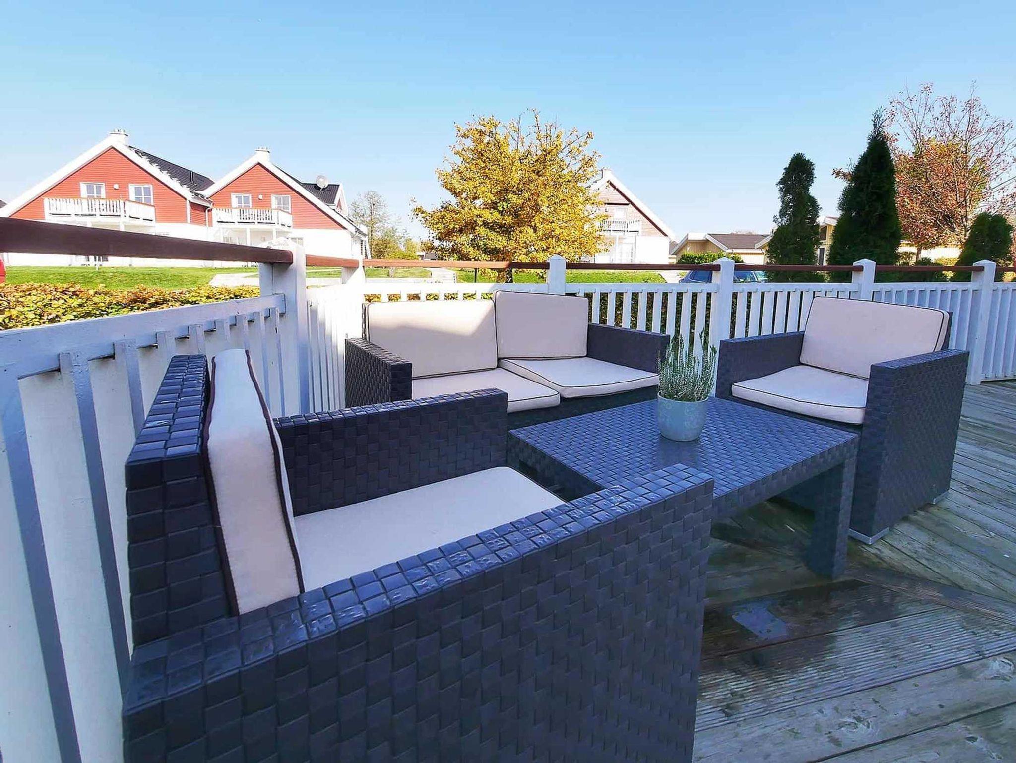 Das Ferienhaus besteht aus jeweils 4 Apartments. Das zweietagige Ferienhaus Kajüte bietet auf ca. 80m² Platz für 4 Personen mit 2 Schlafzimmern, Whirlpool und Sauna. Von einem der Schlafzimmer ist der Balkon zu erreichen.