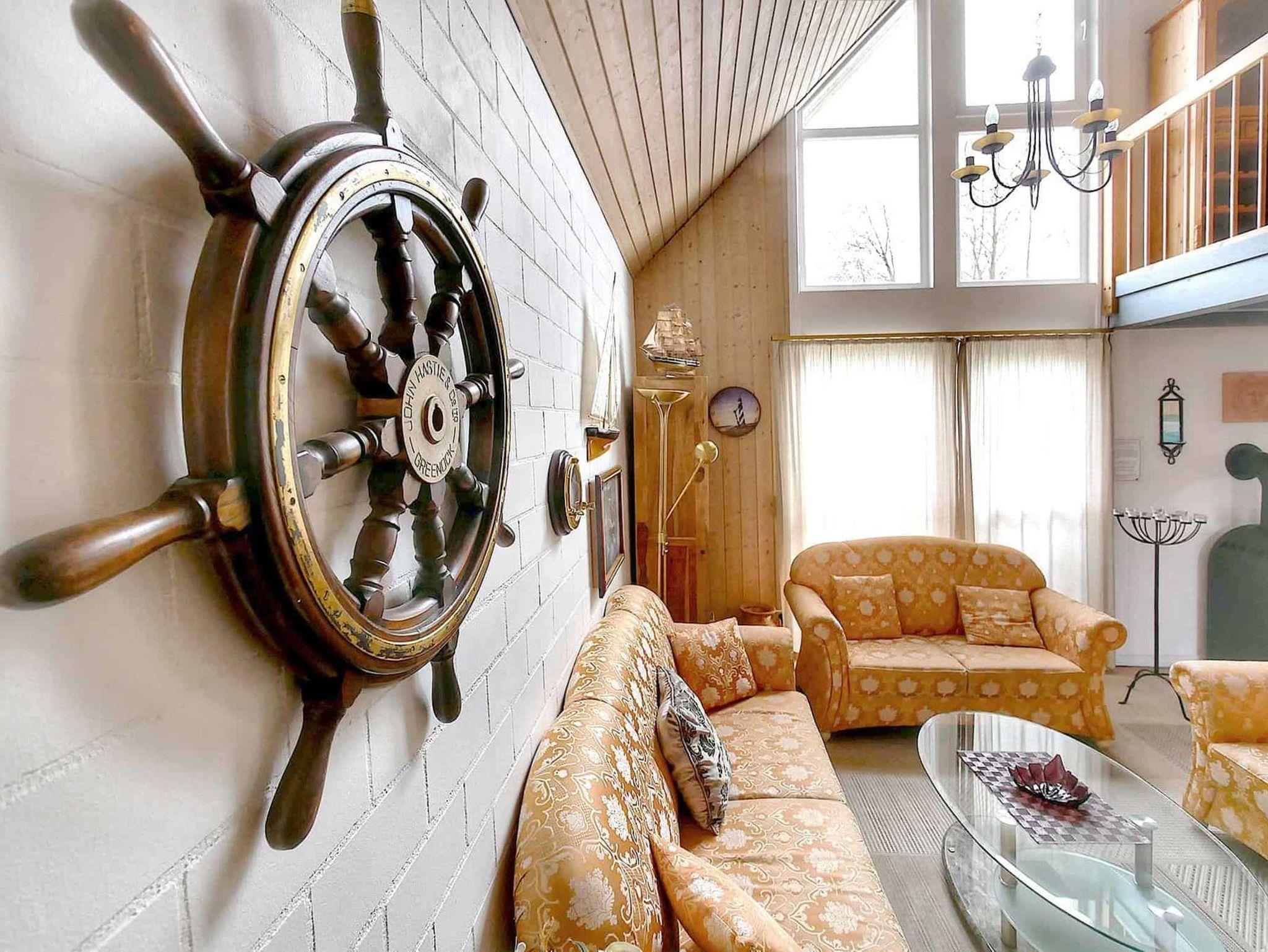 Die Apartment-Häuser bestehen aus jeweils 4 Einzel-Apartments. Unser Störtebeker befindet sich im oberen Geschoss auf zwei Ebenen. Man erreicht es über eine eigene Außentreppe. Auf 110 m² Wohnfläche mit 4 Schlafzimmern und einer großen Sauna können es sich 8 Personen bequem machen. Von zwei Balkonen hat man einen schönen Blick auf den Hafen und auf den Scharmützelsee. Ein Gemeinschaftsgarten lädt zum Spielen oder Grillen ein. Unsere Fotos zeigen Beispiele individuell unterschiedlicher Einrichtungen