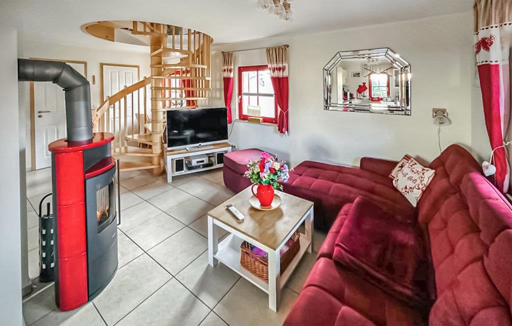 Det fantastiske, stråtæktr hus er møbleret med stor sans for detaljer og har plads til 4 gæster. Den hyggelige stue med gulvvarme og en pejs er integreret med et fuldt udstyret køkken og har direkte adgang til terrassen med udsigt over den smukt anlagte have.
