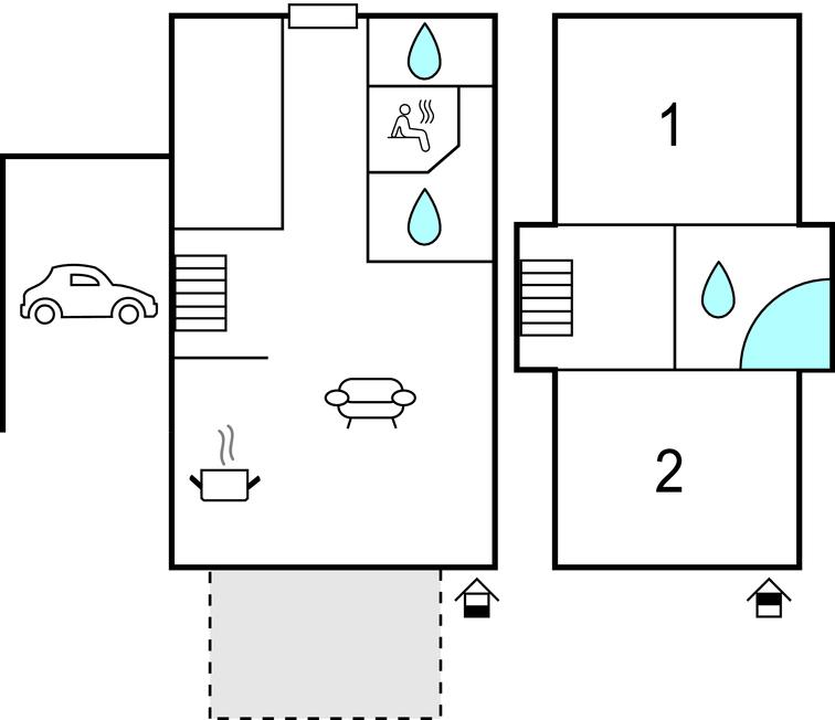 Soveværelse (nr. 1) - 1 Soveplads. (Enkeltseng(e)). 2 Sovepladser. (Dobbeltseng(e)).