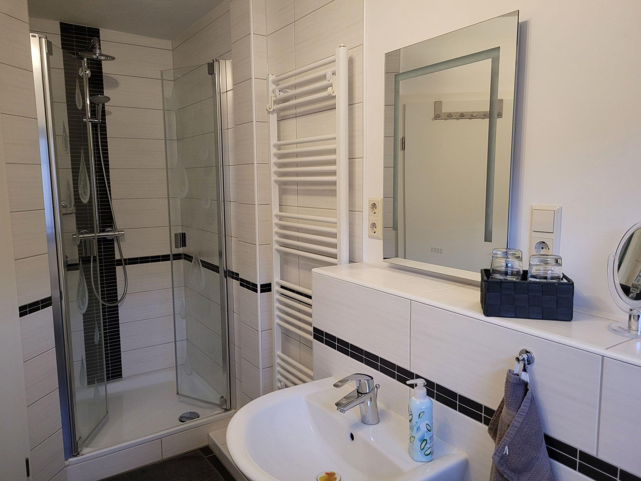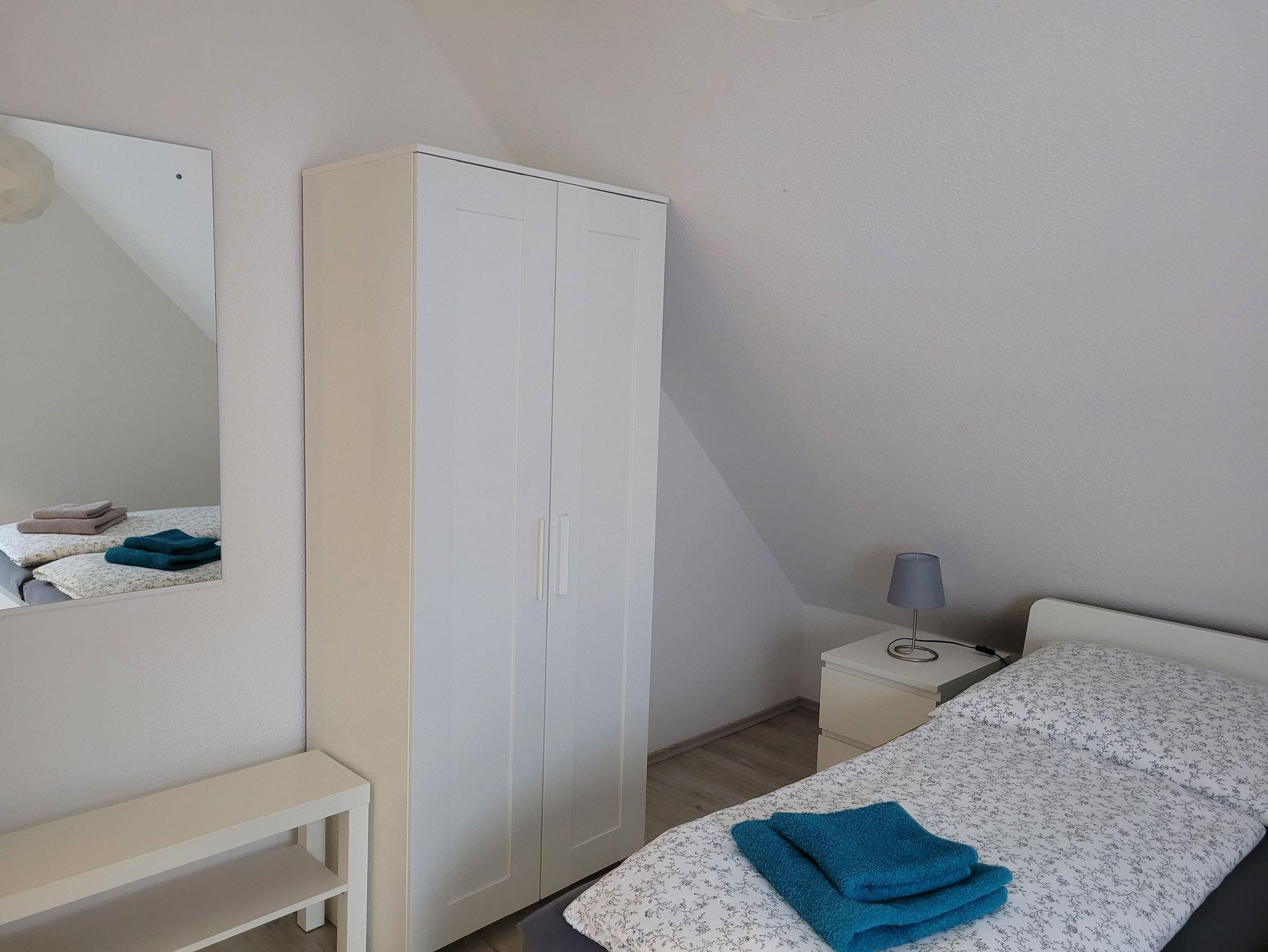 Die 75m² große Ferienwohnung wurde 2017 saniert und verfügt über ein Wohnzimmer, Vollbad, 1 Schlafzimmer mit Doppelbett (1,80 x 2,00m), 1 Schlafzimmer mit 2 Einzelbetten (je 1,00x2,00m), sowie einer komplett ausgestatteten Küche mit Geschirrspüler, Mikrowelle und Tiefkühlschrank.