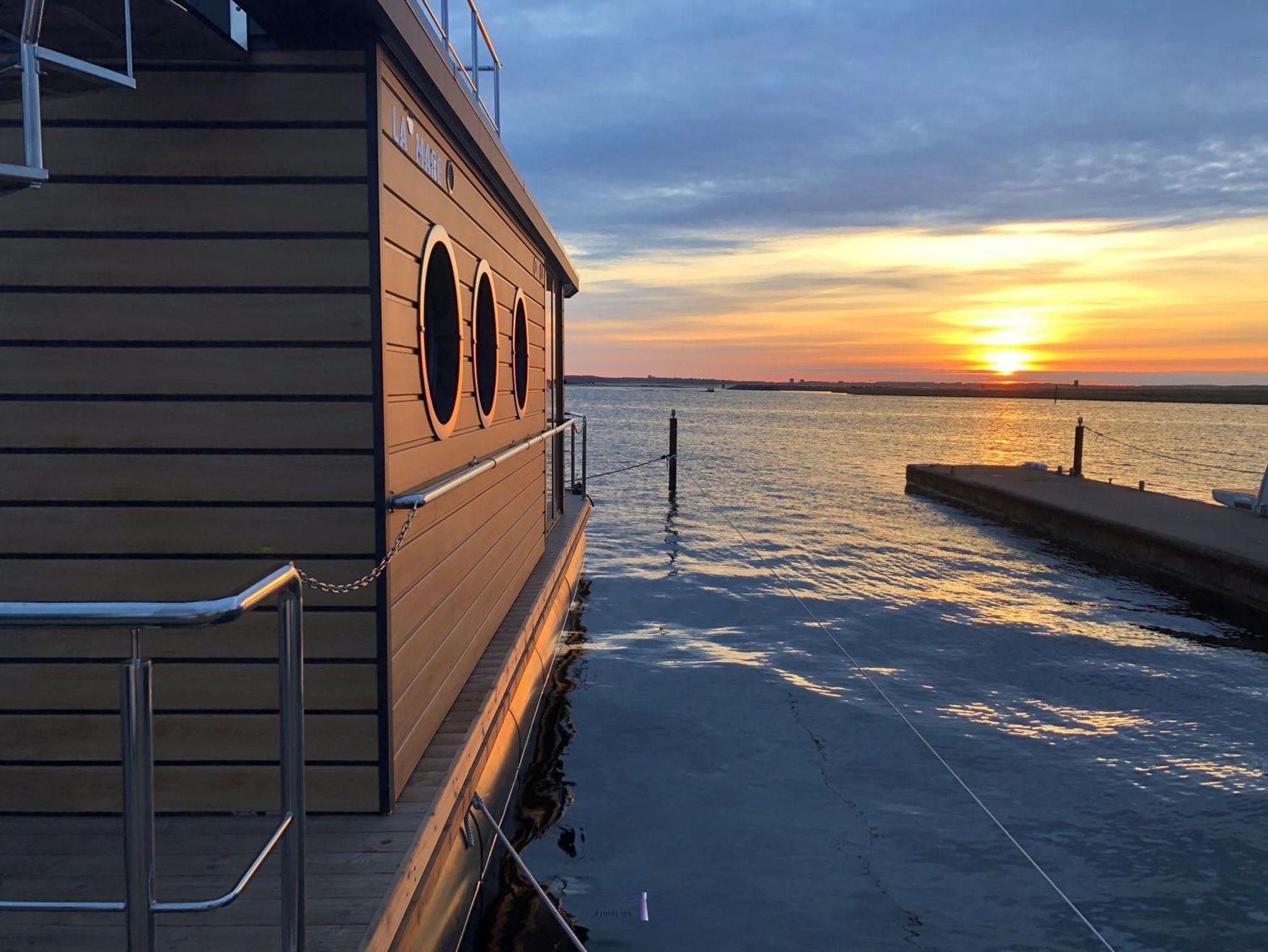 An warmen Tagen laden sowohl die Sonnenterrasse als auch die Dachterrasse zum Entspannen und Sonnenbaden ein, auf der Sie einen atemberaubenden Blick über das Naturschutzgebiet auf die offene Ostsee und wunderbare Sonnenuntergänge genießen können. Im Inneren des Hausbootes finden Sie neben dem Wohnraum mit Fußbodenheizung für kalte Tage einen Schlafraum mit einem Doppelbett sowie ein modernes Duschbad. Zwei weitere Schlafmöglichkeiten befinden sich auf der ausziehbaren Couch im Wohnraum - beachten Sie jedoch bitte, der Platz ist hier begrenzt. Genügend Stauraum finden Sie in den Schränken sowie in den Schubladen unter dem Bett.