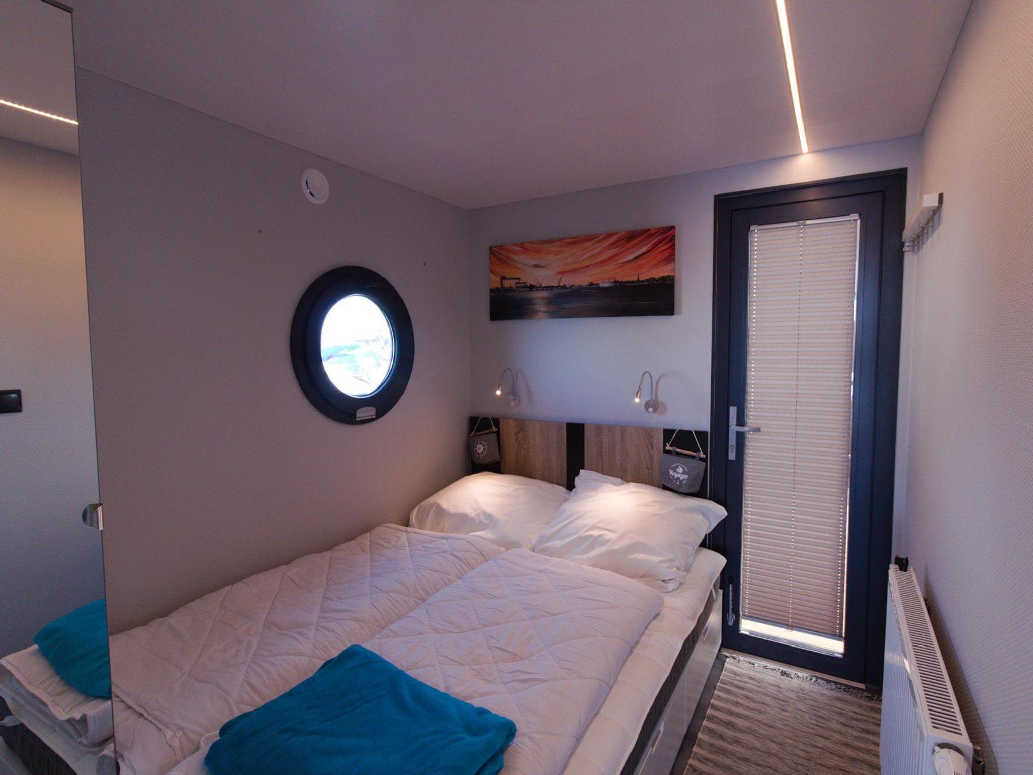 Im Inneren des Hausbootes finden Sie neben dem Wohnraum mit Fußbodenheizung für kalte Tage zwei Schlafräume mit je einem Doppelbett sowie ein modernes Duschbad. Zwei weitere Schlafmöglichkeiten befinden sich auf der ausziehbaren Couch im Wohnraum. Genügend Stauraum finden Sie in den Schränken sowie in den Schubladen unter den Betten.