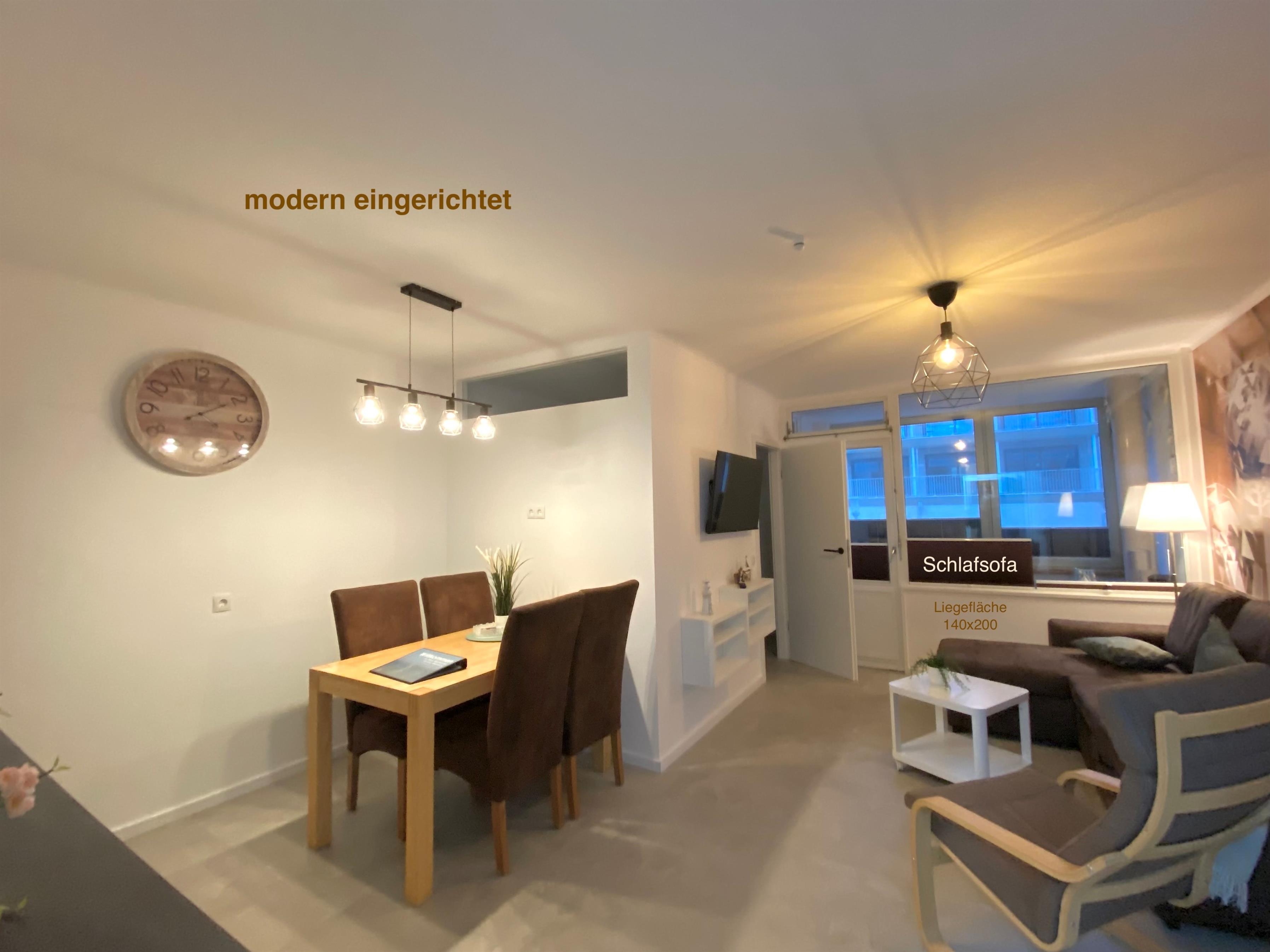 Die schöne Wohnung ist prima ausgestattet und bietet Paaren und kleinen Familien einen perfekten Ausgangspunkt für den Urlaub - mitten in der Marina Wendtorf gelegen. Im Wohnzimmer befindet sich ein bequemes Kuschelsofa, welches kinderleicht zum 140x200 cm breiten Doppelbett umgebaut werden kann. Zu Ihrer Unterhaltung können Sie Amazon Prime und Netflix mit Ihrem eigenen Zugang auf dem großen Flachbildfernseher nutzen. Radio läuft über TV und diverse Bücher und Spiele runden die Ausstattung ab.