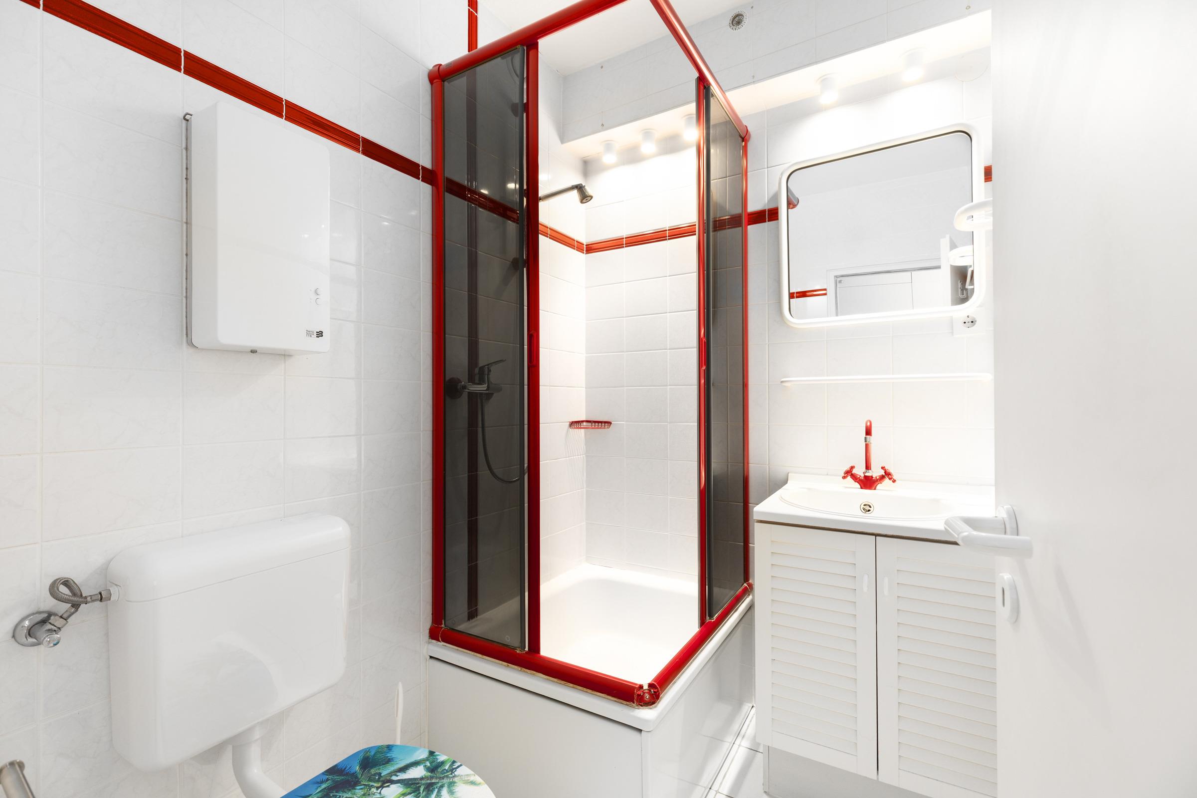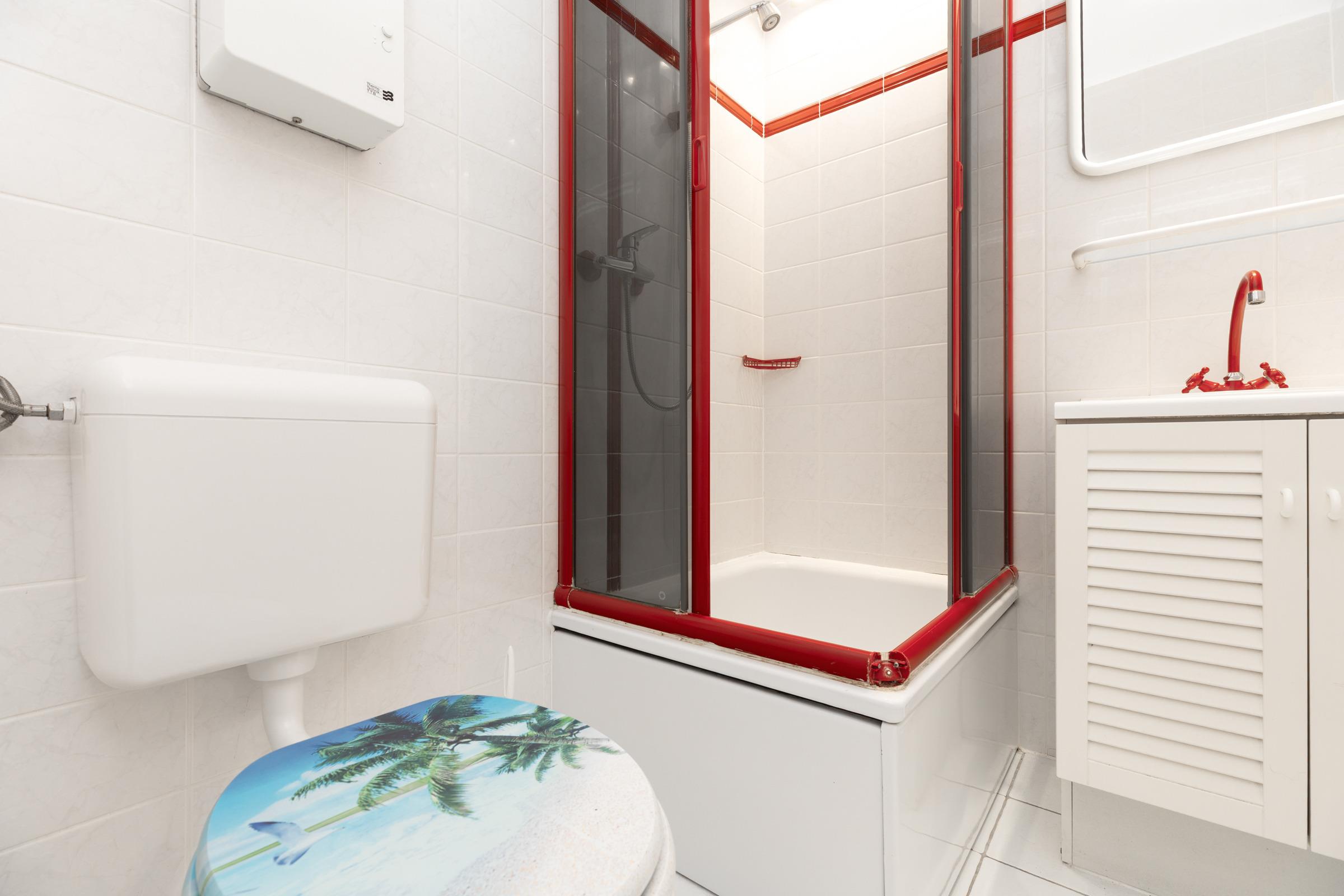 Das Appartement besitzt eine offene und gut ausgestattete Küchenzeile. Hier finden Sie ein 2-Platten-Ceranfeld, eine Mikrowelle, einen Kühlschrank, eine Filter-Kaffeemaschine, Geschirr und Besteck, sowie einen Toaster. Der Schlafbereich befindet sich im gleichen Raum und ist mit einem Doppelbett (Größe 1,80m x 2,00m) und einem Fernseher ausgestattet. Für genügend Stauraum sorgen die Schubladen unter dem Bett, sowie ein Regal. Das Highlight ist die dem Wohnzimmer angegliederte Loggia, welche zu gemütlichen Stunden und ruhigen Momenten einlädt. Von dort aus schauen Sie auf die offene See in der Ferne und zu den Abendstunden in den Sonnenuntergang hinein. Hier können Sie Ihre Seele baumeln lassen. Das voll ausgestattete Badezimmer verfügt über eine Dusche, eine Toilette, ein Waschbecken, sowie einen Föhn. Kostenlose Parkplätze befinden sich in direkter Umgebung zum Haus, in der sich das Apartment befindet.