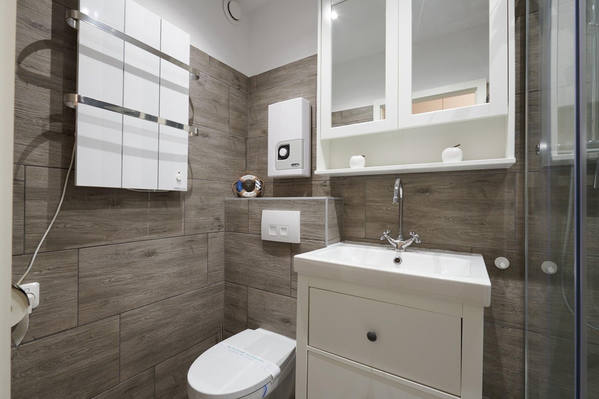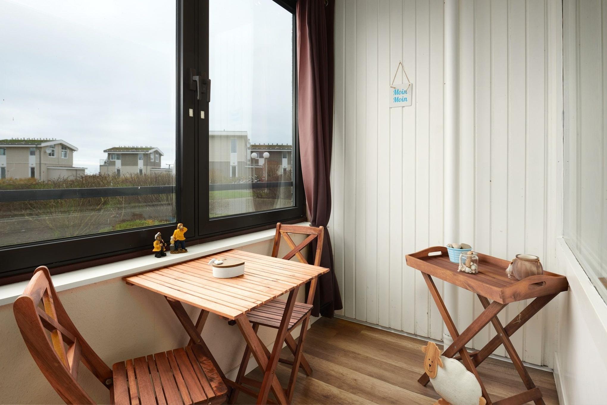 In dem modernen Duschbad mit extra großer Duschkabine (70x120 cm) gibt es auch genügend Ablageflächen. Der im Flur befindliche Einbauschrank bietet viel Platz für Ihre persönlichen Dinge. Die hübschen Dekofiguren, ein Wertsachentresor, diverse Bücher und Spiele runden die liebevolle Ausstattung ab. Technisch wird ebenfalls kaum ein Wunsch offen gelassen: Radio, Wecker & Co. laufen über Alexa und Echo und die beiden Smart-TV in Wohn- und Schlafzimmer verfügen über die TV-Apps Waipu.tv, Netflix und Amazon Prime, die bereits zur Nutzung für Sie konfiguriert sind. Erlebnisreiche Tage können Sie in der verglasten Loggia prima ausklingen lassen.