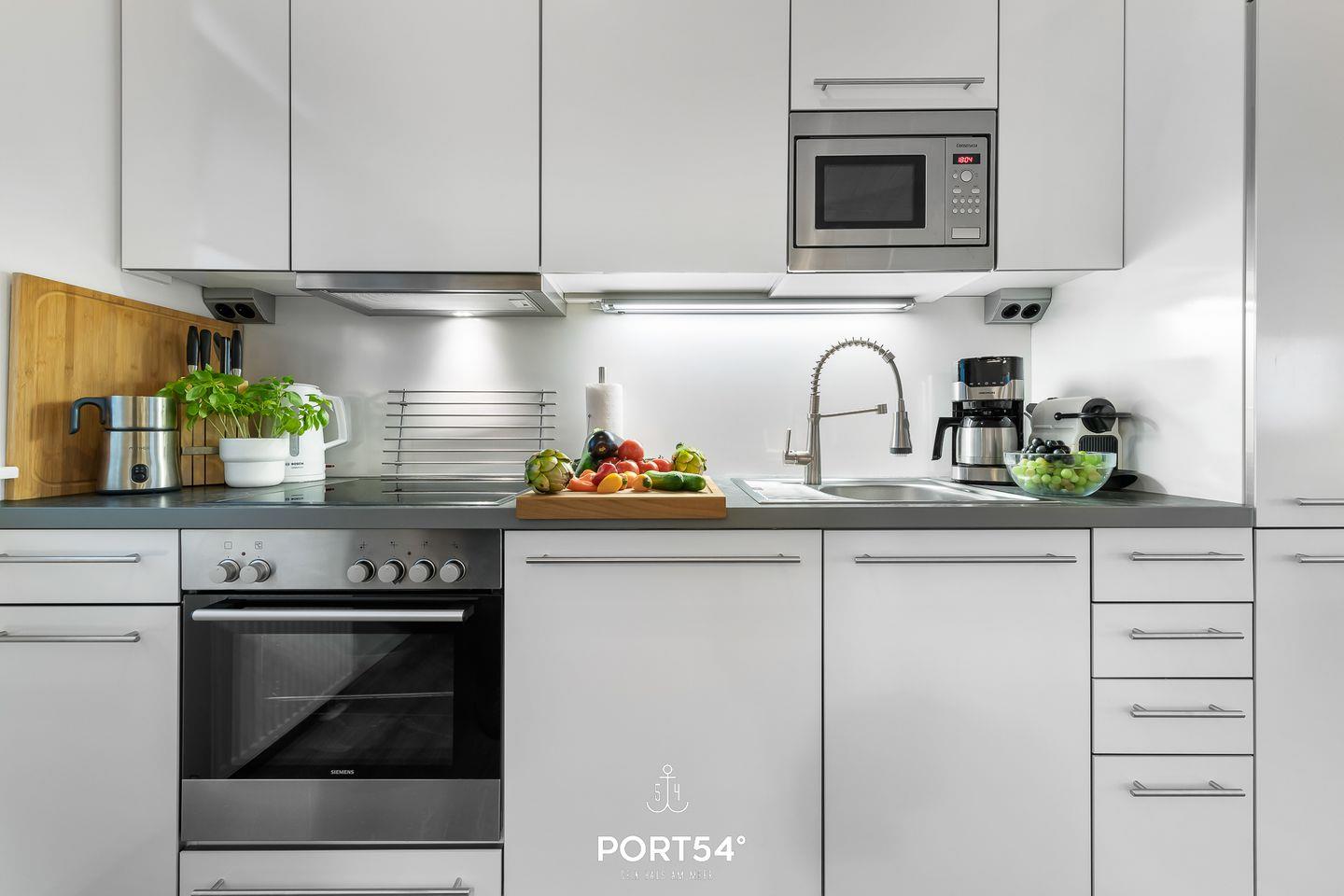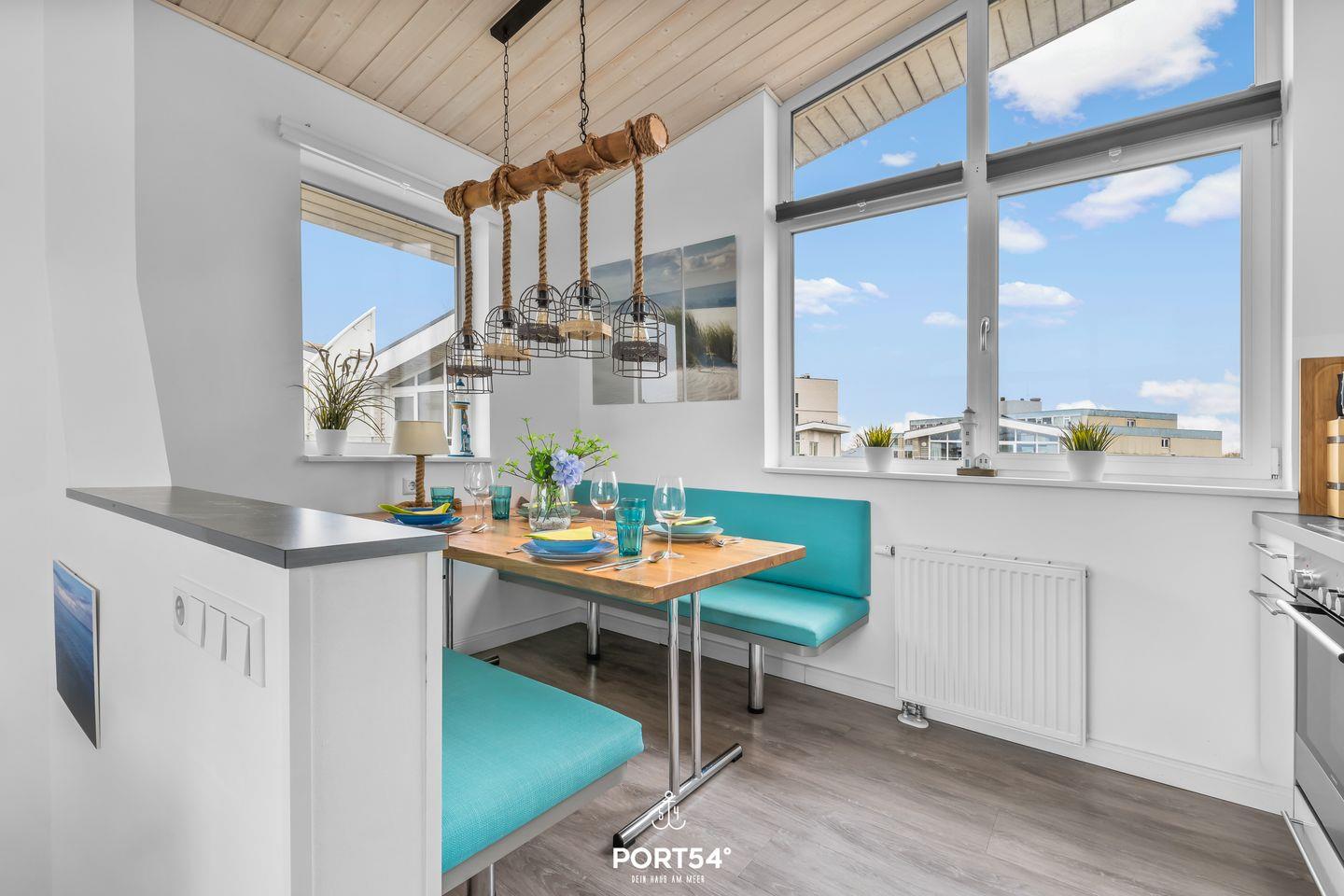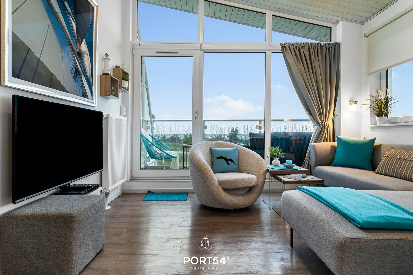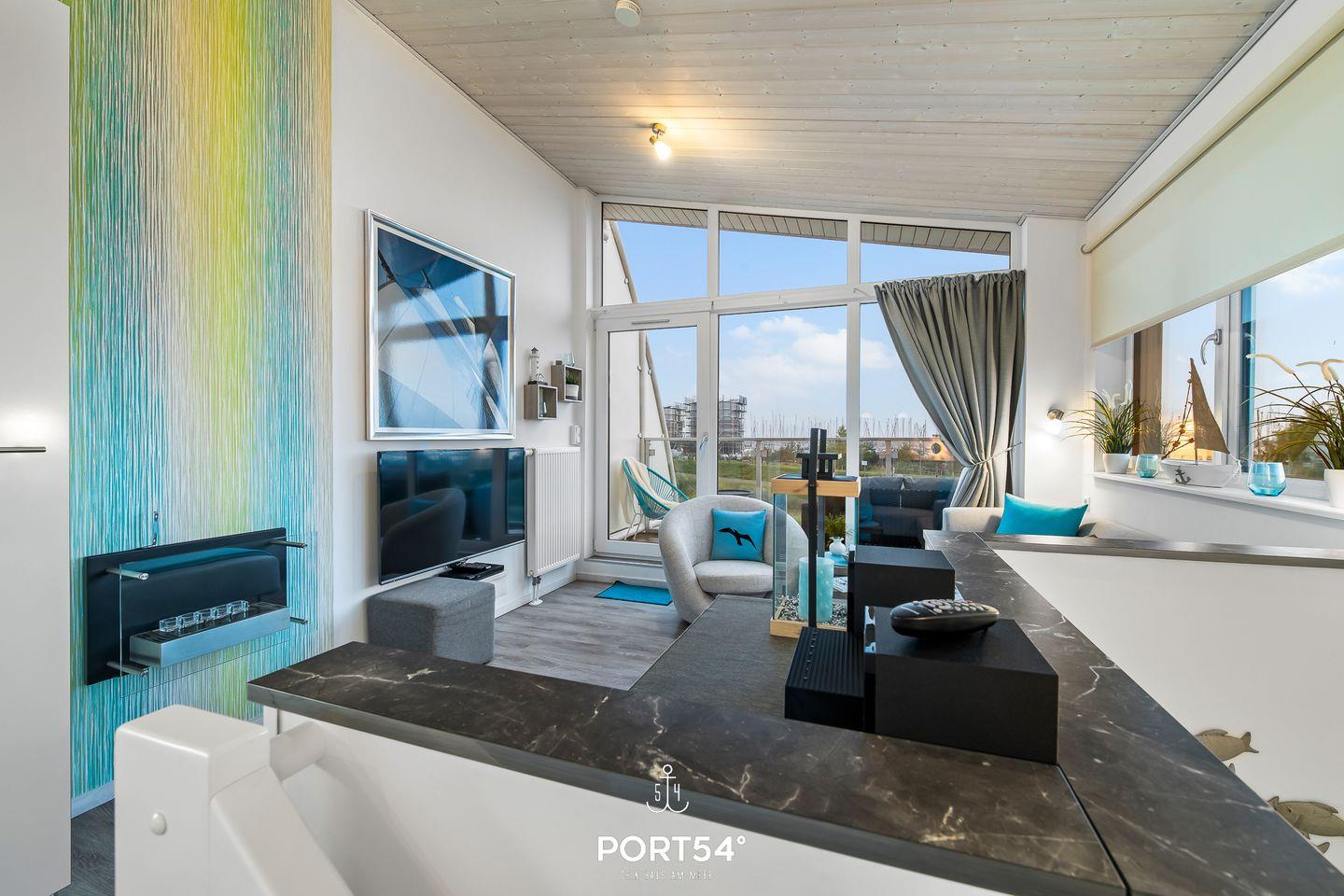 Freue dich auf einen einzigartigen Meerblick vom Sofa, Sessel oder dem gemütlich eingerichteten Balkon und beobachte die großen und kleinen Schiffe, die nach Kiel und in den Nord-Ostsee-Kanal ein- und auslaufen. Ein großer Spaß für große und kleine Urlauber. Im Obergeschoss erwartet dich durch bodentiefe Fenster ein offener, lichtdurchfluteter Wohn- und Essbereich mit geschmackvoller, maritimer Einrichtung. Der gemütliche Wohnbereich bietet ein komfortables Ecksofa, einen Drehsessel mit Fußhocker für entspannte Momente, einen großen 50-Zoll-SmartTV, einen Bioethanol-Kamin und den den Zugang zum Balkon. Auch von der Essecke aus genießt du den herrlichen Meerblick. Die hervorragend ausgestattete Küche mit Induktionskochfeld und umfangreichem Kücheninventar lädt zum Kochen ein. Für Kaffee- und Espressoliebhaber gibt es sowohl eine Kaffee- als auch eine Nespressomaschine und als kleines Highlight einen Milchaufschäumer für herrlichsten Cappuccino, mit dem selbstverständlich auch eine heiße Schokolade zubereitet werden kann. Die vorhandene Klimaanlage verspricht ein angenehmes Innenraumklima an heißen Sommertagen.