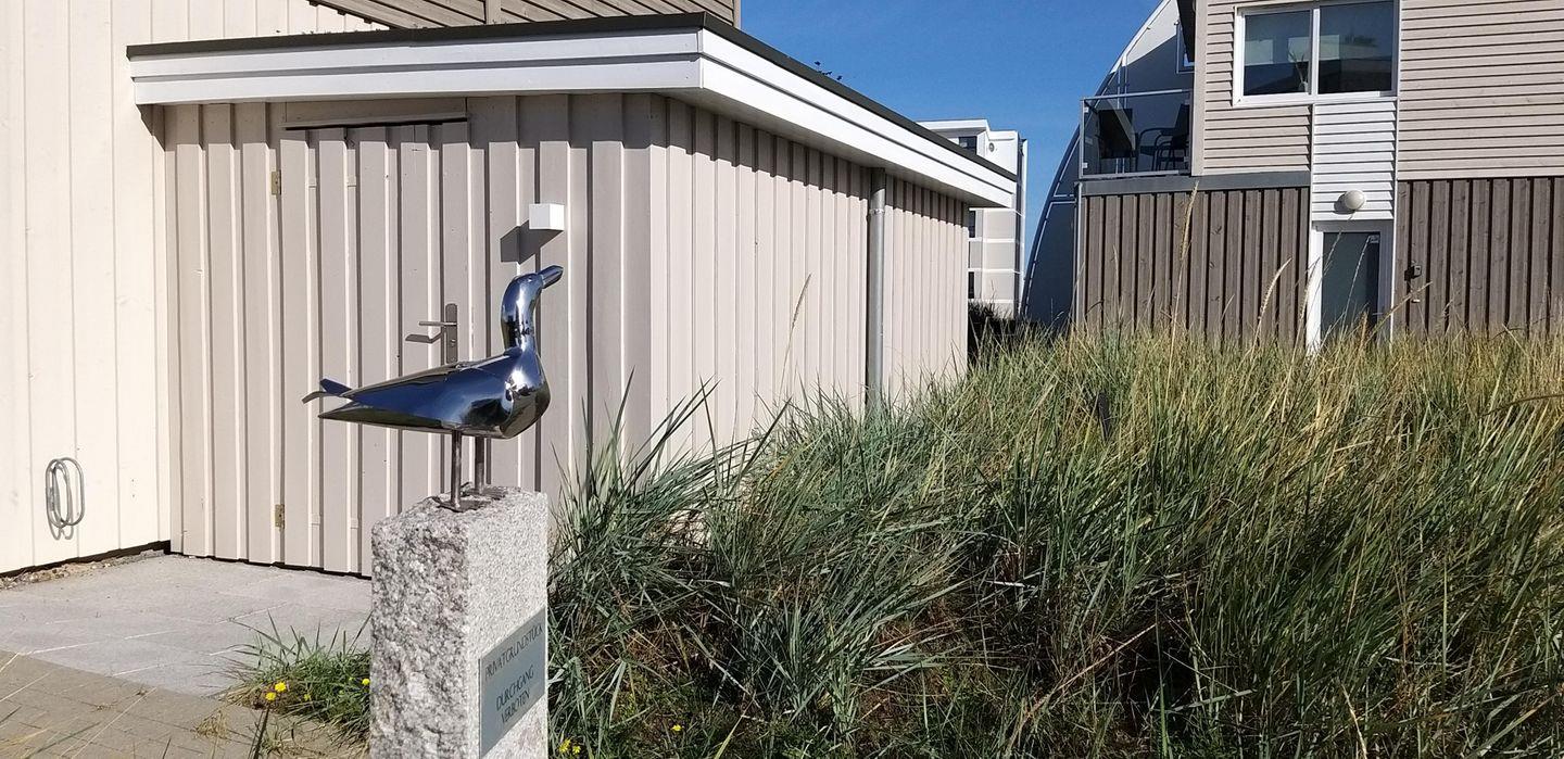 Auch ein Gartenschlauch für den Außenwasserhahn ist vorhanden. Die Möwe 12 verfügt über einen abschließbaren „Bike-Port“. Hier kannst du deine Fahrräder, Kinderwagen, Koffer und Wassersportgeräte komfortabel und sicher unterbringen. Für das Aufladen von E-Bikes gibt es selbstverständlich eine Steckdose. Direkt gegenüber von der Möwe12 befindet sich dein PKW Stellplatz. Die Lage ist großartig, weil du hier für jeden Geschmack das Passende findest: Eine unbeschreiblich schöne Natur mit zahllosen Möglichkeiten zum Spazierengehen, Walken und Joggen, Skaten, alle erdenklichen Wassersportmöglichkeiten wie Kiten, Stand-Up, Segeln etc. und endlose, gut ausgebaute Fahrradwege. Kilometerlange Strände mit Dünen finden Sie rechts von der Lagune, ca. 500m zu Fuß in Richtung Schönberg, sowie links von der Lagune Richtung Stein einen herrlichen Strand mit seichtem Wasser, großen Sandbänken, ideal für Kinder. Feinste Cocktails, Kaffee, Kuchen, kleine leckere Snacks bekommen Sie ca. 15 Minuten entfernt in Stein am „Tatort Hawaii“ und können alles in kostenlosen Strandkörben und Liegestühlen mit Meerblick genießen. Hier befindet sich auch die eine Wassersportschule und es gibt die Möglichkeit Surfbretter, SUPs etc. auszuleihen.