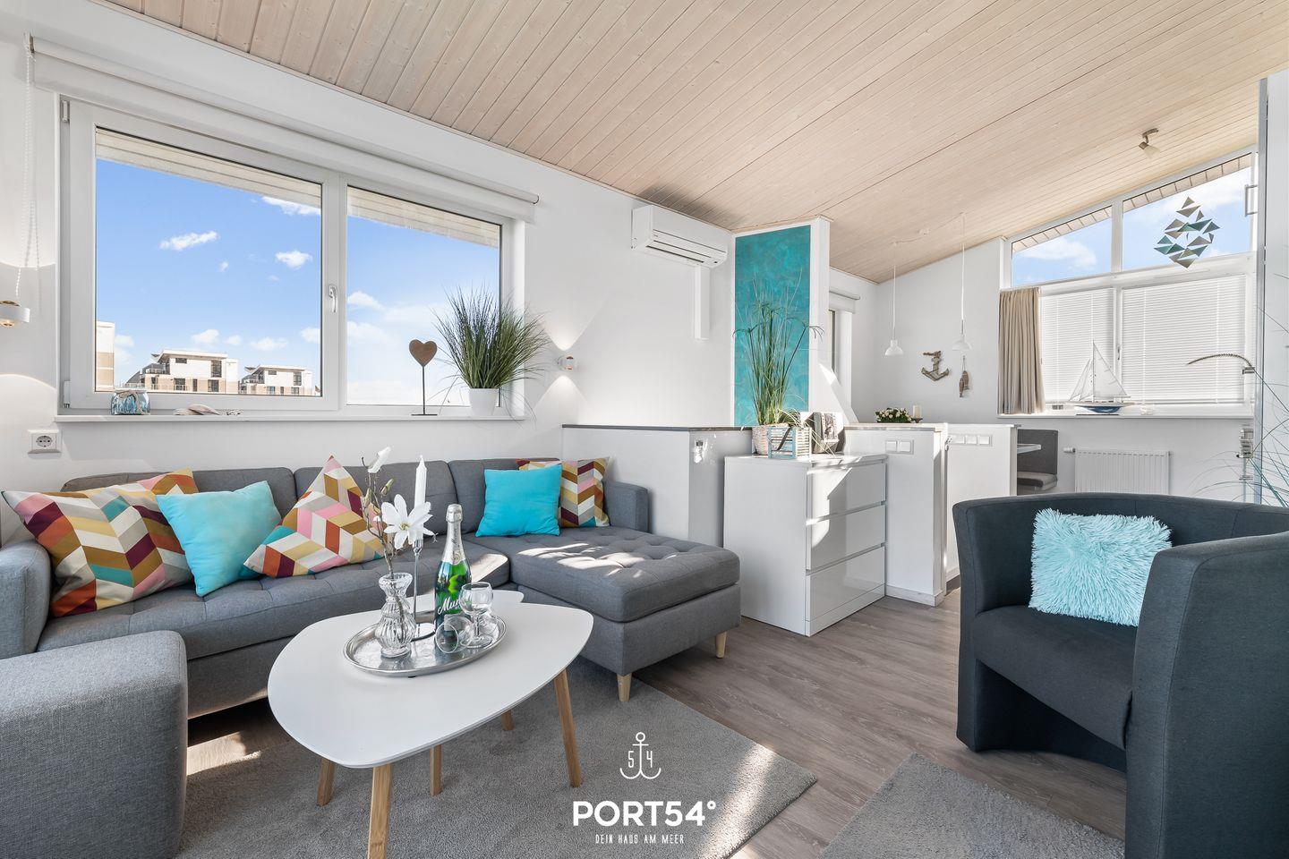 Premium-Doppelhaushälfte in vorderer Reihe zum Hafen mit Meerblick gelegen. Für bis zu vier Personen bietet dieses Ferienhaus Highlights wie eine Trockensauna, Waschmaschine und Trockner, Sky-TV-Paket, HighSpeed-WLAN über Glasfaser, Bioethanol-Kamin und eine traumhafte Umgebung zum Entspannen. Eine überdachte Terrasse auf dem großzügigen Naturgrundstück, umsäumt von Strandhafer, rundet die Wohlfühlausstattung ab.