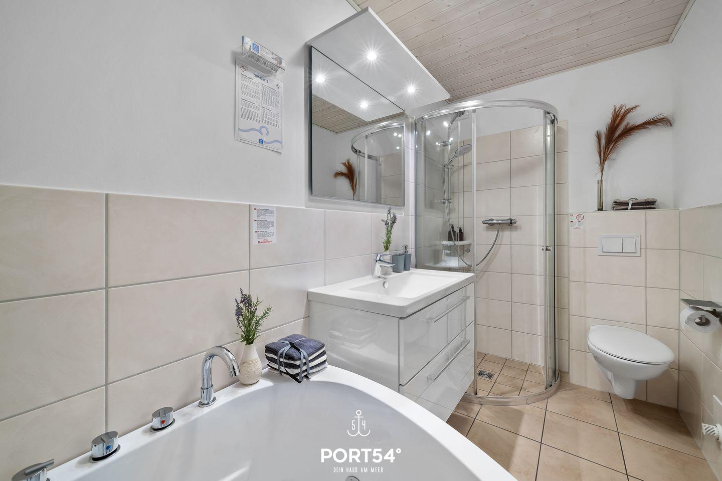 Ebenfalls befindet sich am Haus ein kostenfreier PKW Stellplatz und ein abschließbarer Fahrradschuppen. Ob laue Sommerabende, stürmische Herbstnachmittage oder kühle Wintertage: diese Doppelhaushälfte besticht mit seiner Ausstattung sowie einer naturnahen Umgebung zu jeder Jahreszeit. Vom Balkon aus genießt du den Blick Richtung Meer.