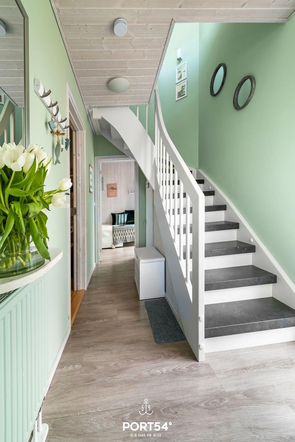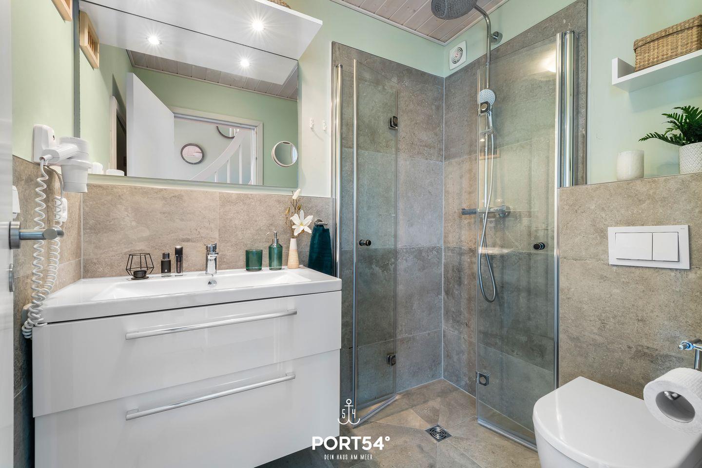 Das Badezimmer ist mit einer bodengleichen Dusche, Fußbodenheizung WC, Waschbecken, Haartrockner und modernen Armaturen ausgestattet. Ein separates Wellnesshighlight stellt die hauseigene Sauna zur alleinigen Nutzung dar – ideal für entspannte Stunden nach einem Tag am Meer. Für die Nutzung im Freien steht dir sowohl ein Balkon als auch eine möblierte Terrasse mit Sonnenschirm, Sonnenliegen, Kohlegrill und Zugang zum Garten bzw. Gartenhaus zur Verfügung. Die Nähe zur Marina, das Leben in einer ruhigen Bucht und die landschaftliche Vielfalt prägen das maritime Flair.
